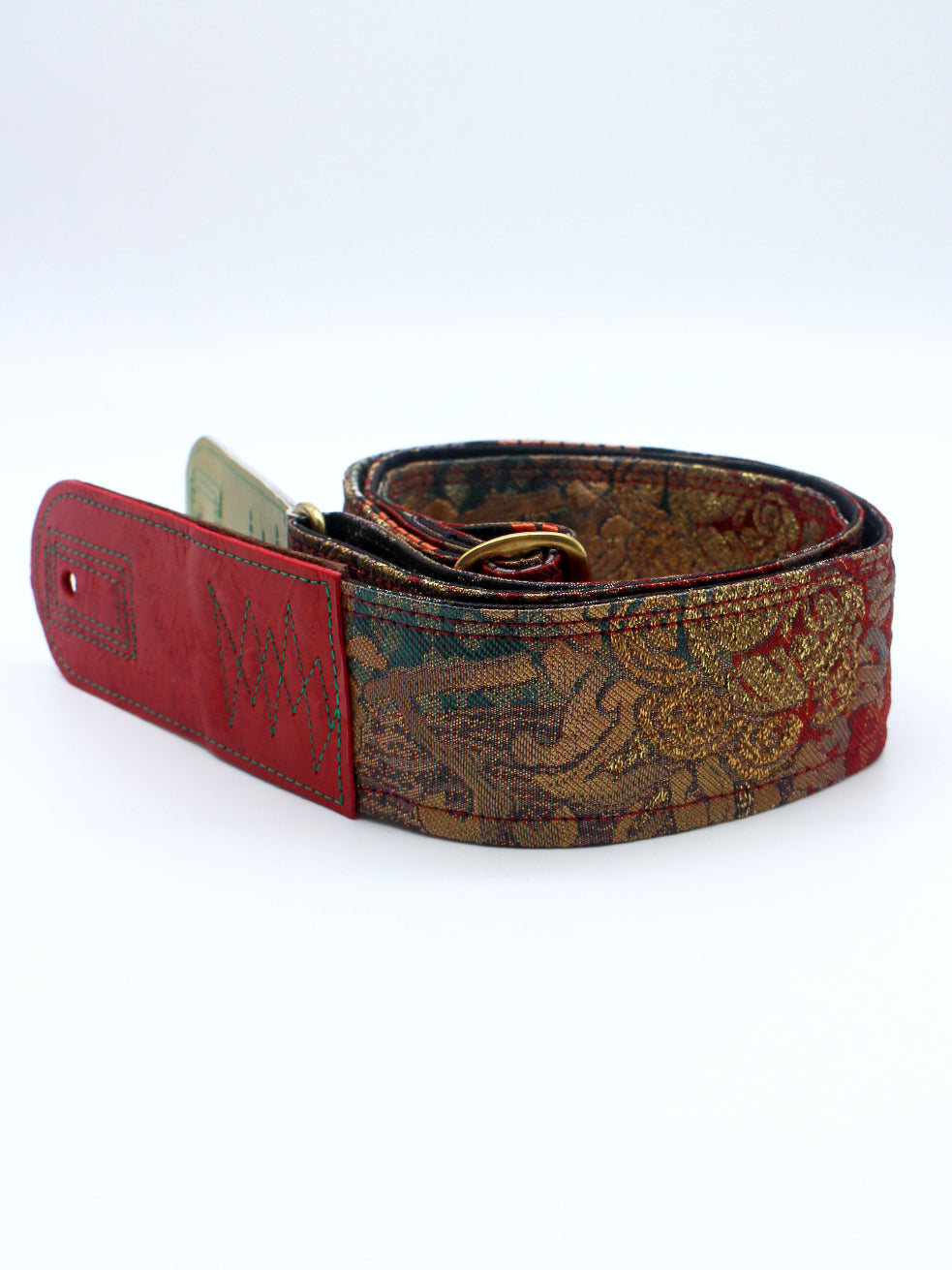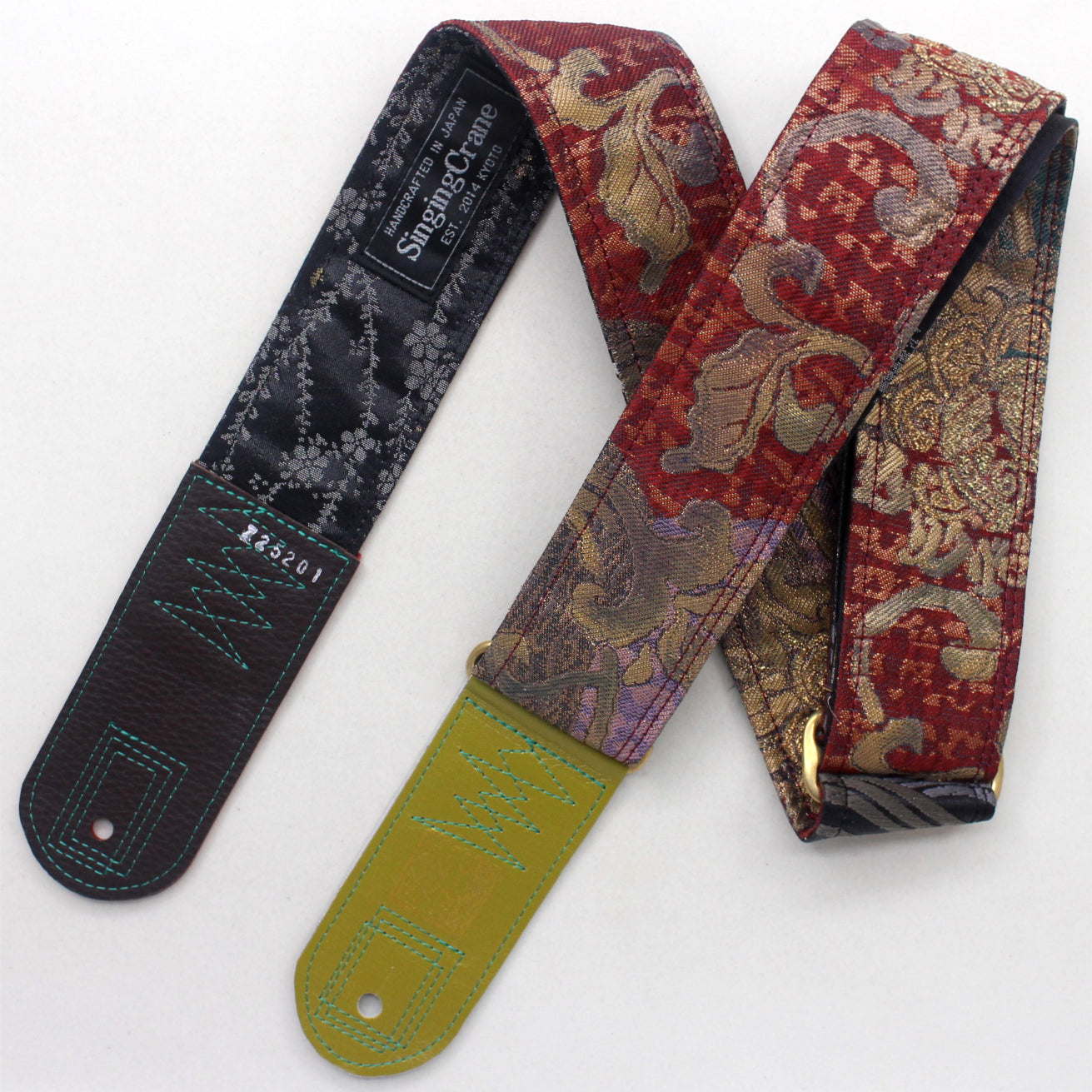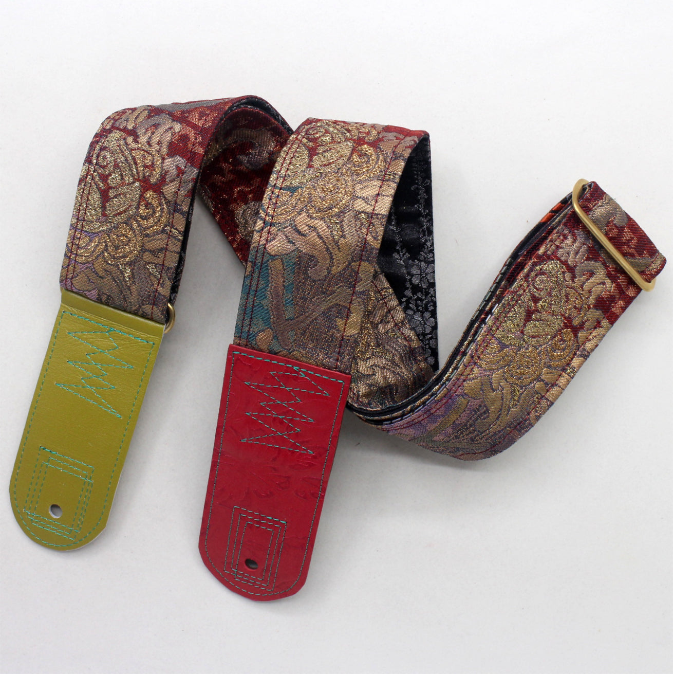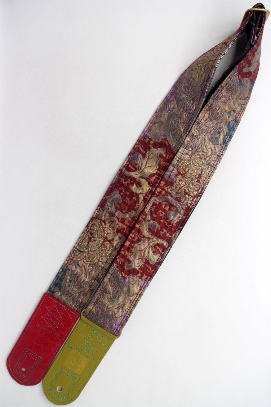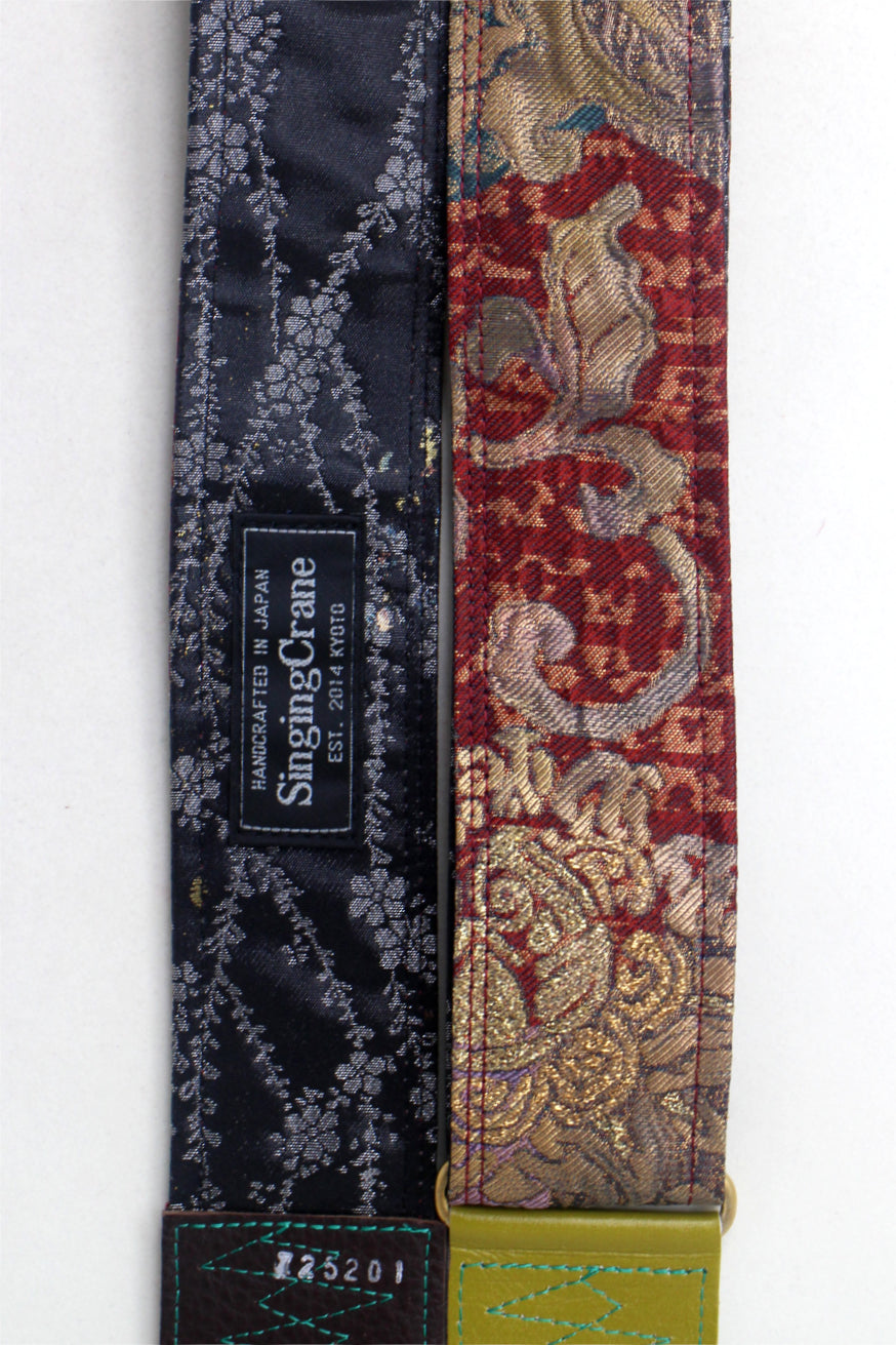 Unique and beautiful guitar strap [SC725201] - hand made in Japan from recycled silk woven kimono obi, leather and brass