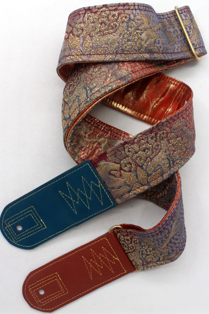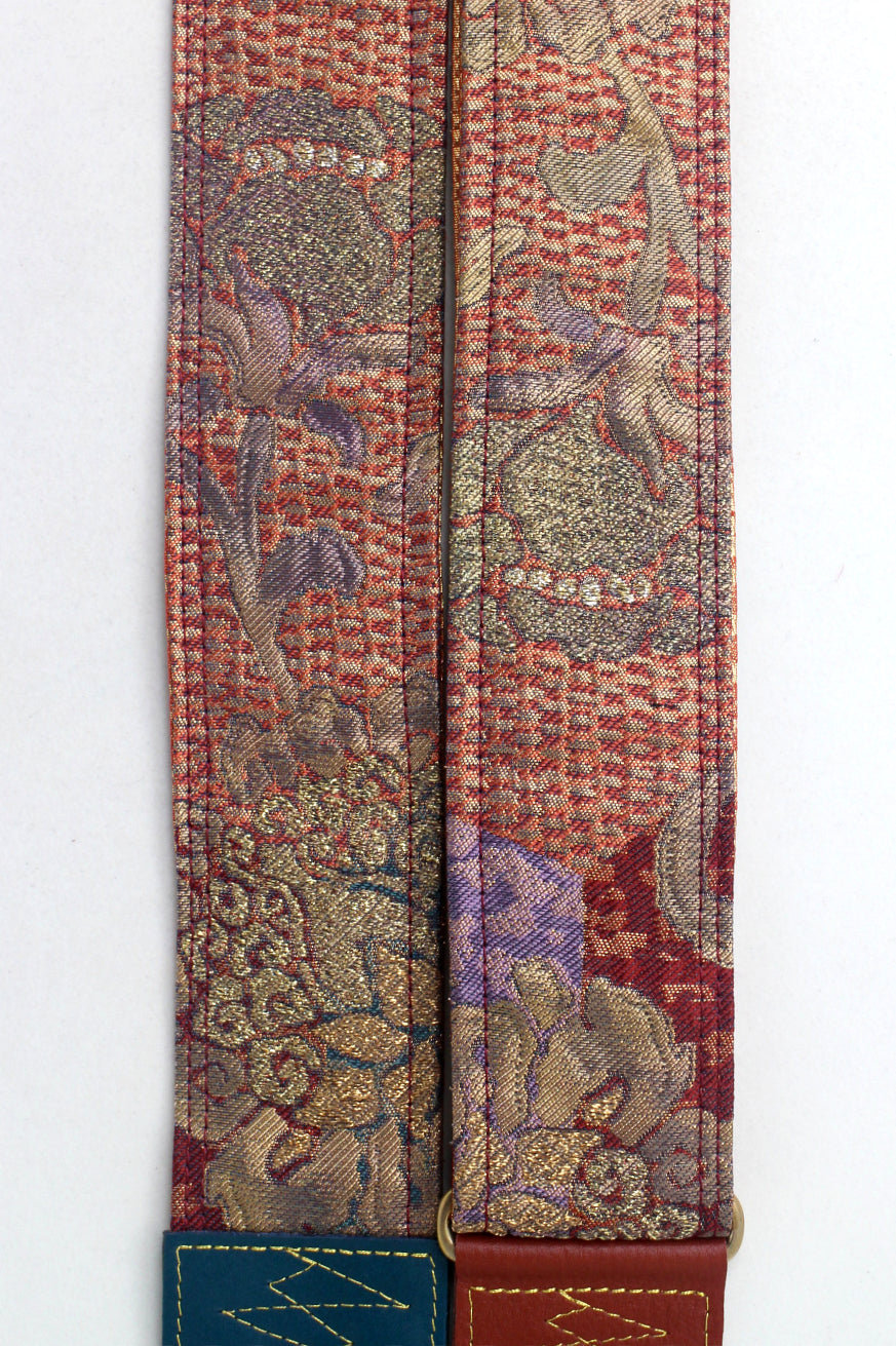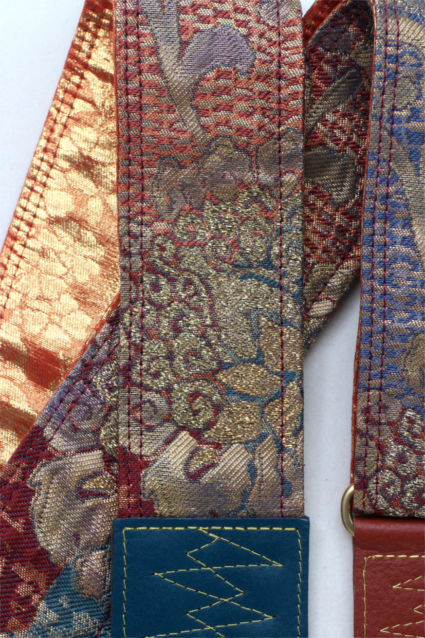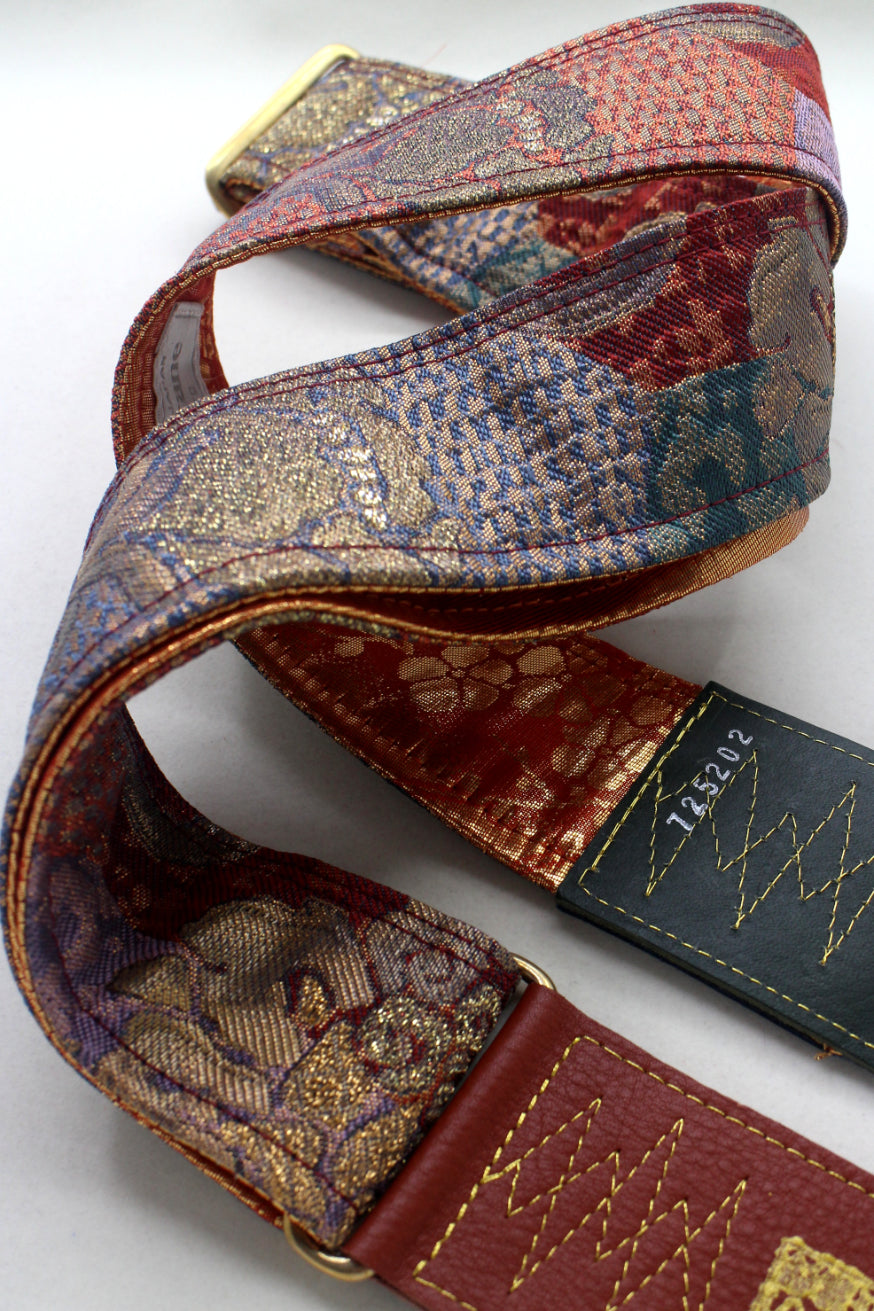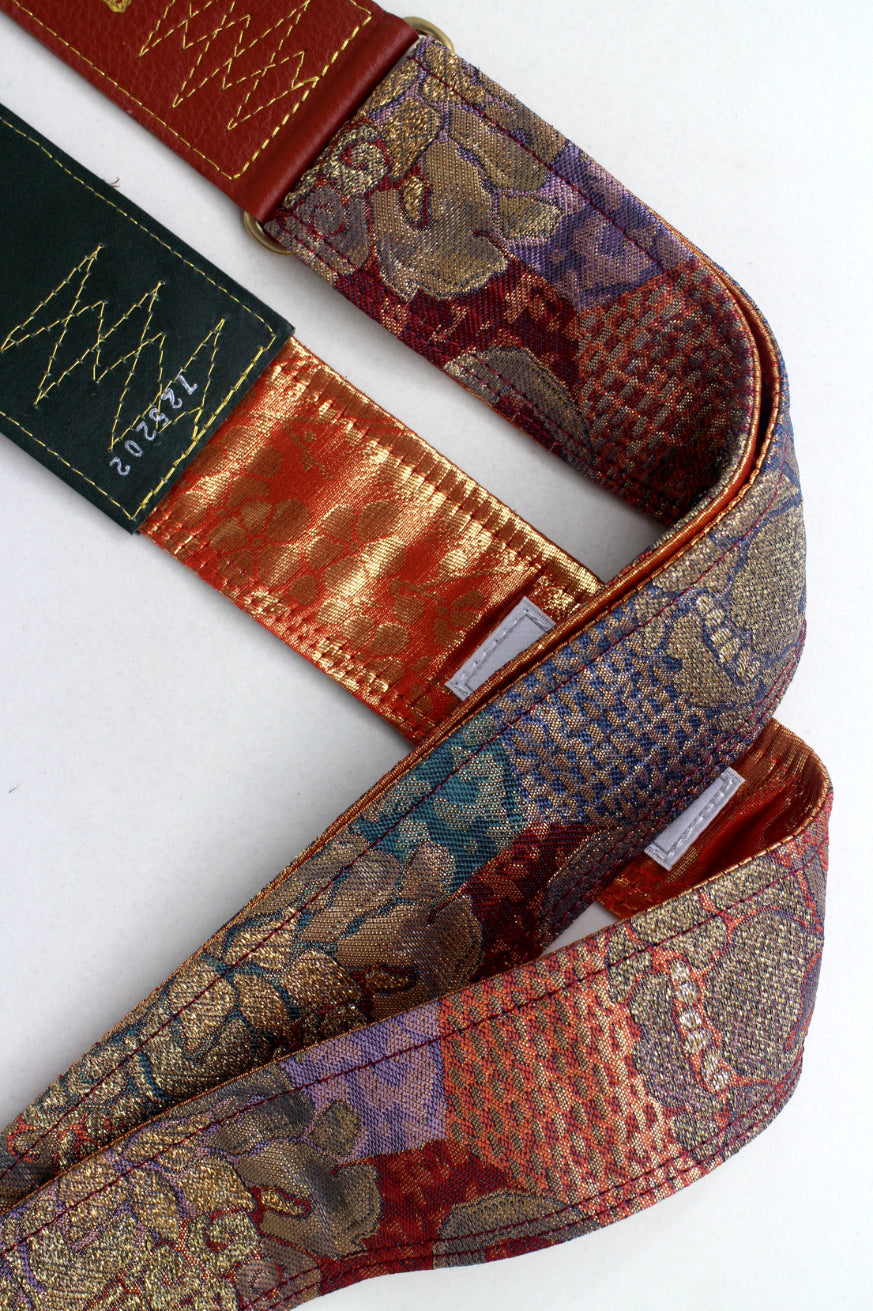 Unique and beautiful guitar strap [SC725202] - hand made in Japan from recycled silk woven kimono obi, leather and brass