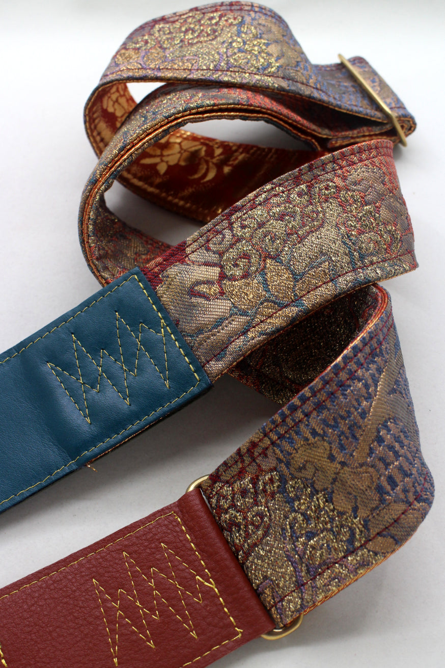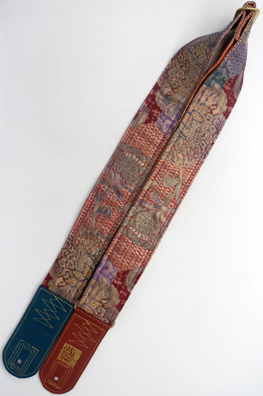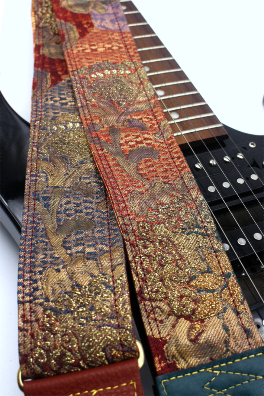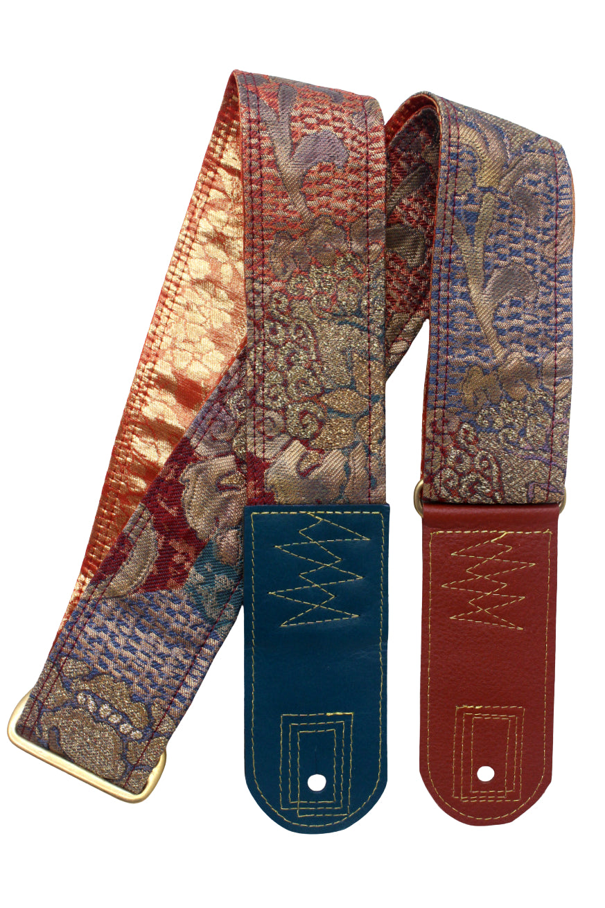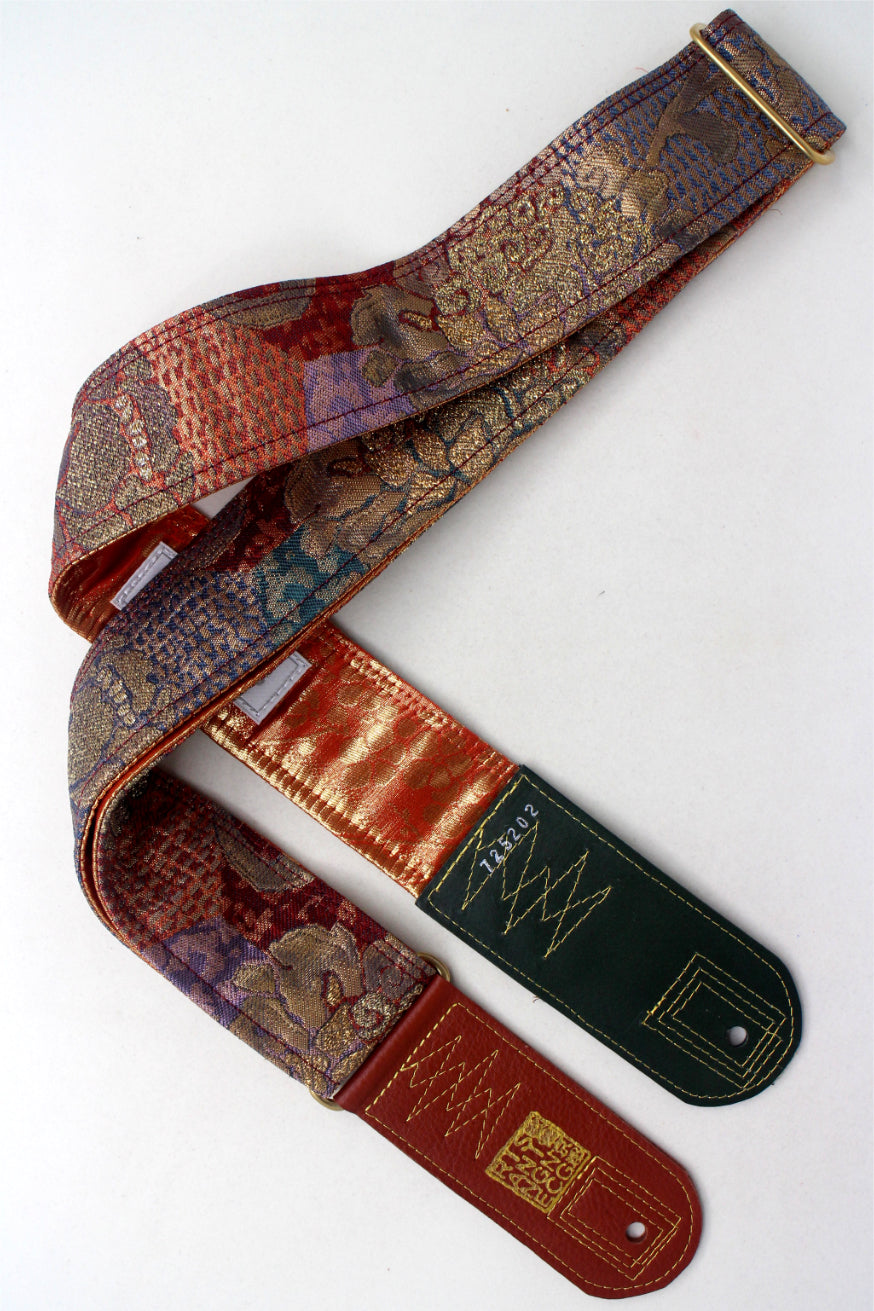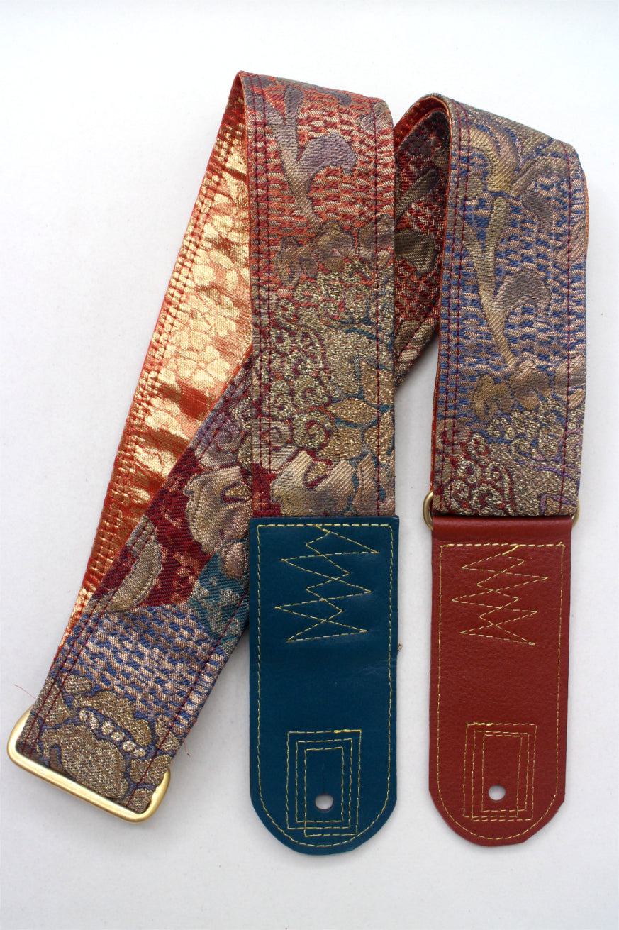 Unique and beautiful guitar strap [SC725202] - hand made in Japan from recycled silk woven kimono obi, leather and brass