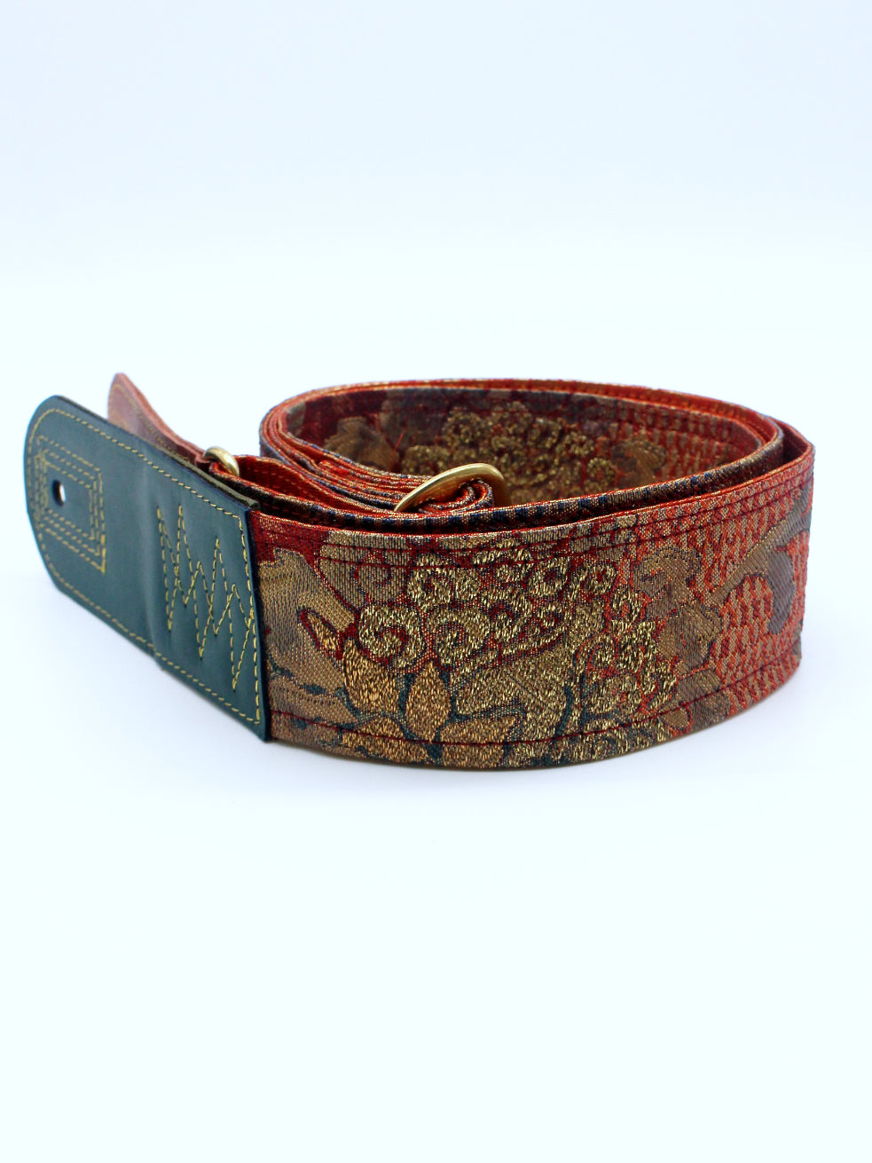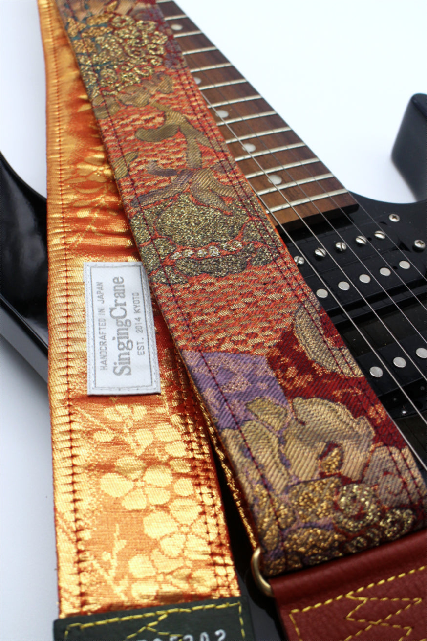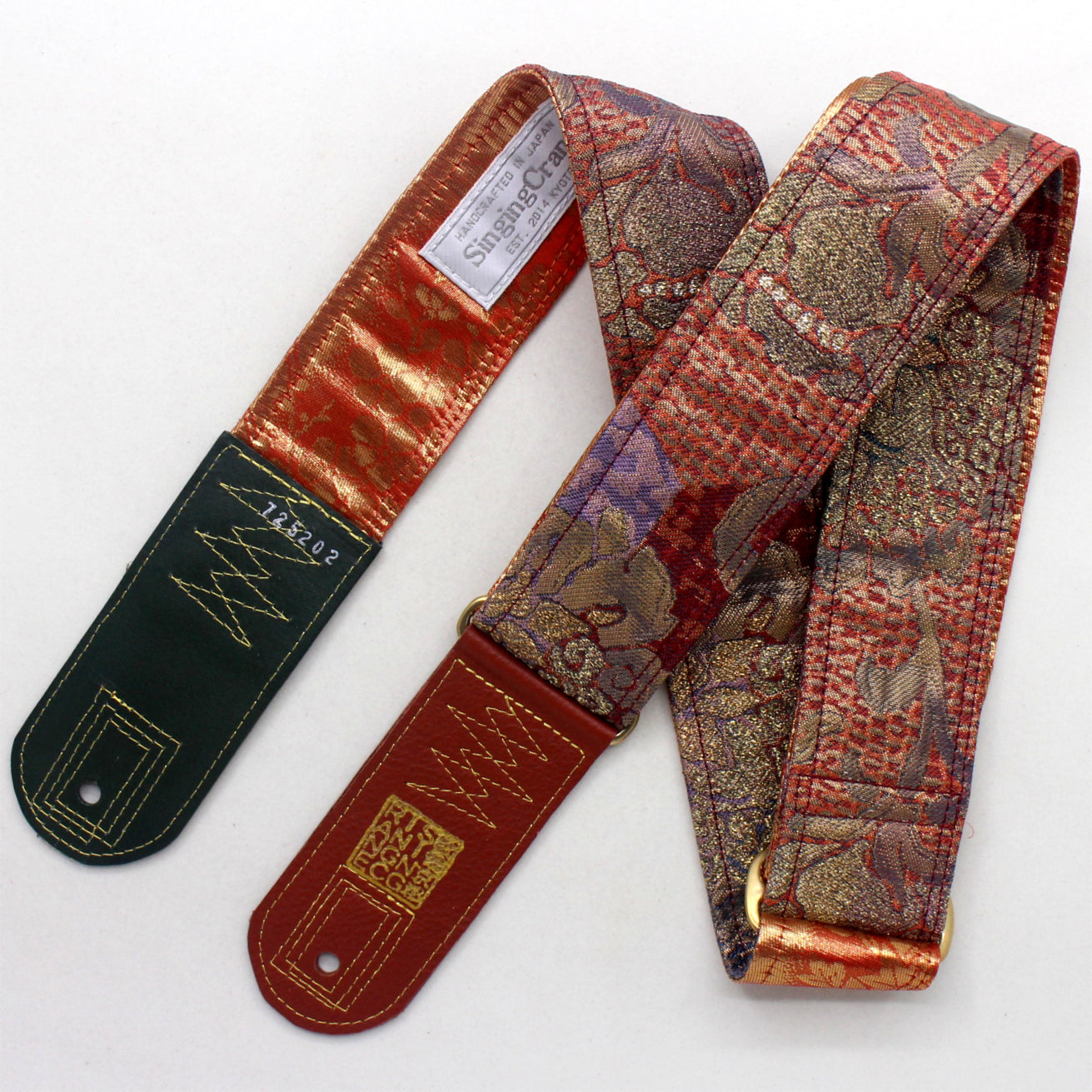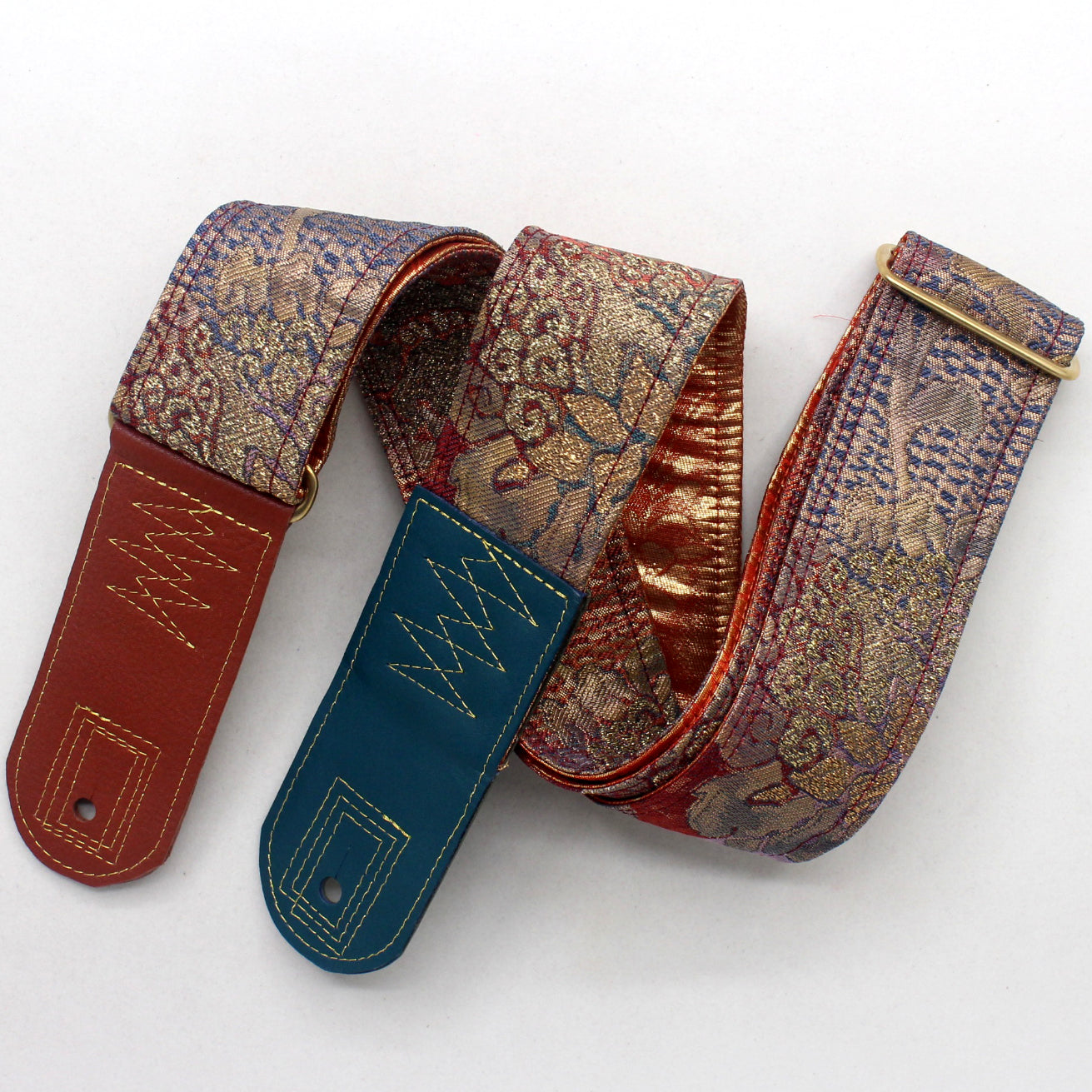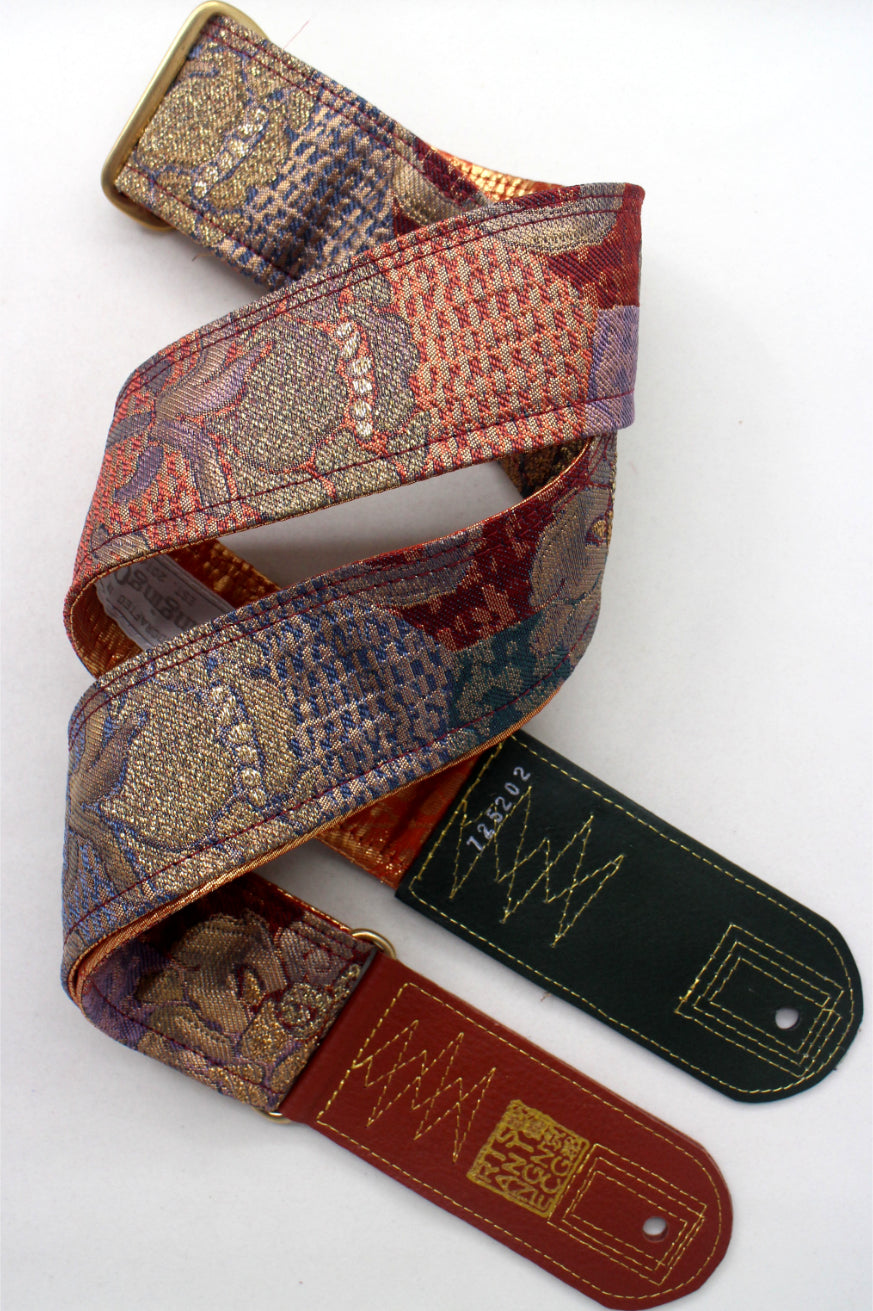 Unique and beautiful guitar strap [SC725202] - hand made in Japan from recycled silk woven kimono obi, leather and brass