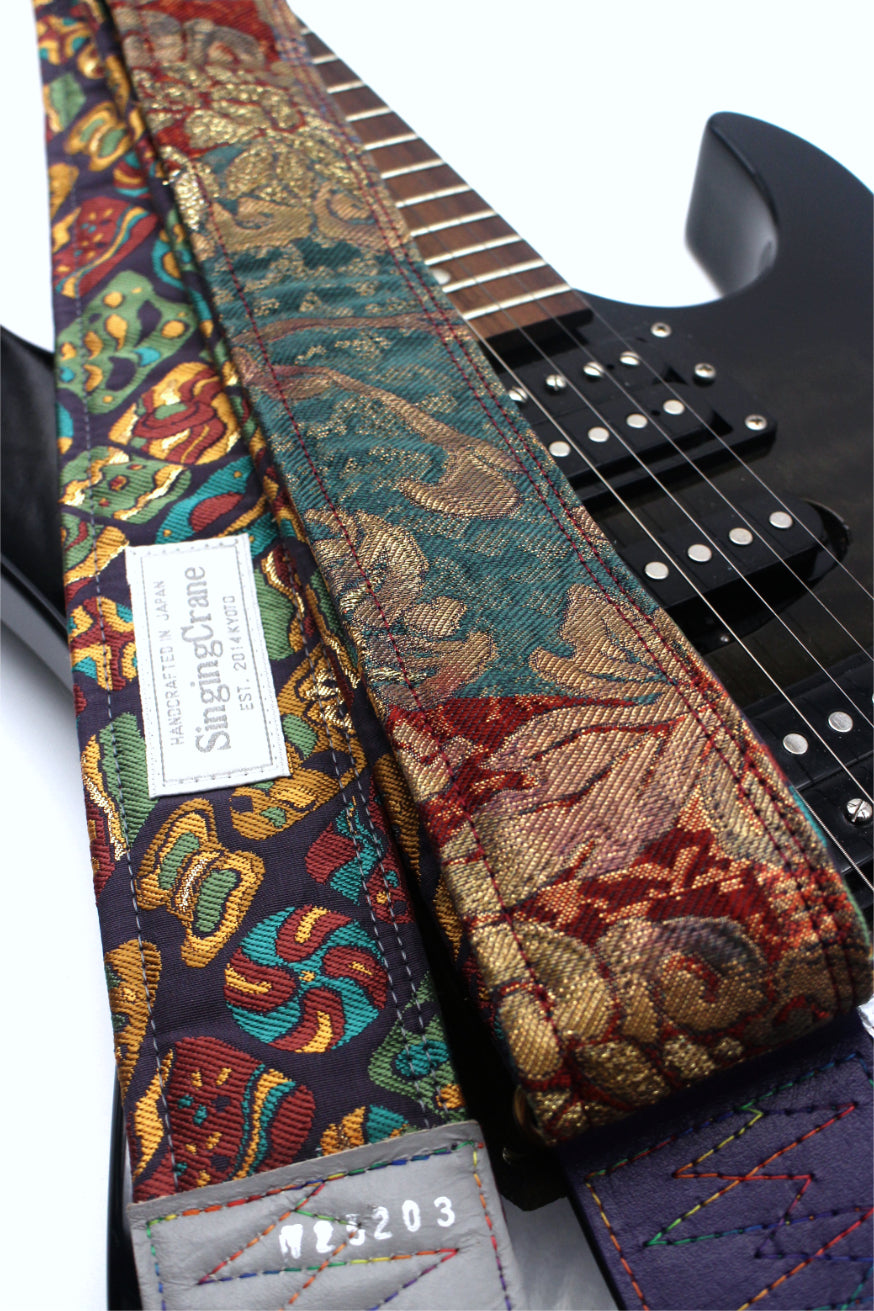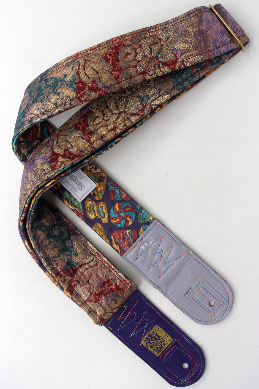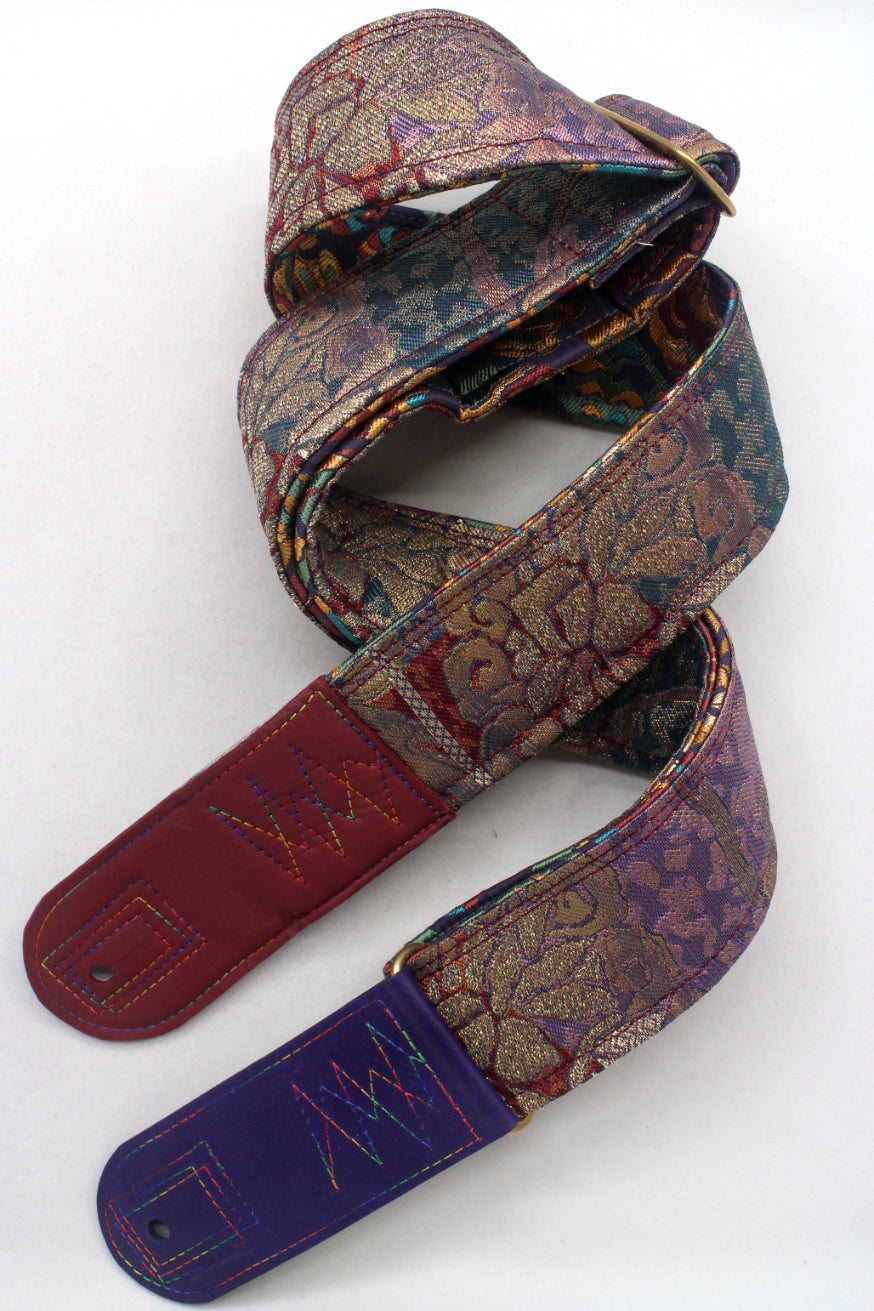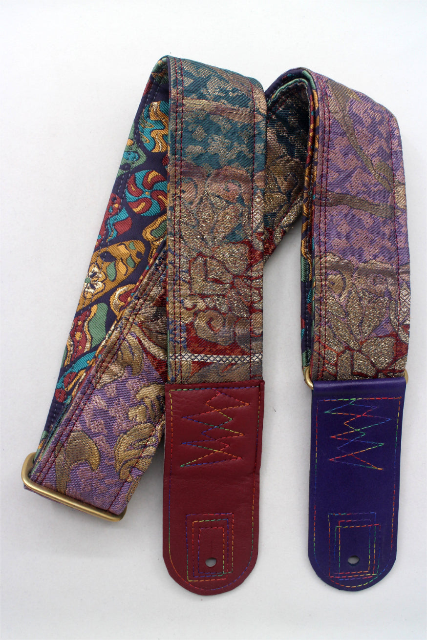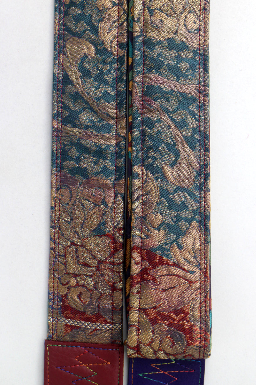 Unique and beautiful guitar strap [SC725203] - hand made in Japan from recycled silk woven kimono obi, leather and brass