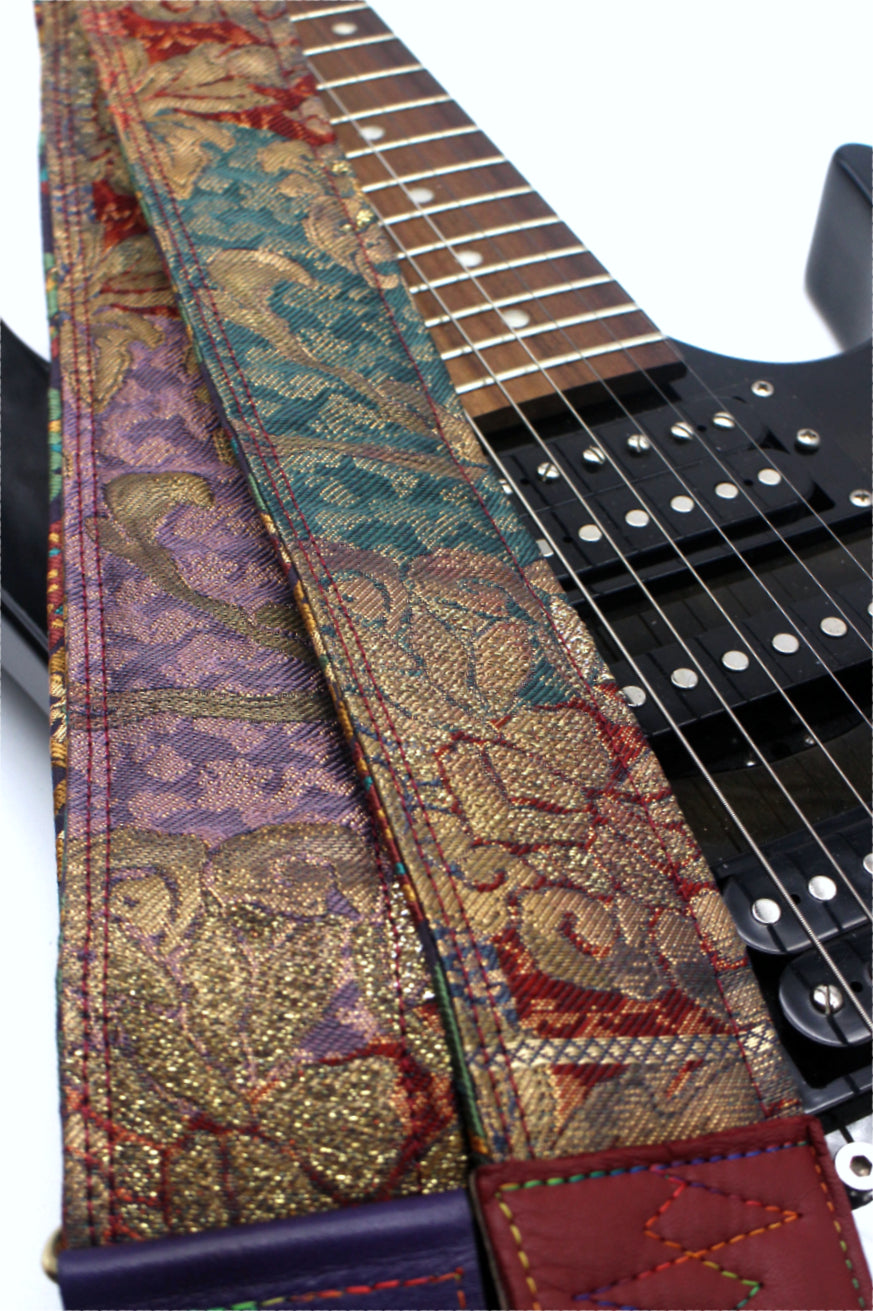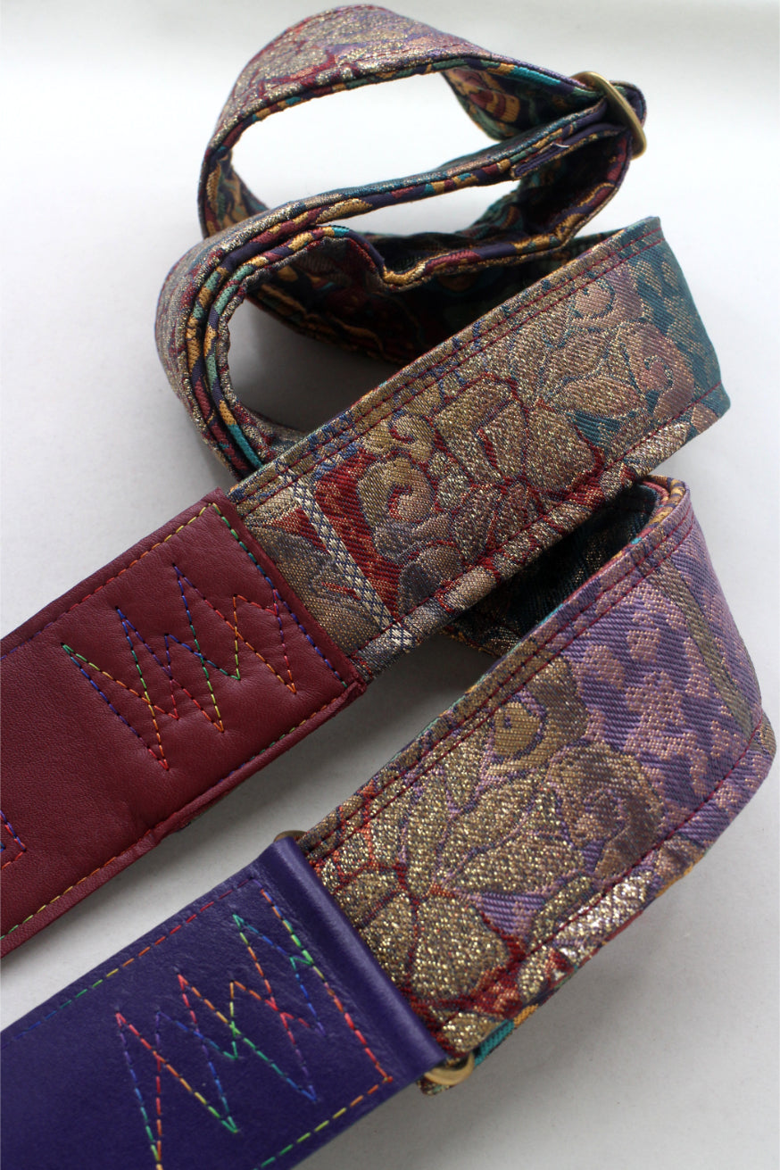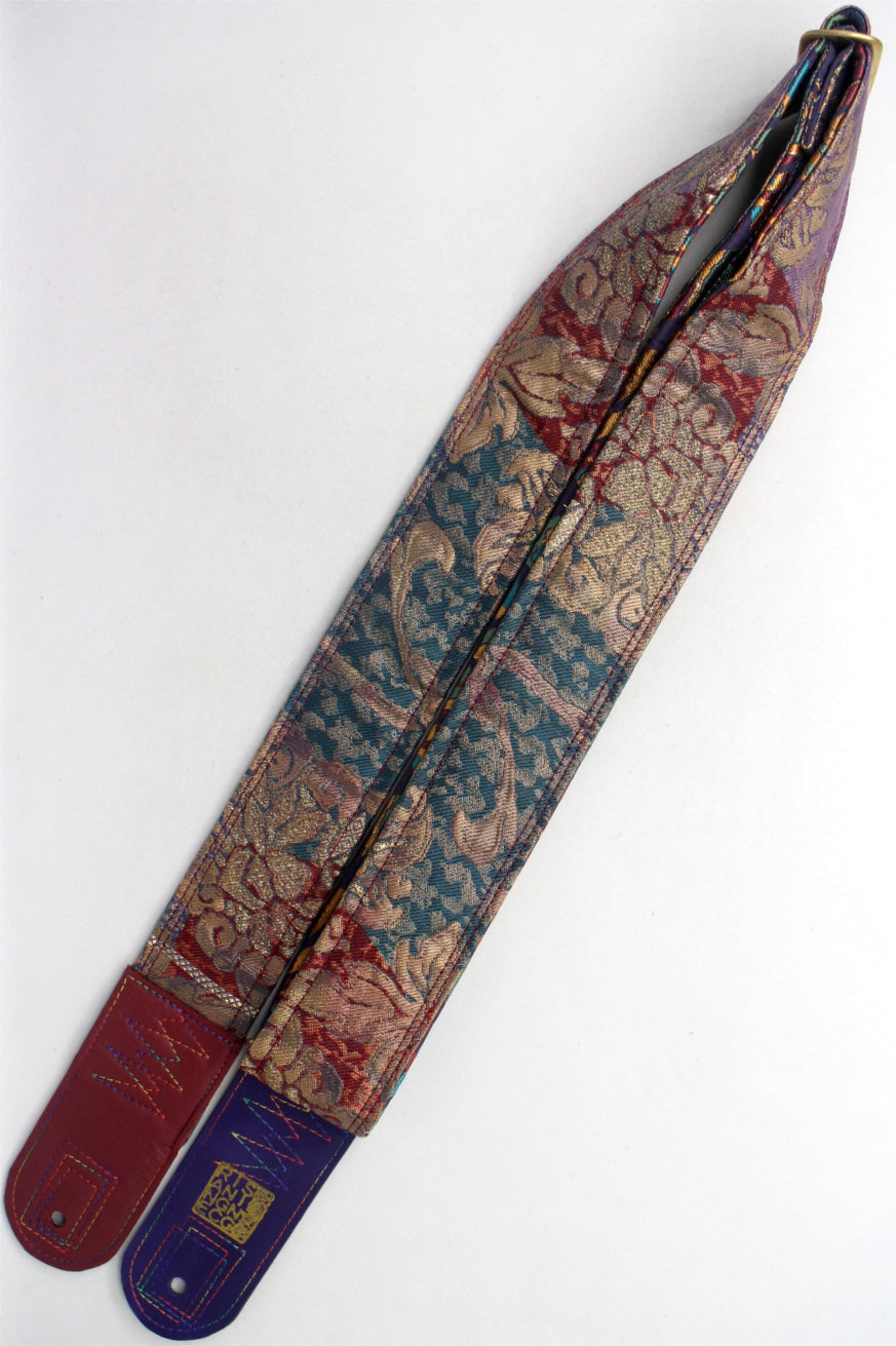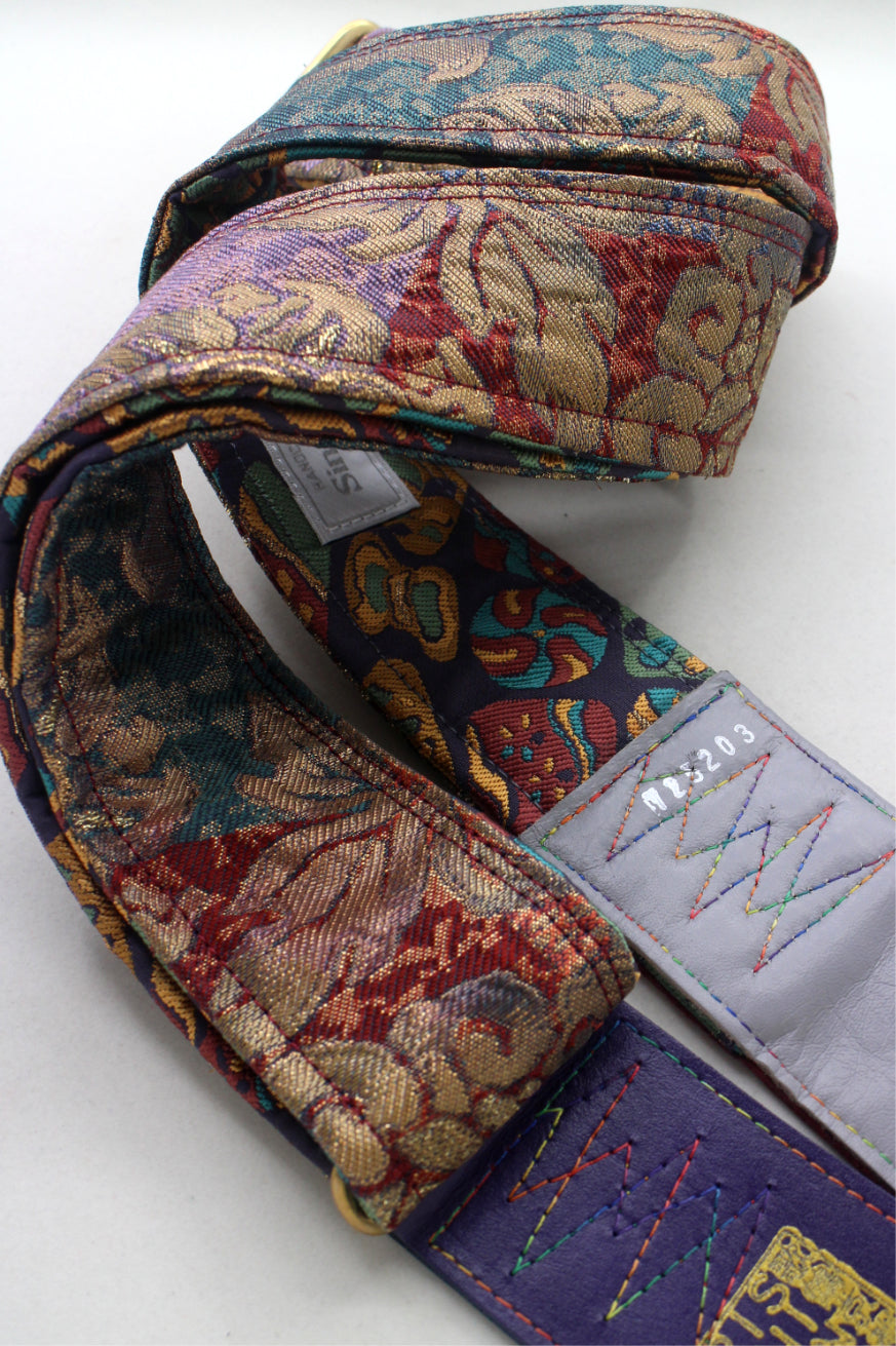 Unique and beautiful guitar strap [SC725203] - hand made in Japan from recycled silk woven kimono obi, leather and brass