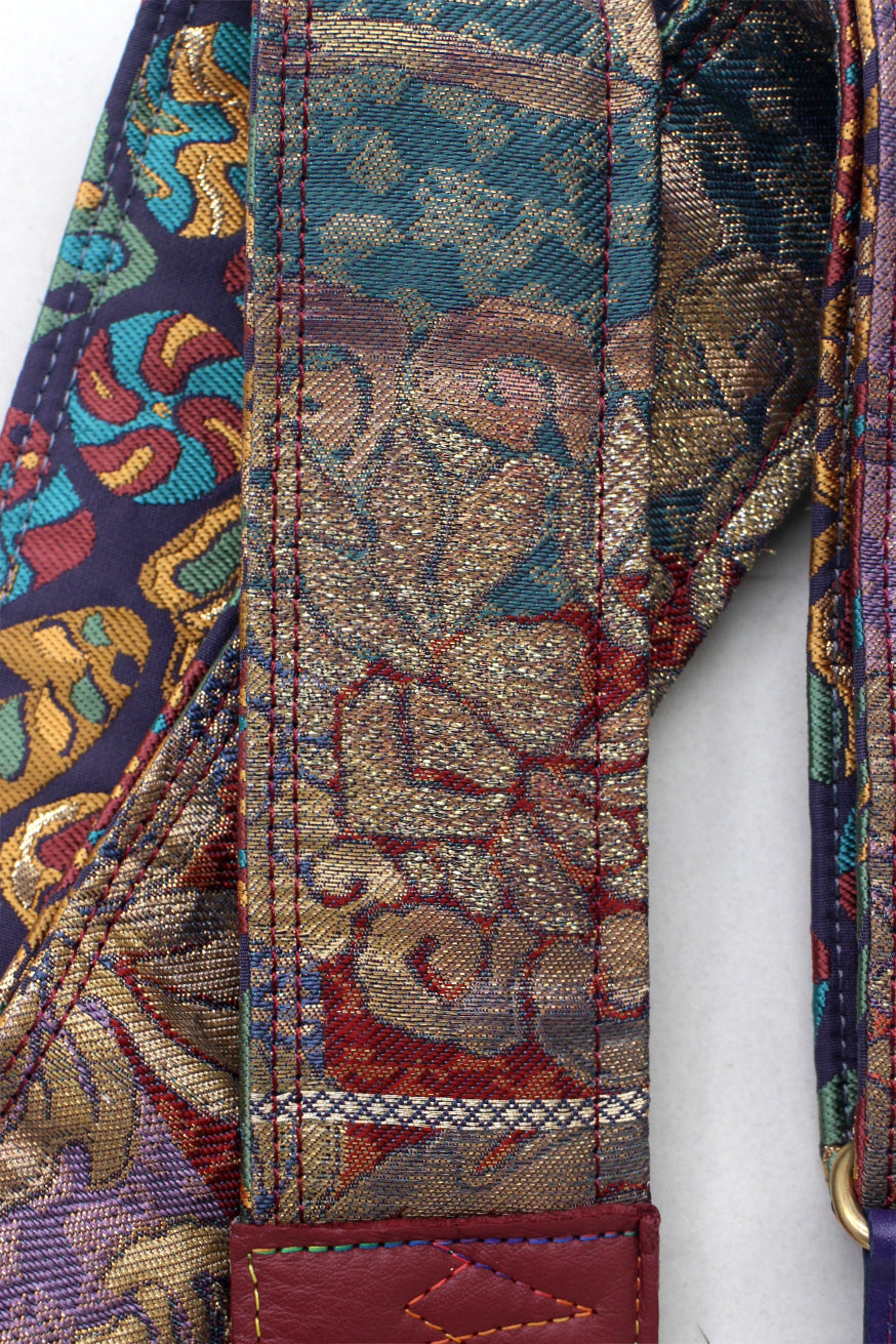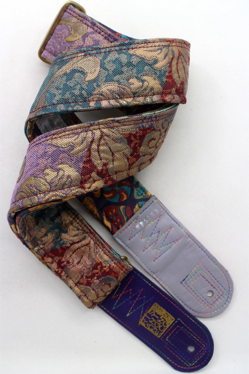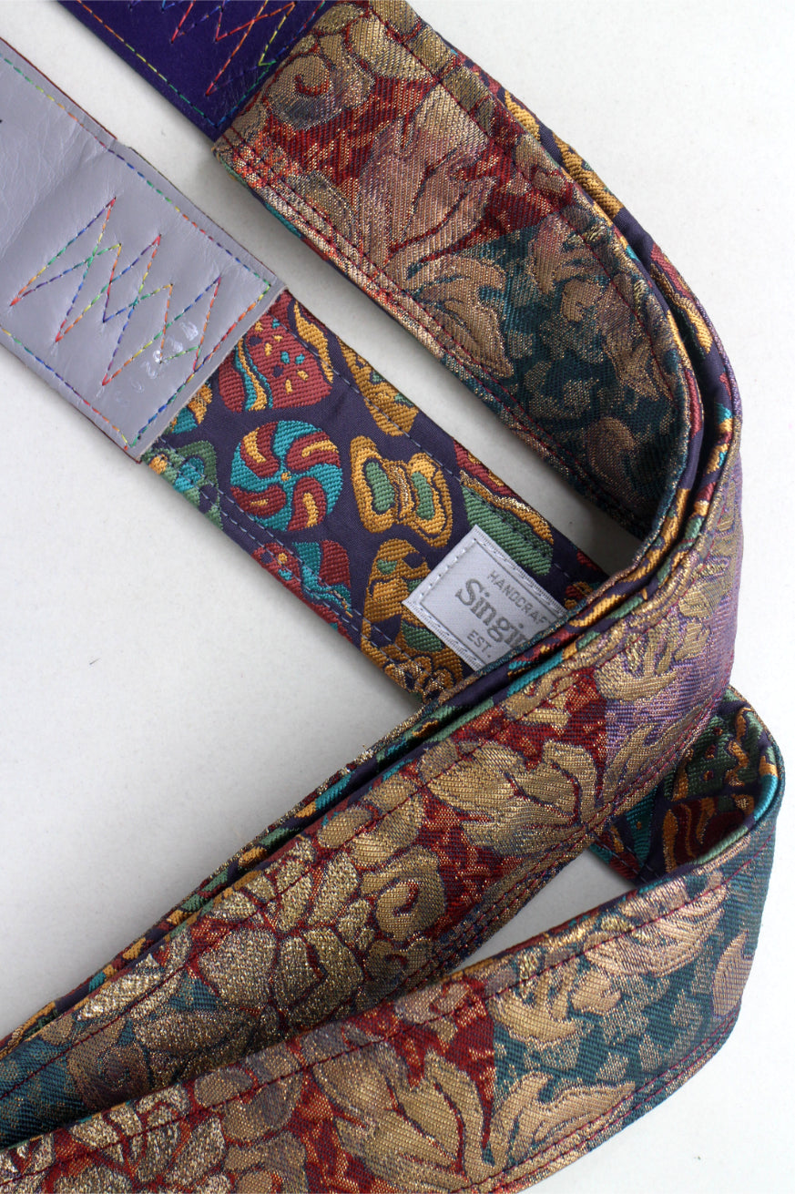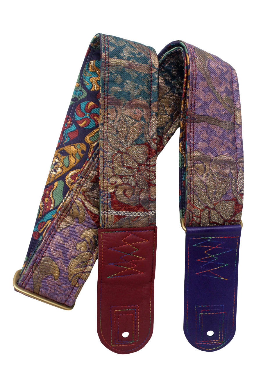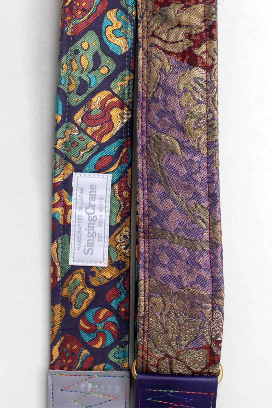 Unique and beautiful guitar strap [SC725203] - hand made in Japan from recycled silk woven kimono obi, leather and brass