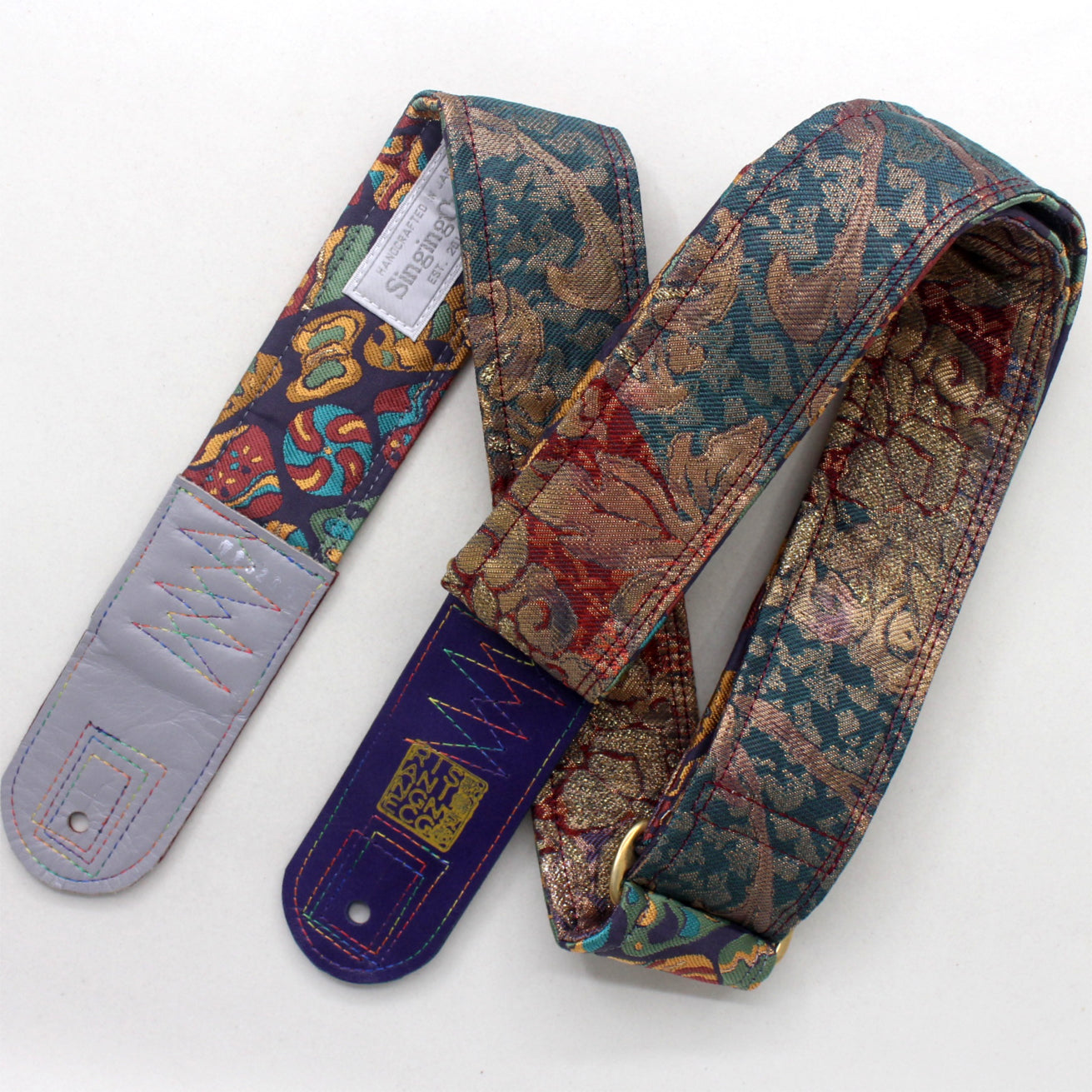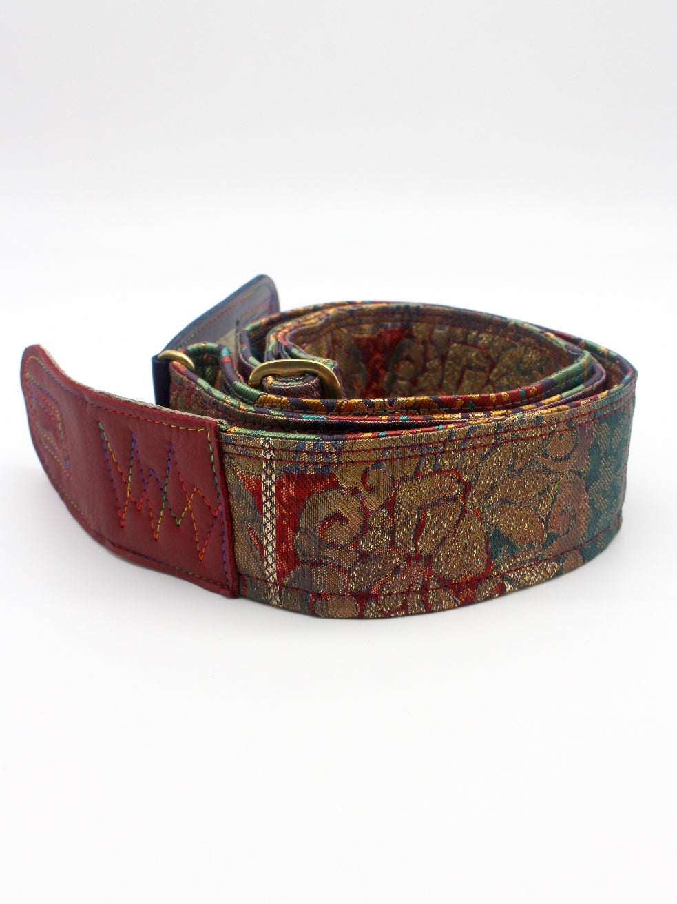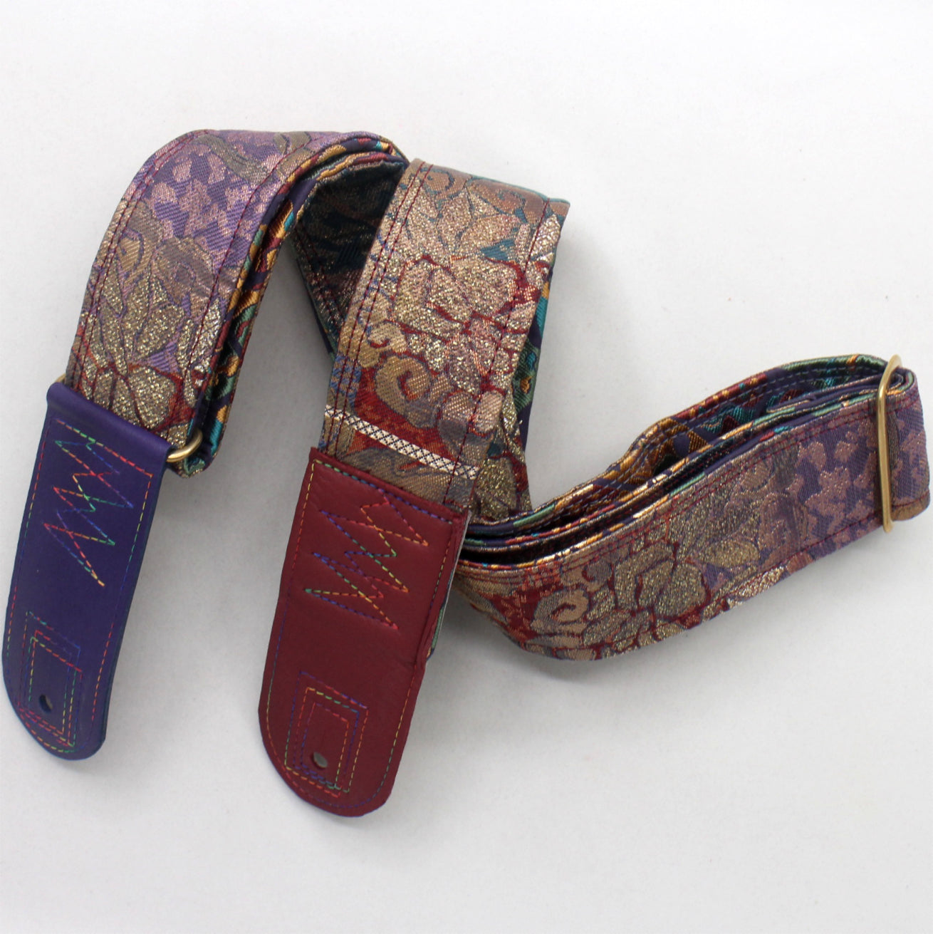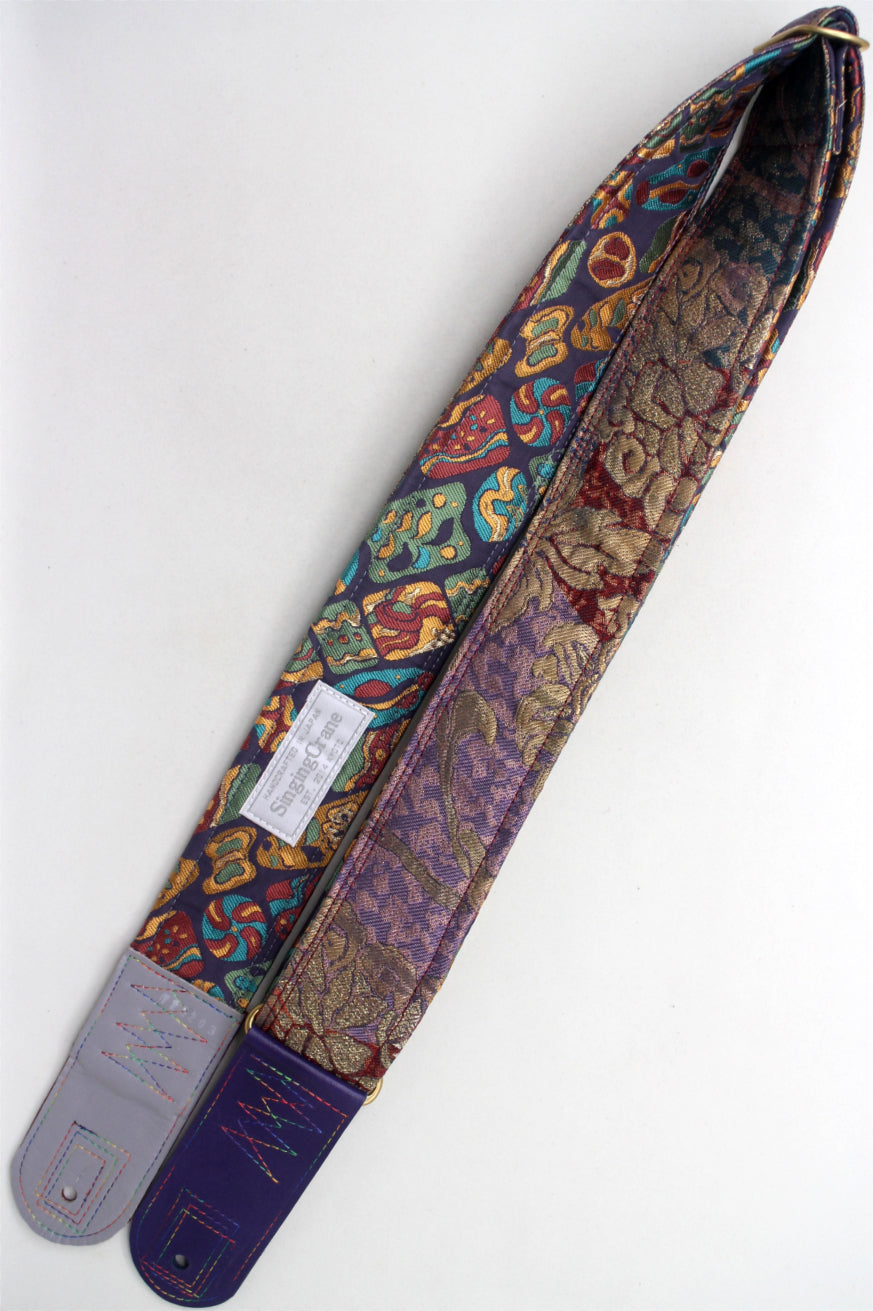 Unique and beautiful guitar strap [SC725203] - hand made in Japan from recycled silk woven kimono obi, leather and brass