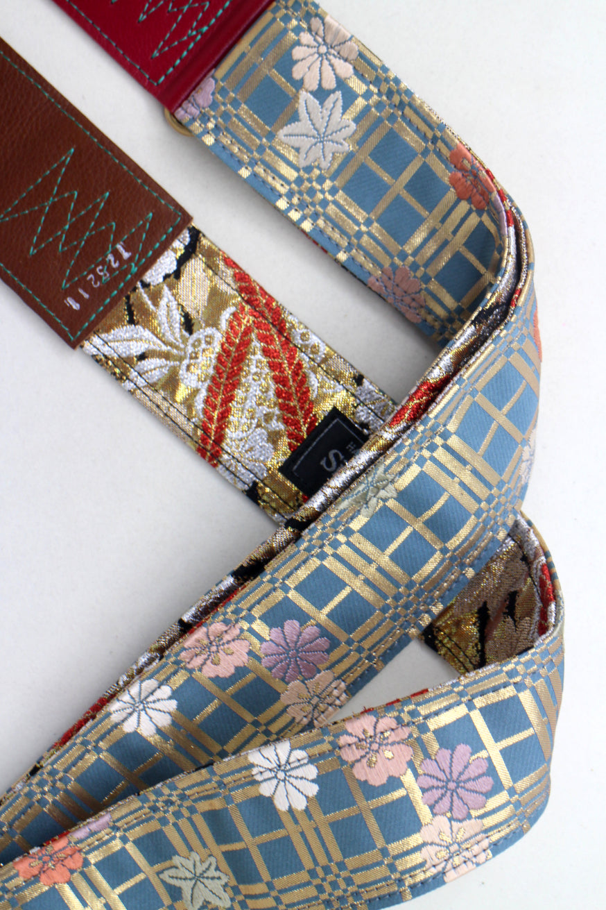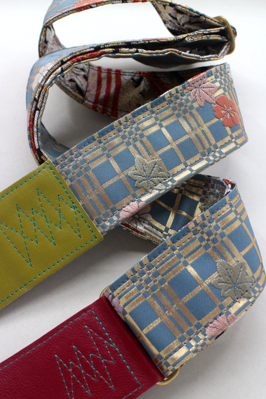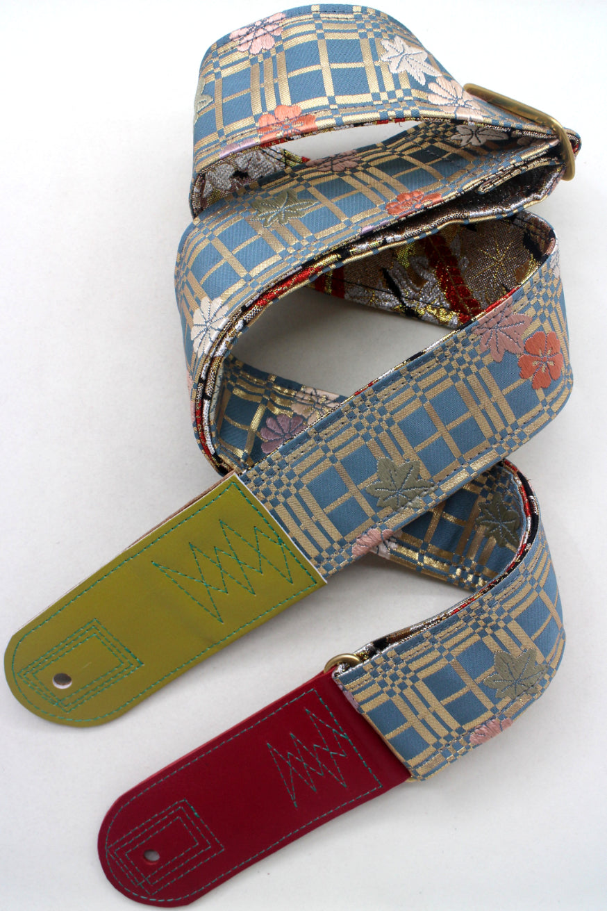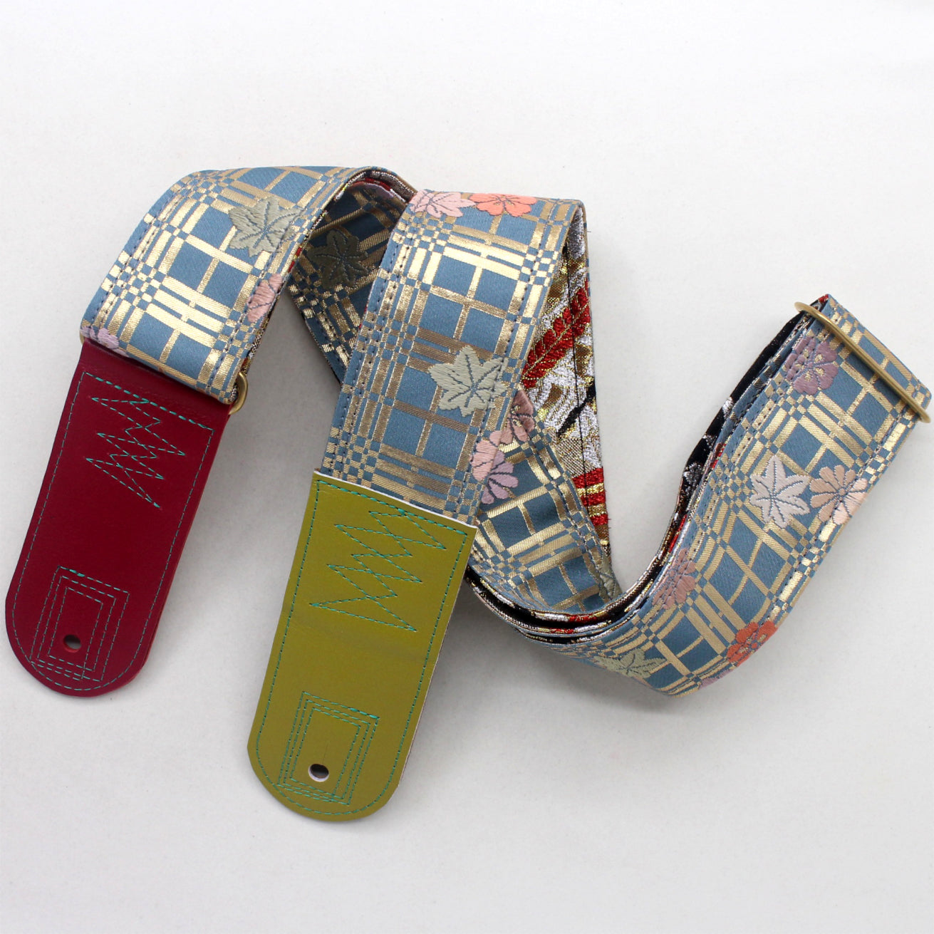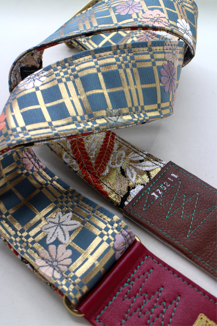 Unique and beautiful guitar strap [SC725211] - hand made in Japan from recycled silk woven kimono obi, leather and brass