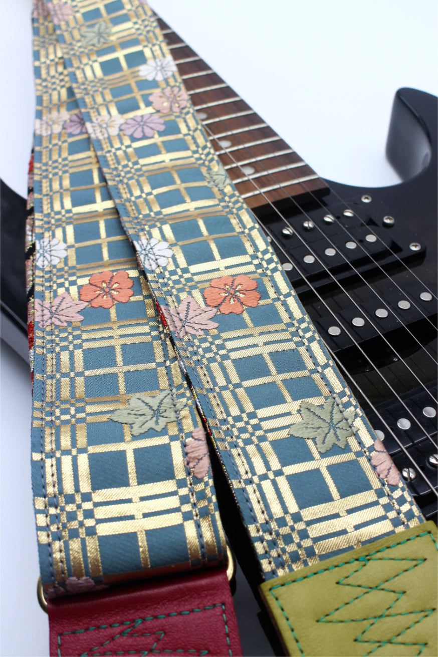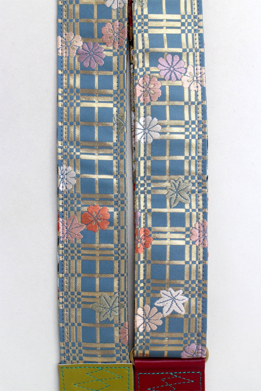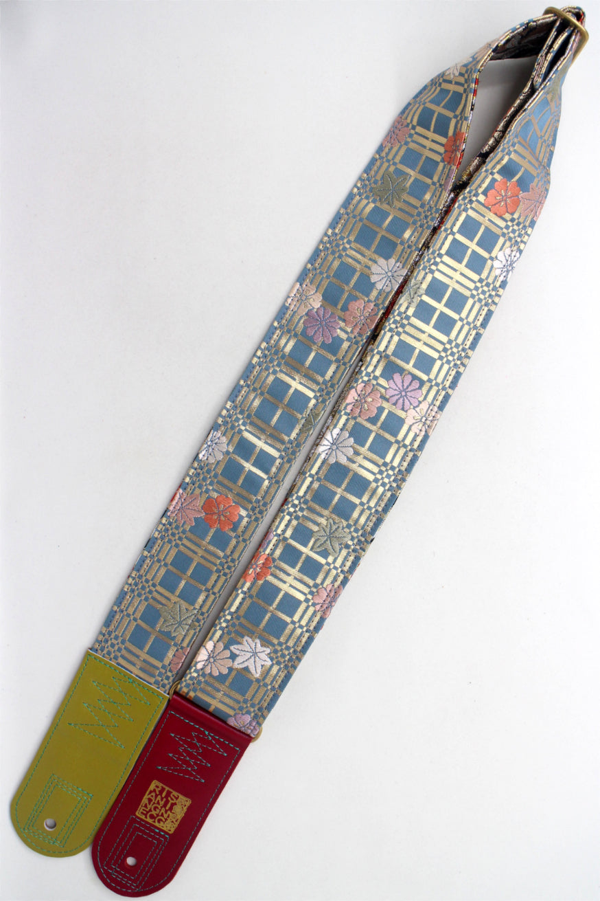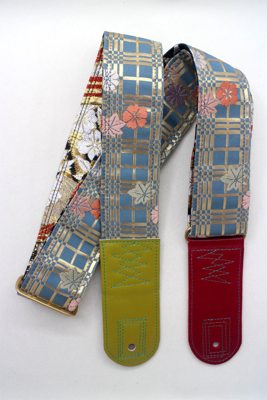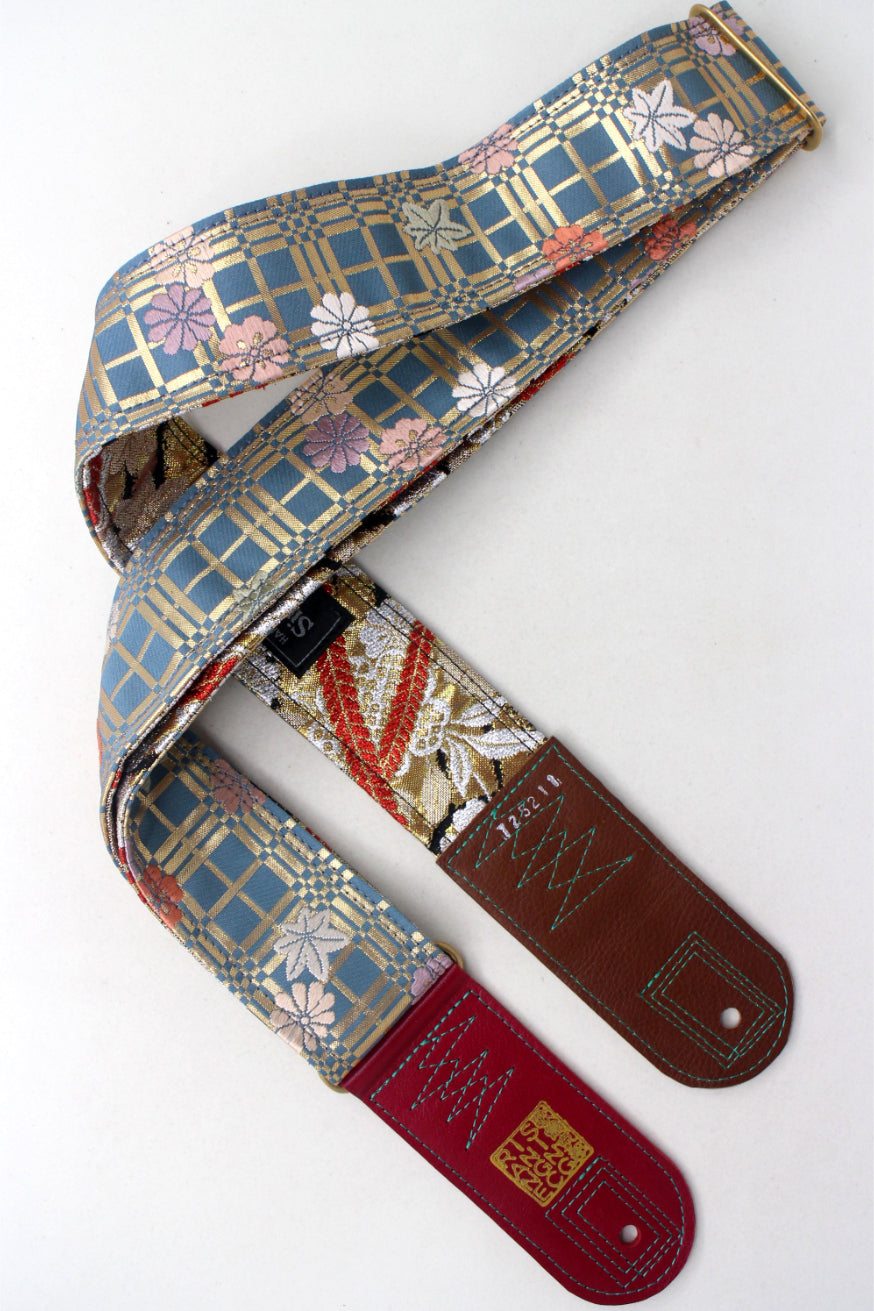 Unique and beautiful guitar strap [SC725211] - hand made in Japan from recycled silk woven kimono obi, leather and brass