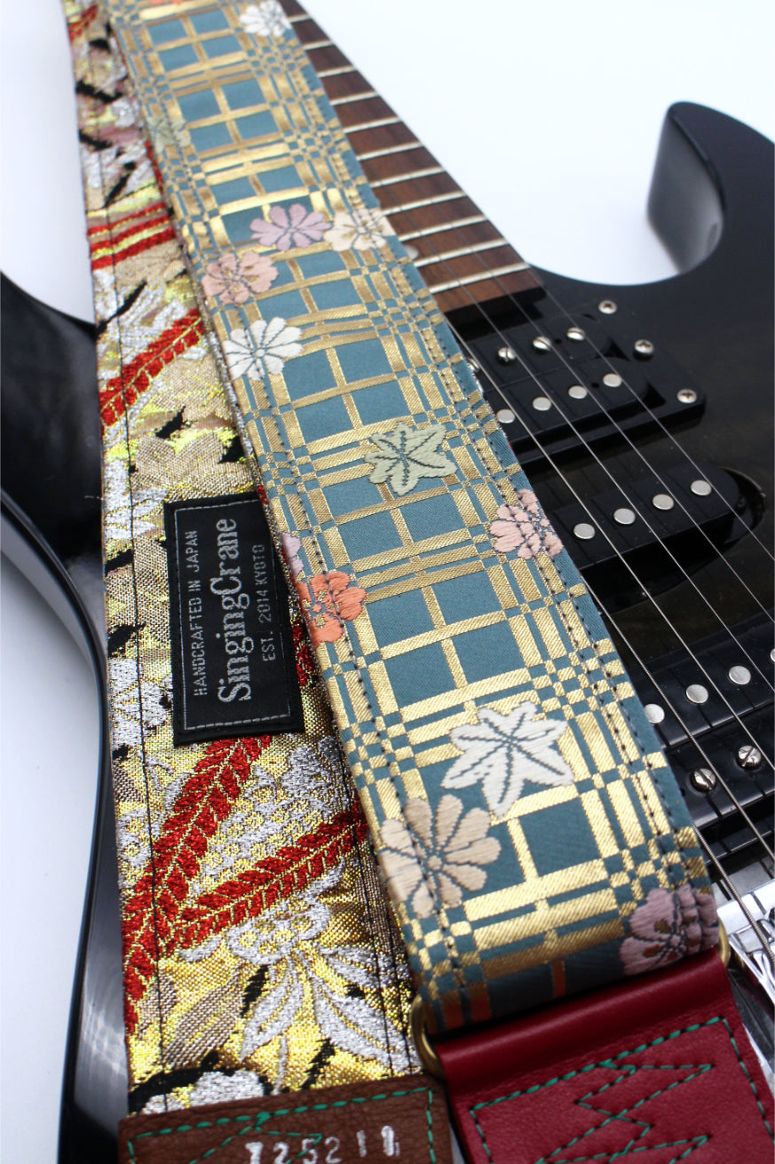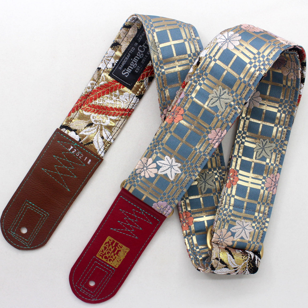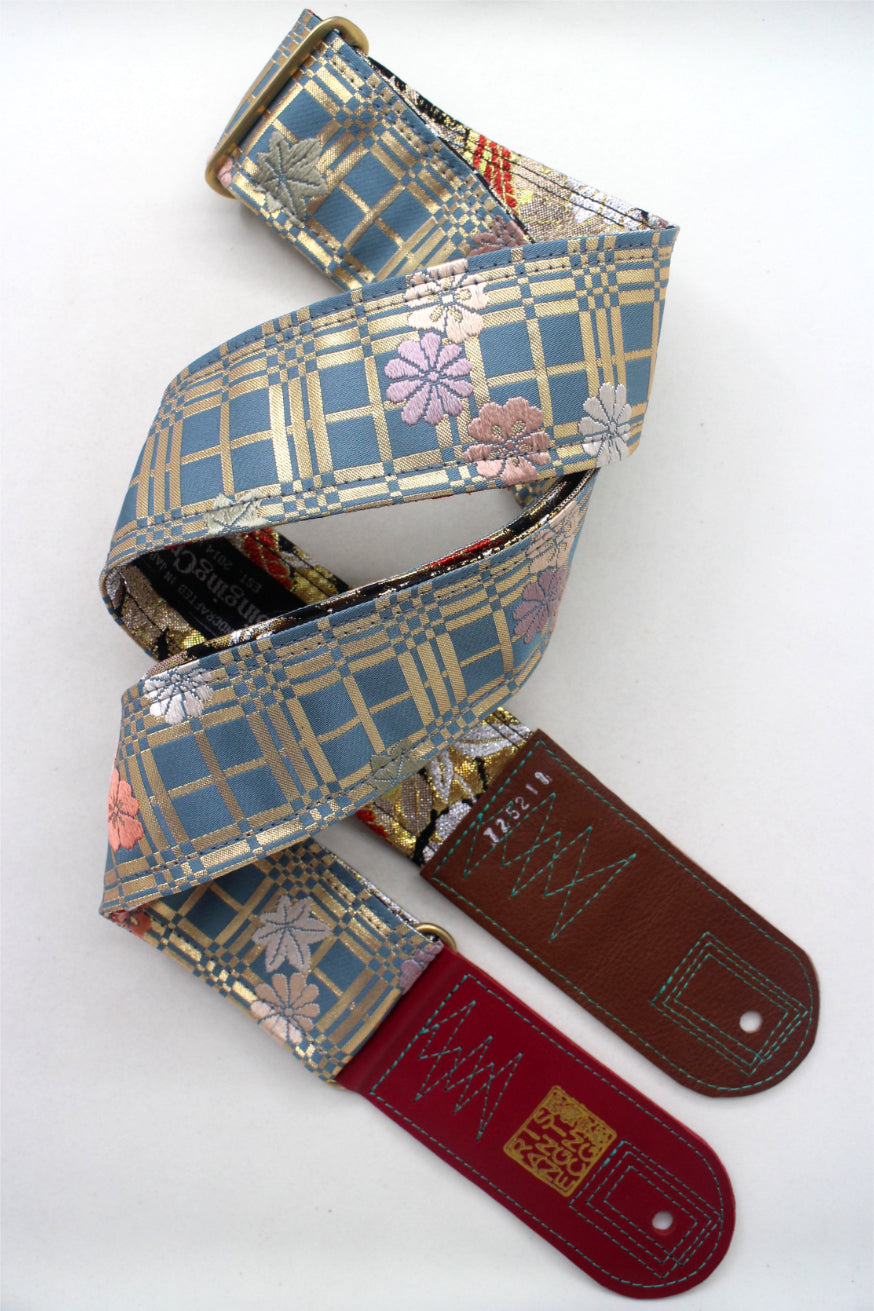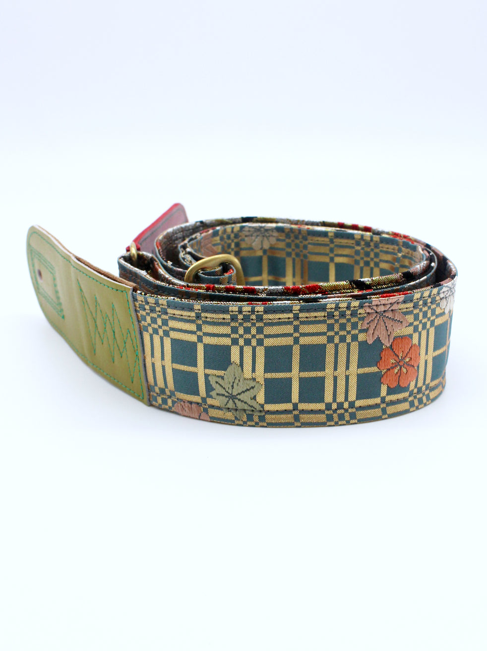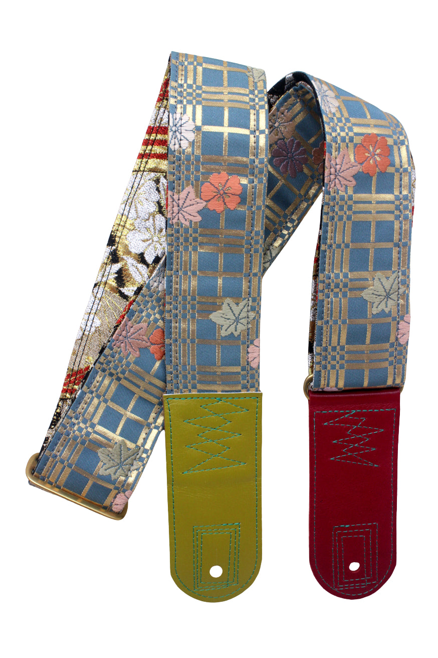 Unique and beautiful guitar strap [SC725211] - hand made in Japan from recycled silk woven kimono obi, leather and brass