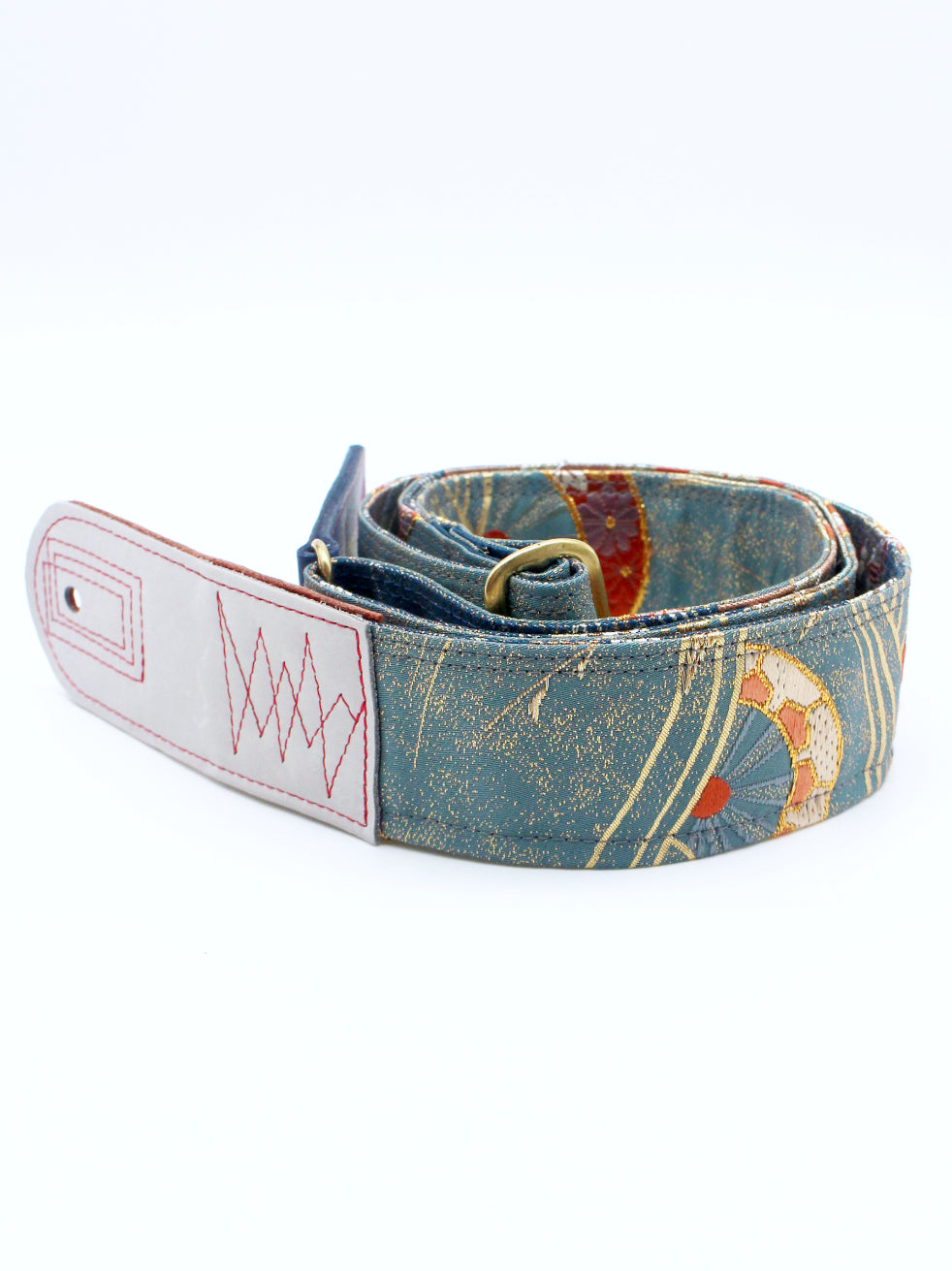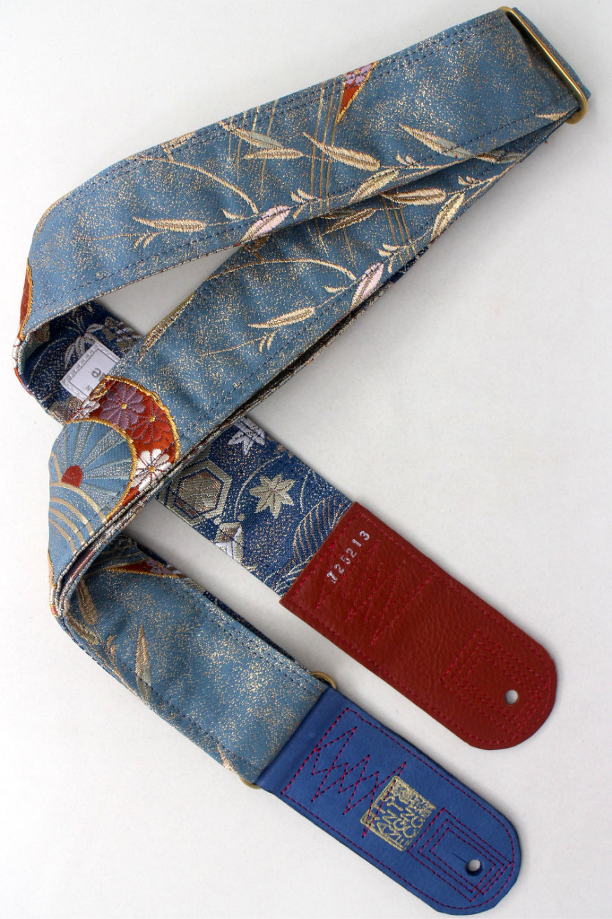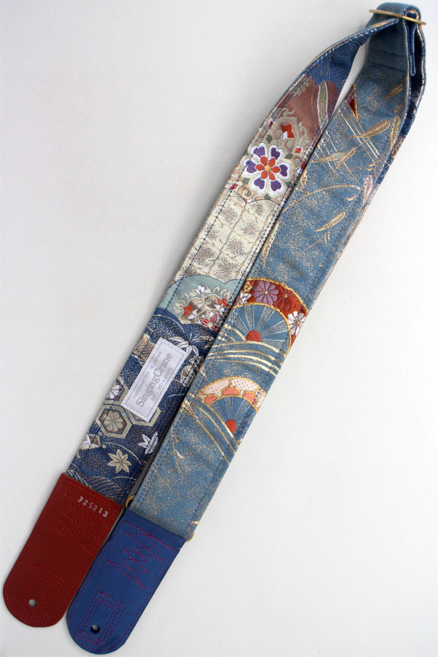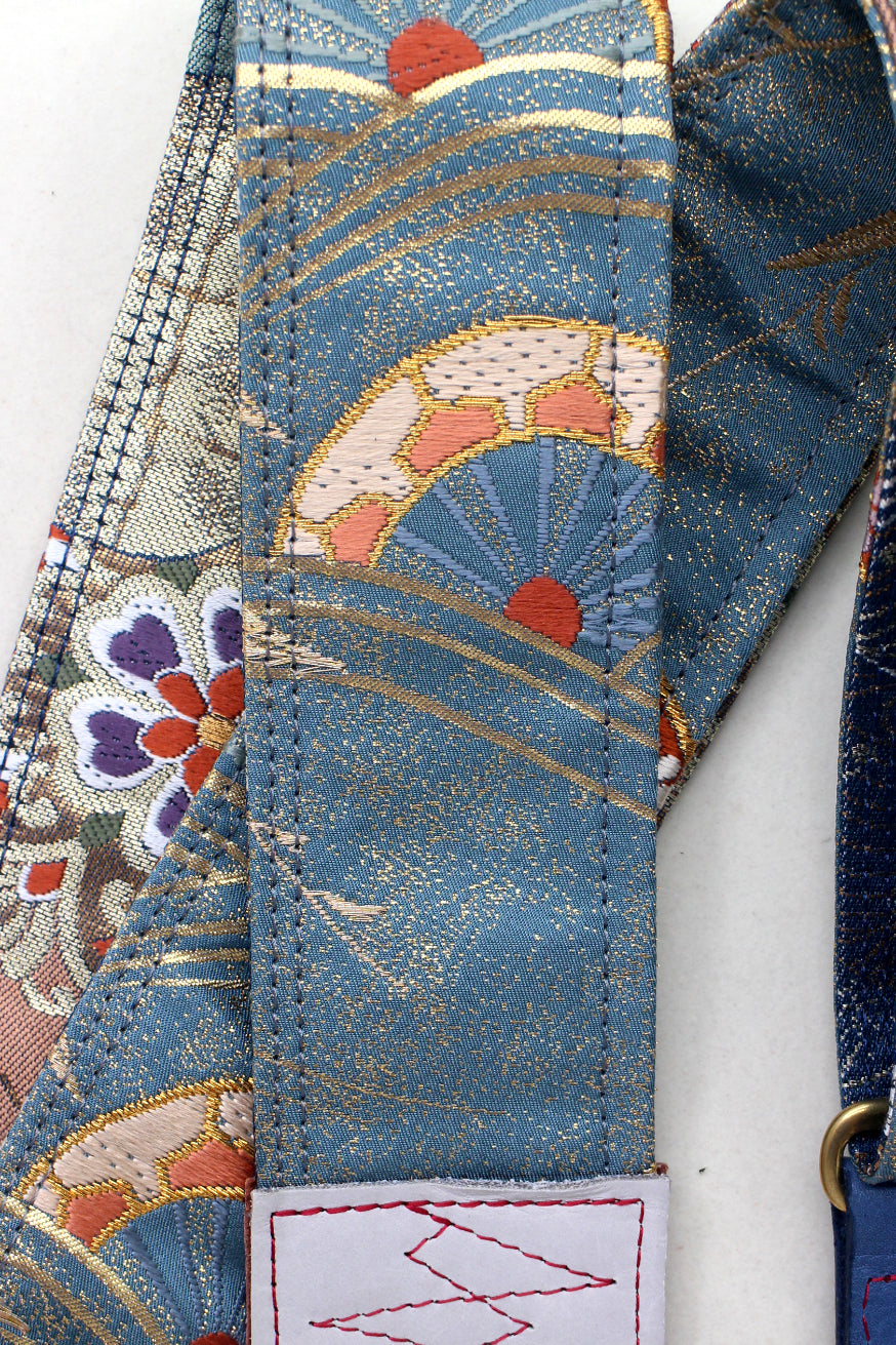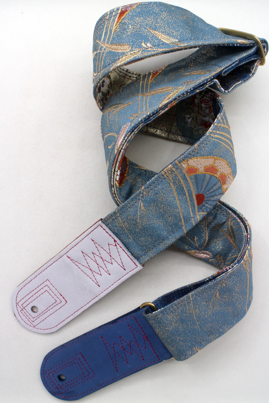 Unique and beautiful guitar strap [SC725213] - hand made in Japan from recycled silk woven kimono obi, leather and brass