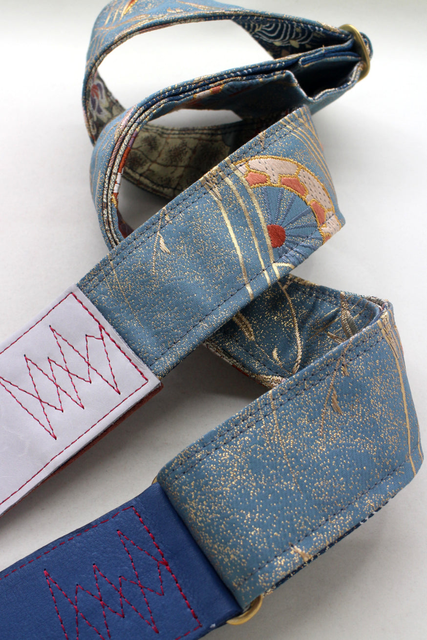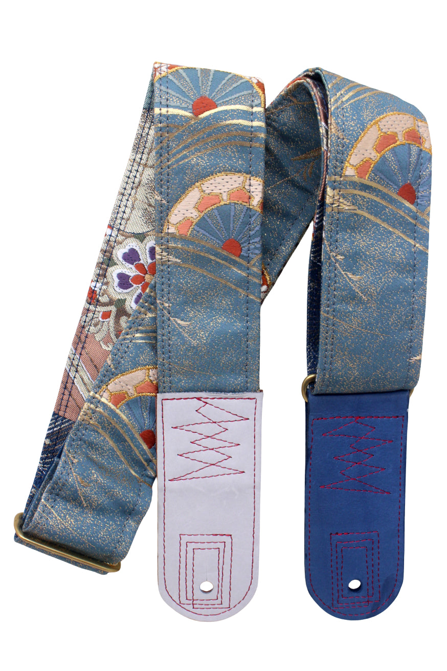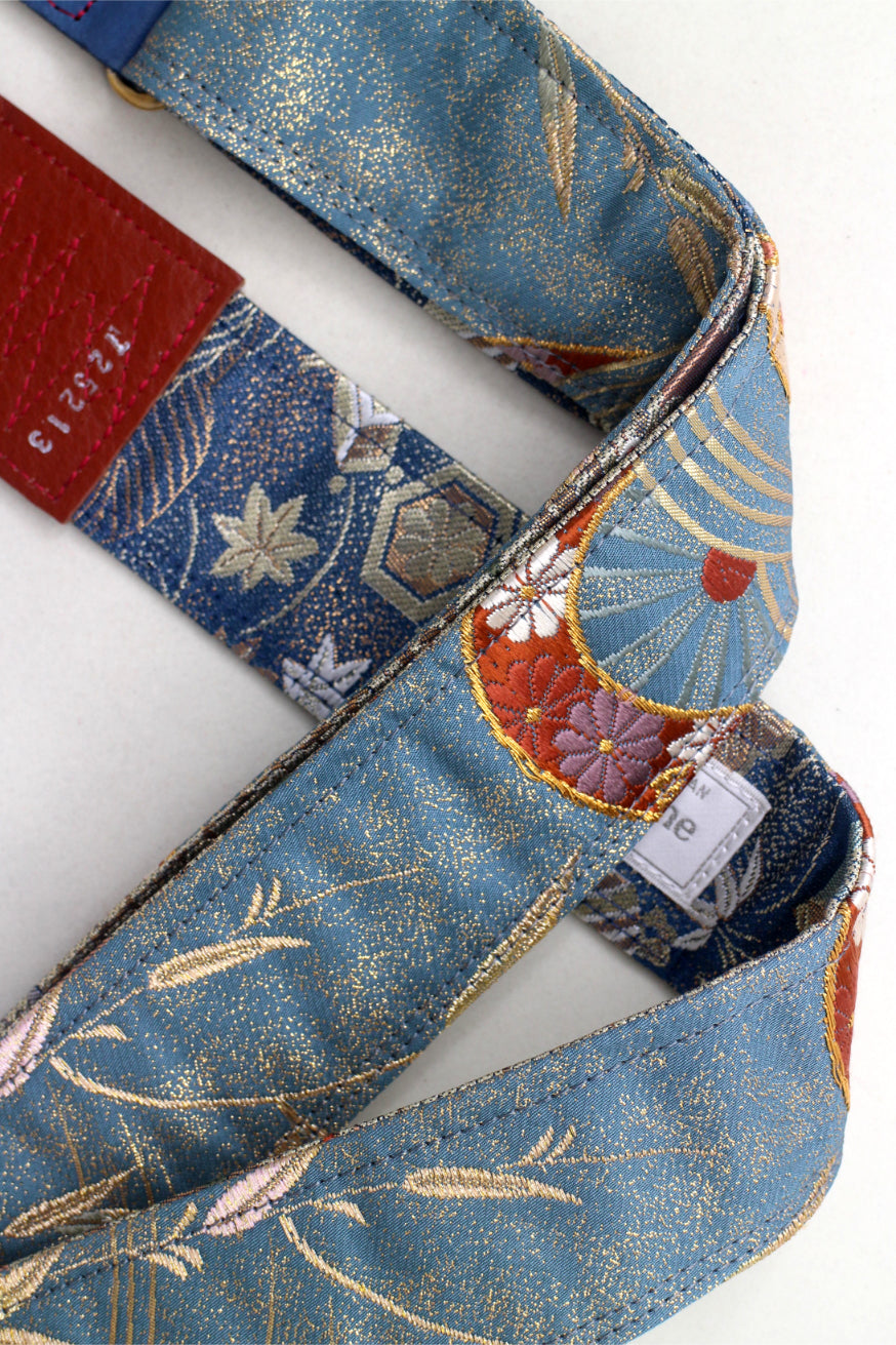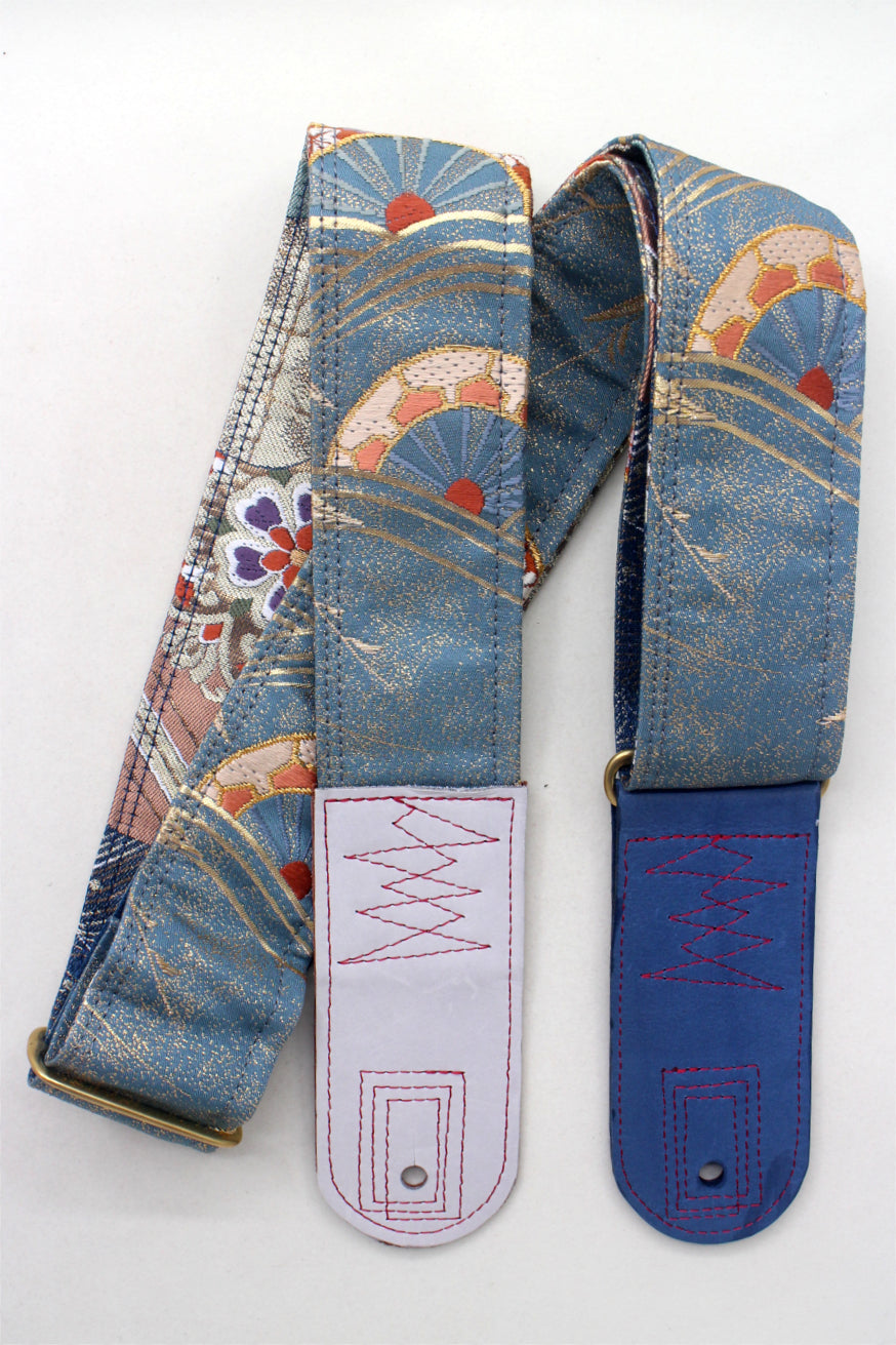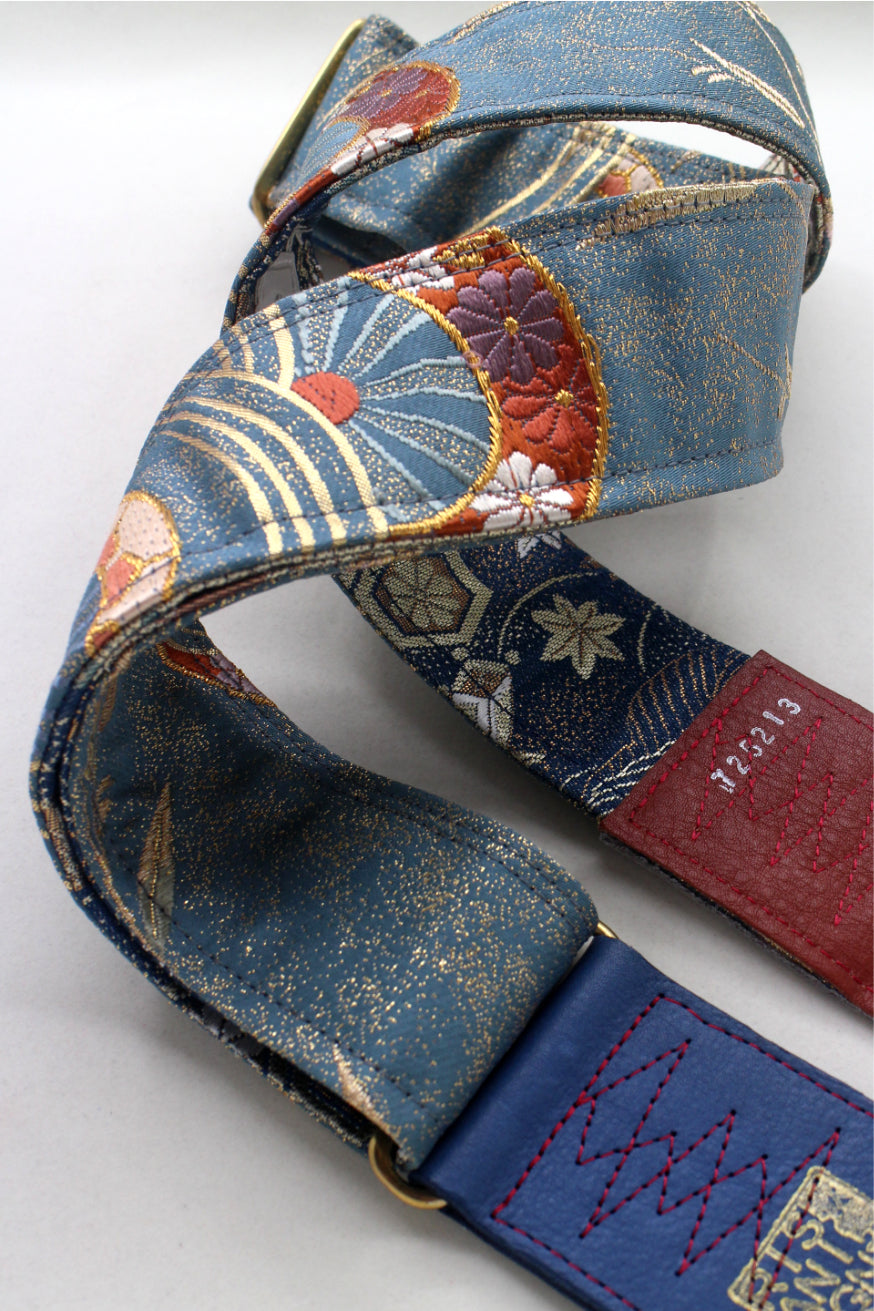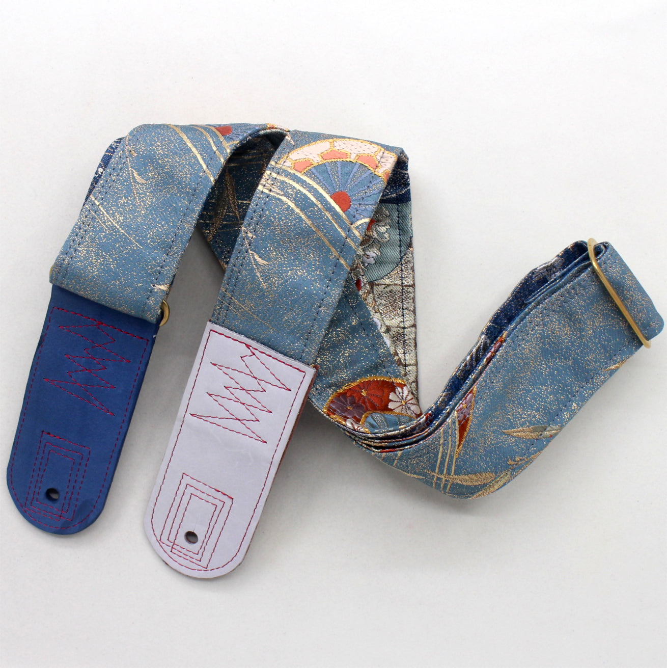 Unique and beautiful guitar strap [SC725213] - hand made in Japan from recycled silk woven kimono obi, leather and brass