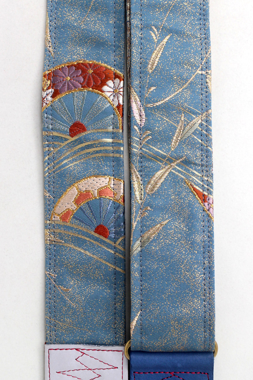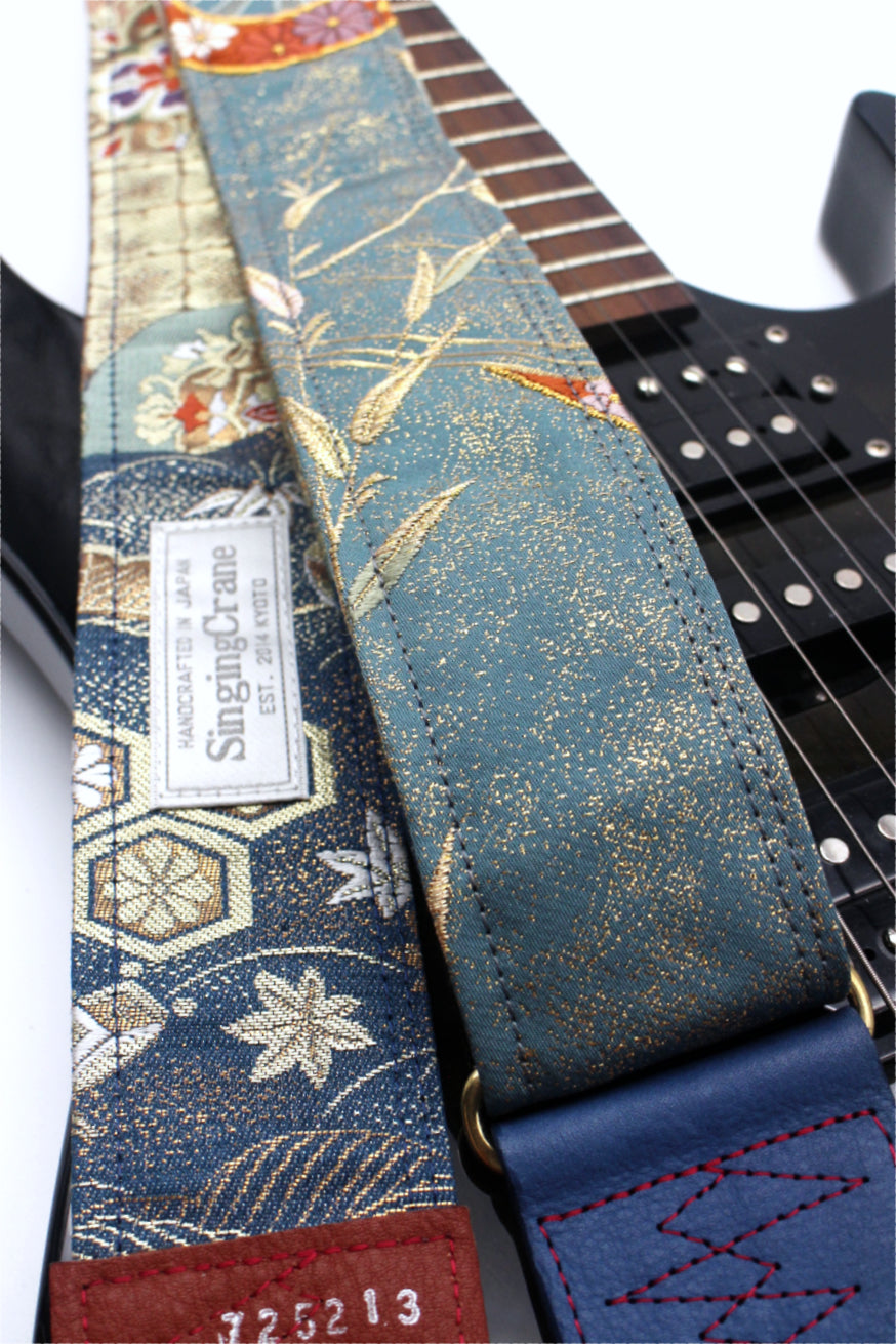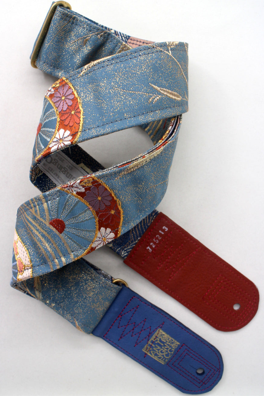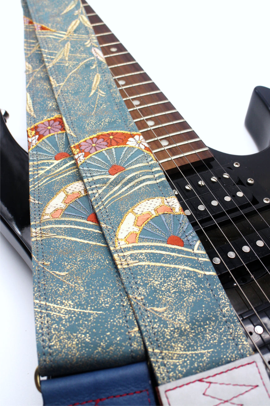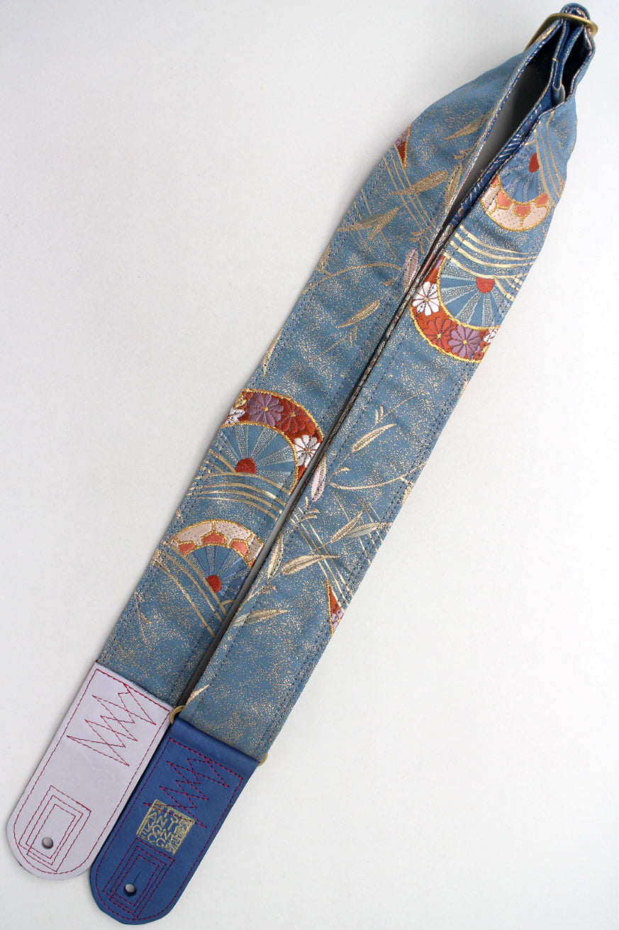 Unique and beautiful guitar strap [SC725213] - hand made in Japan from recycled silk woven kimono obi, leather and brass