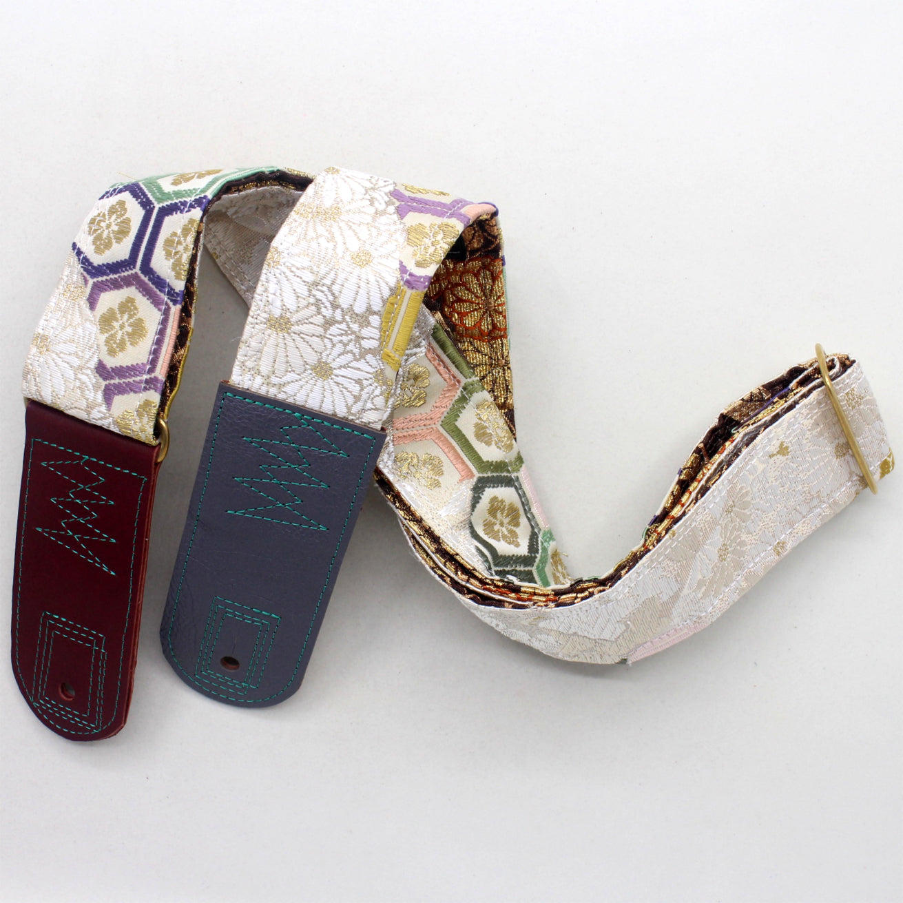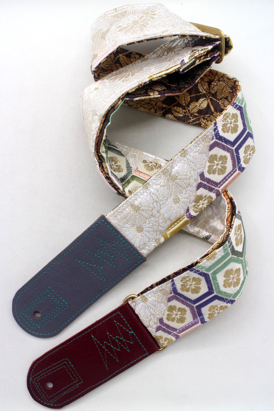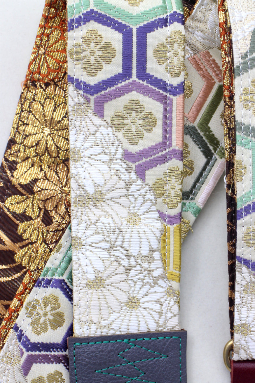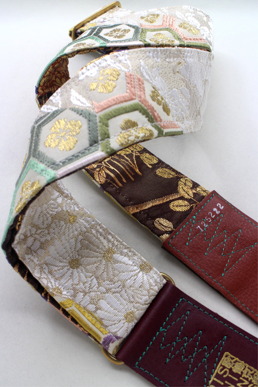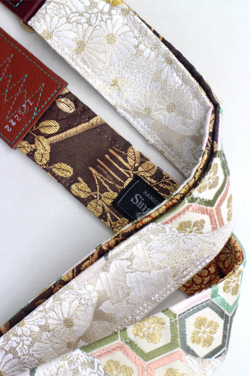 Unique and beautiful guitar strap [SC725222] - hand made in Japan from recycled silk woven kimono obi, leather and brass