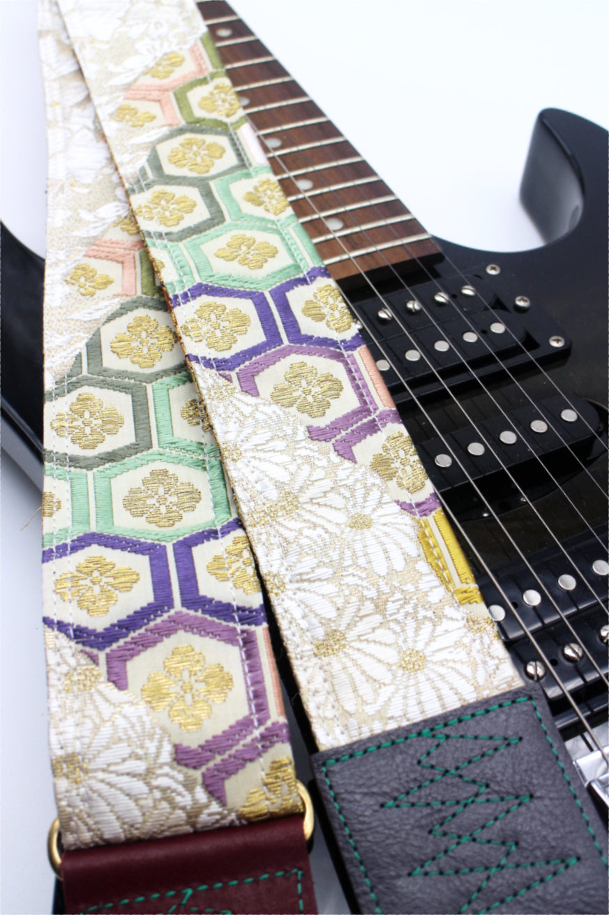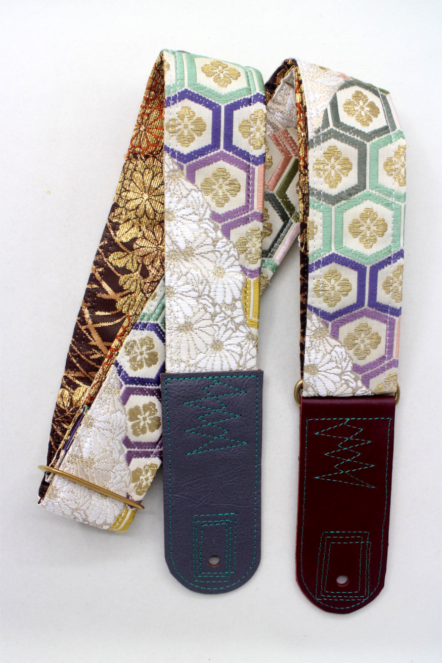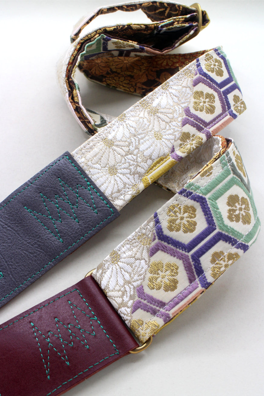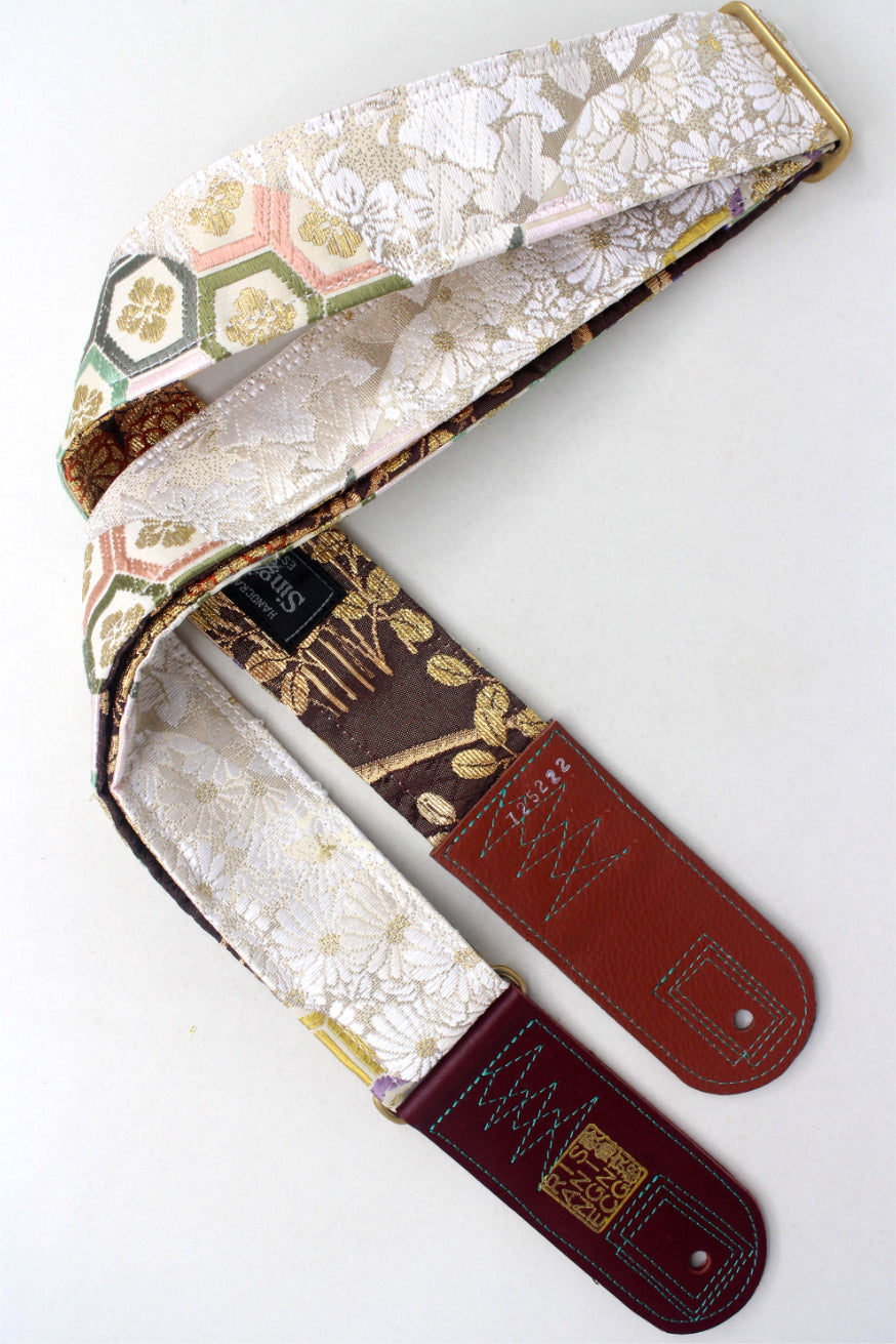 Unique and beautiful guitar strap [SC725222] - hand made in Japan from recycled silk woven kimono obi, leather and brass
