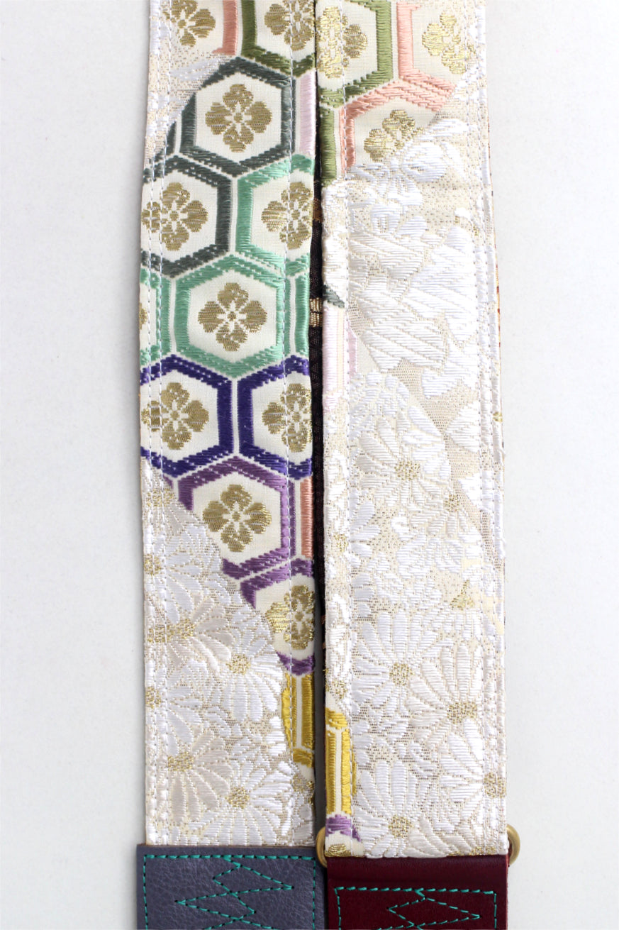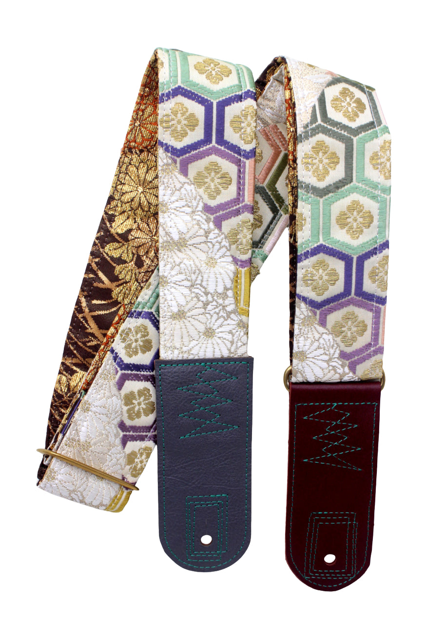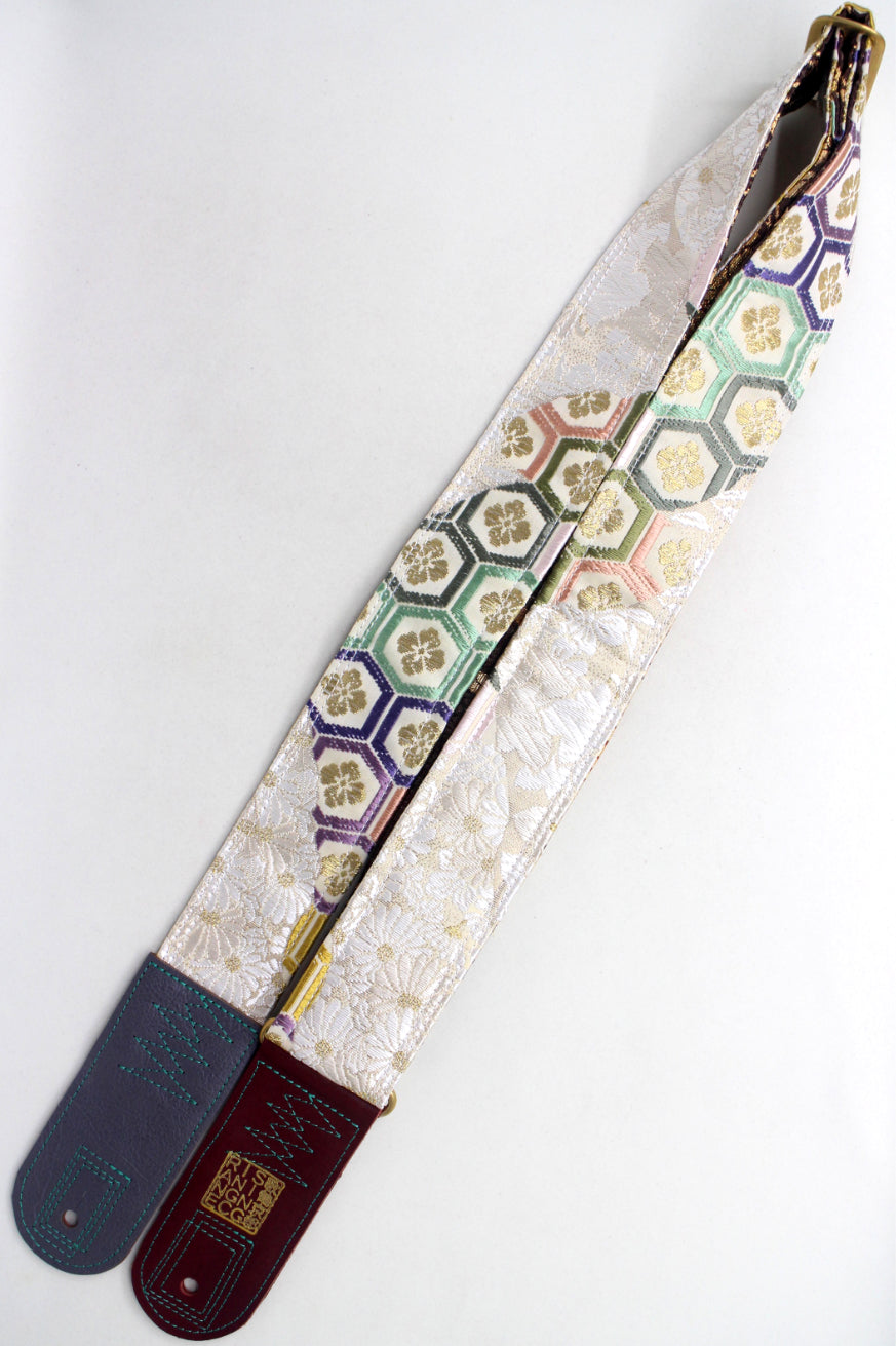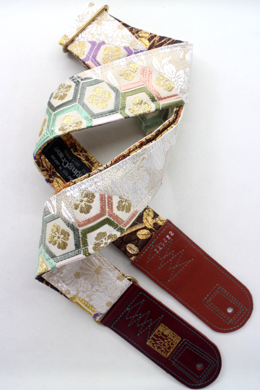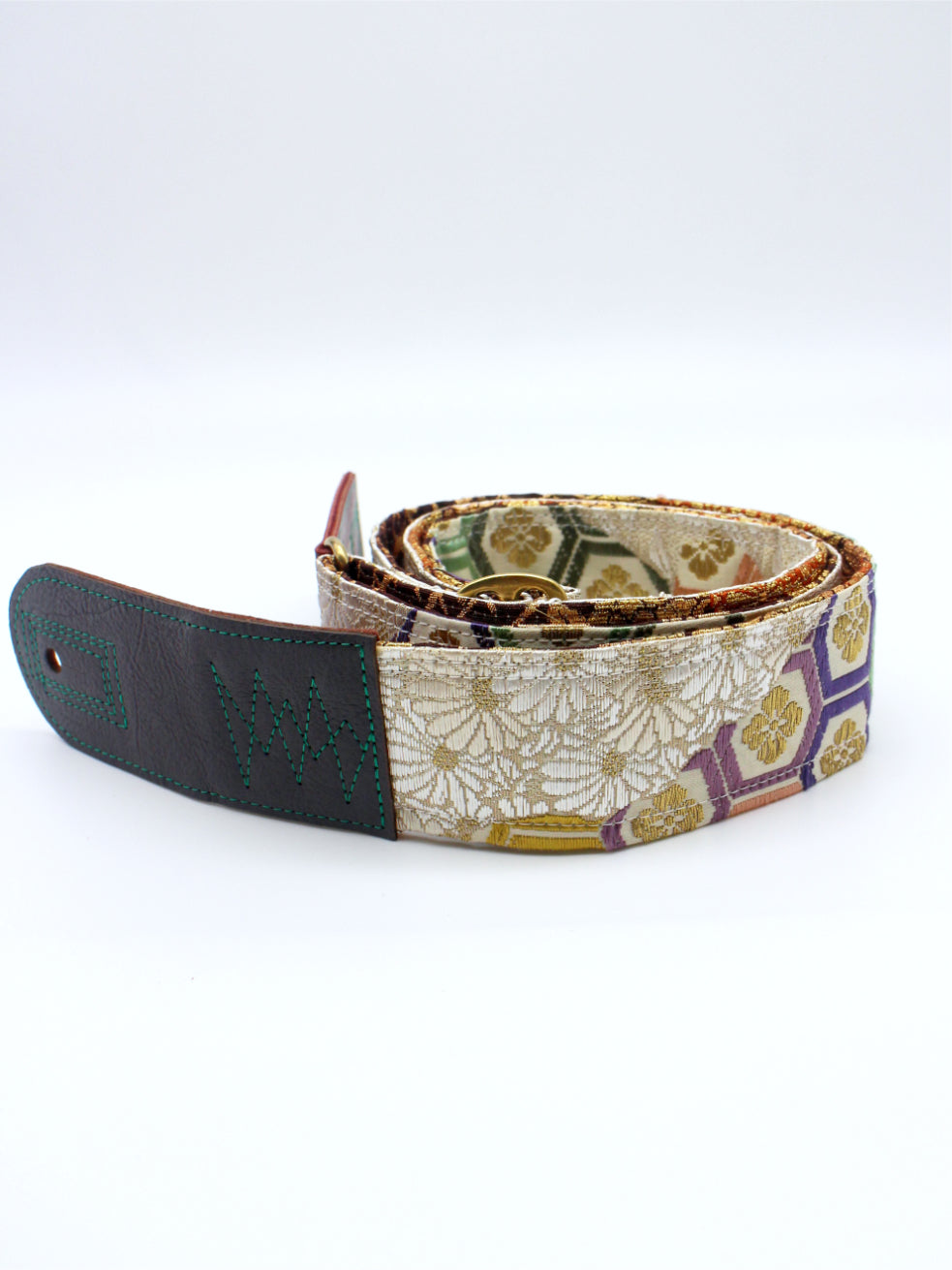 Unique and beautiful guitar strap [SC725222] - hand made in Japan from recycled silk woven kimono obi, leather and brass