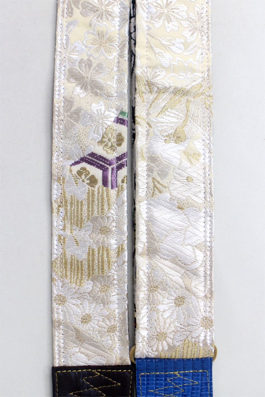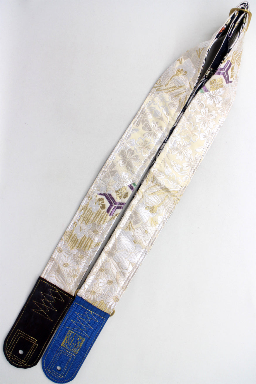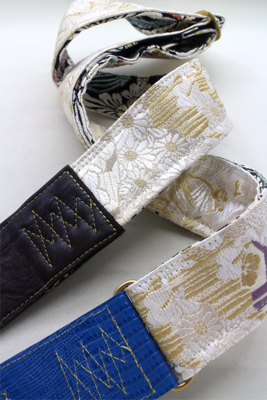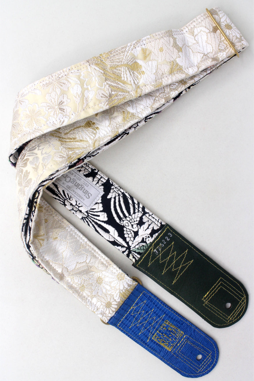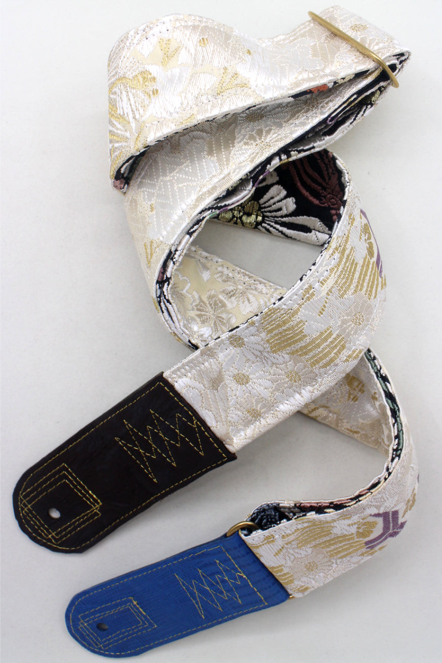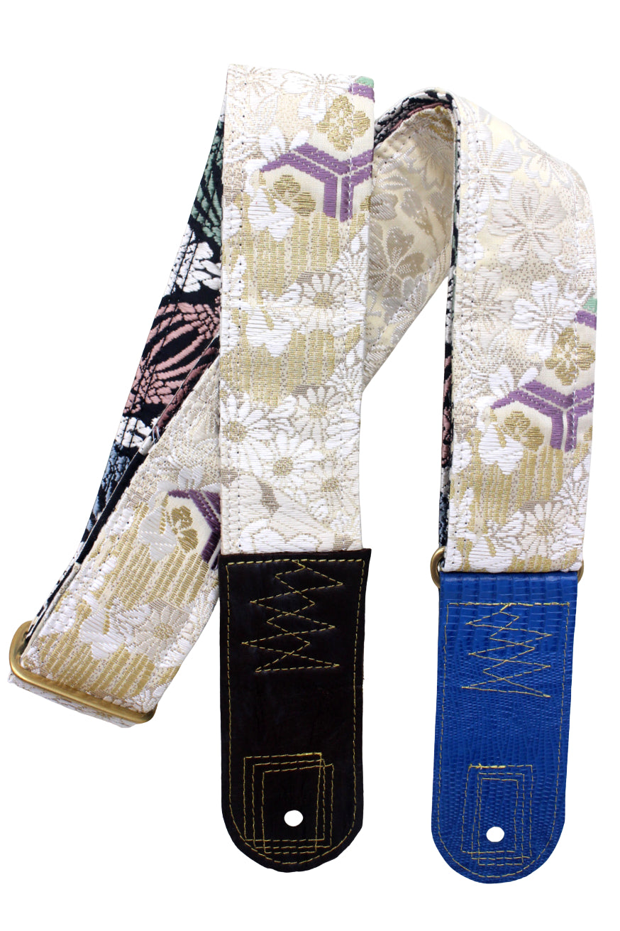 Unique and beautiful guitar strap [SC725223] - hand made in Japan from recycled silk woven kimono obi, leather and brass
