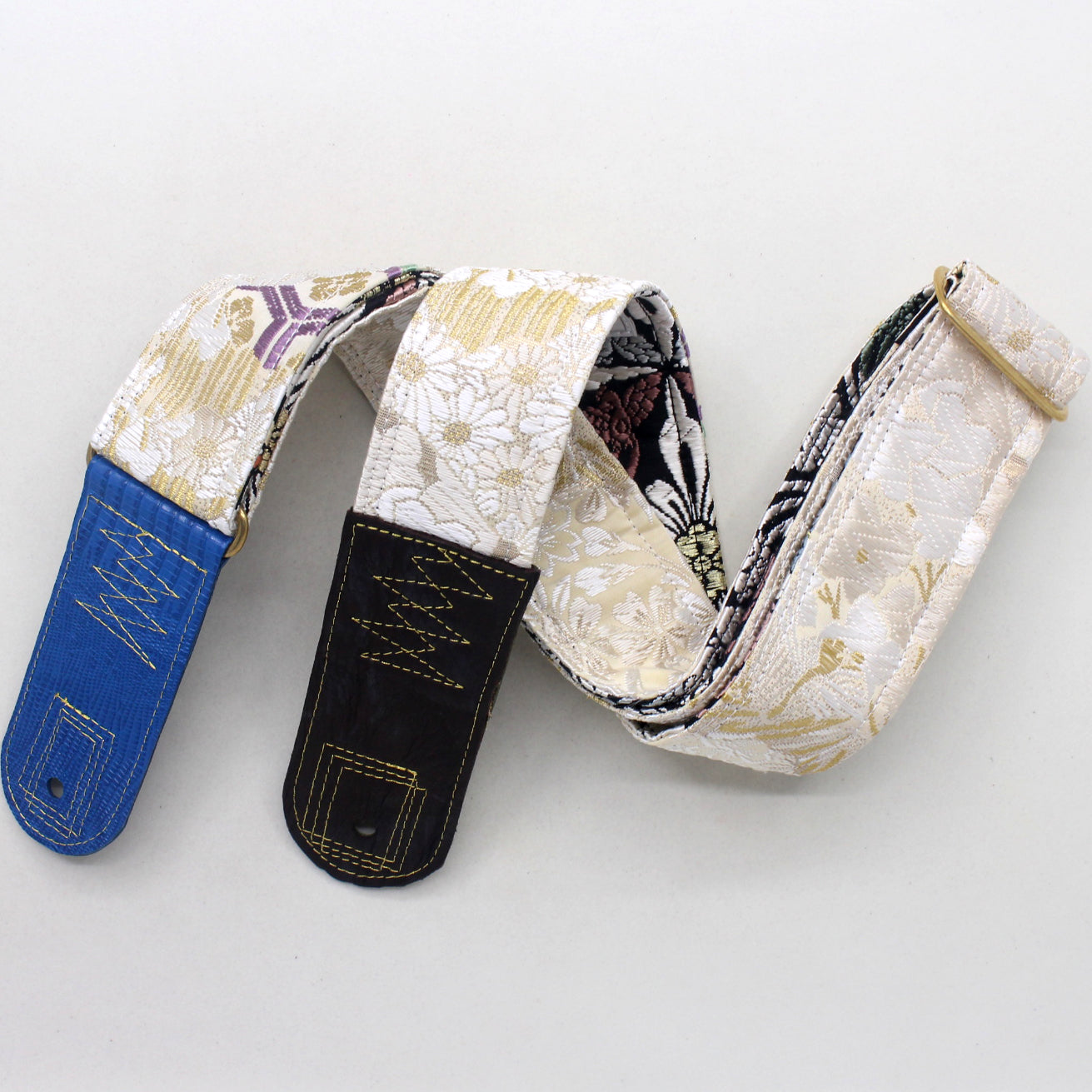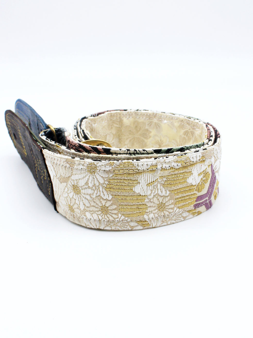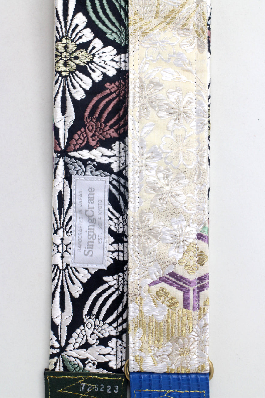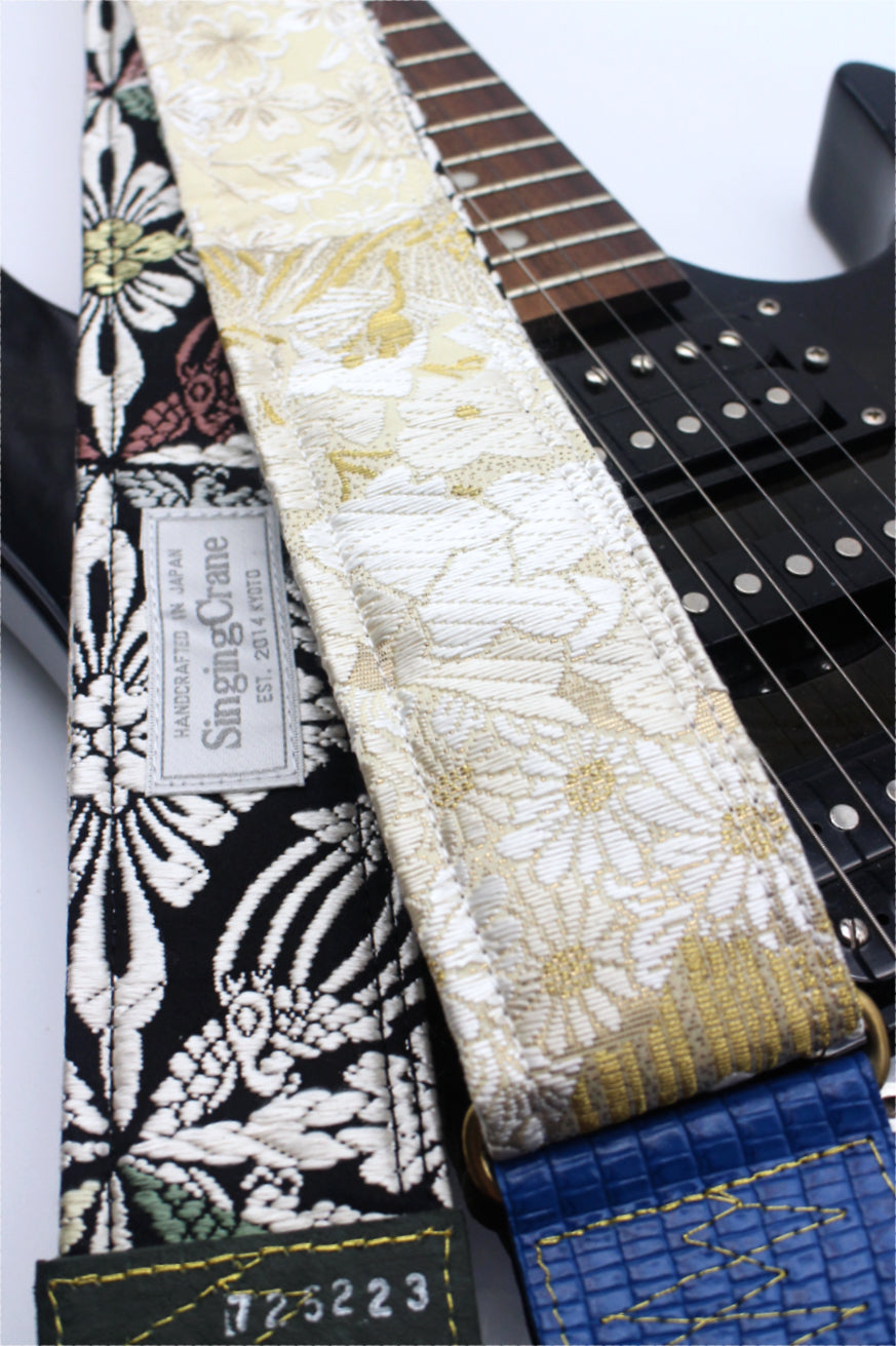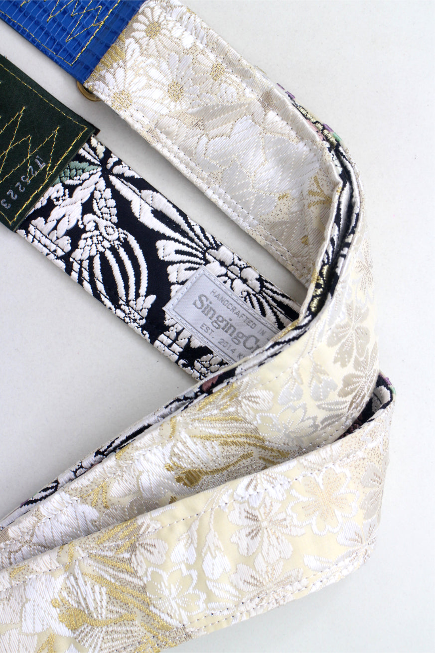 Unique and beautiful guitar strap [SC725223] - hand made in Japan from recycled silk woven kimono obi, leather and brass