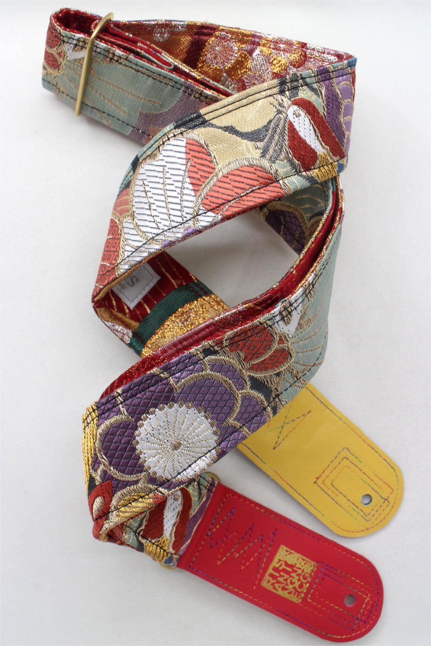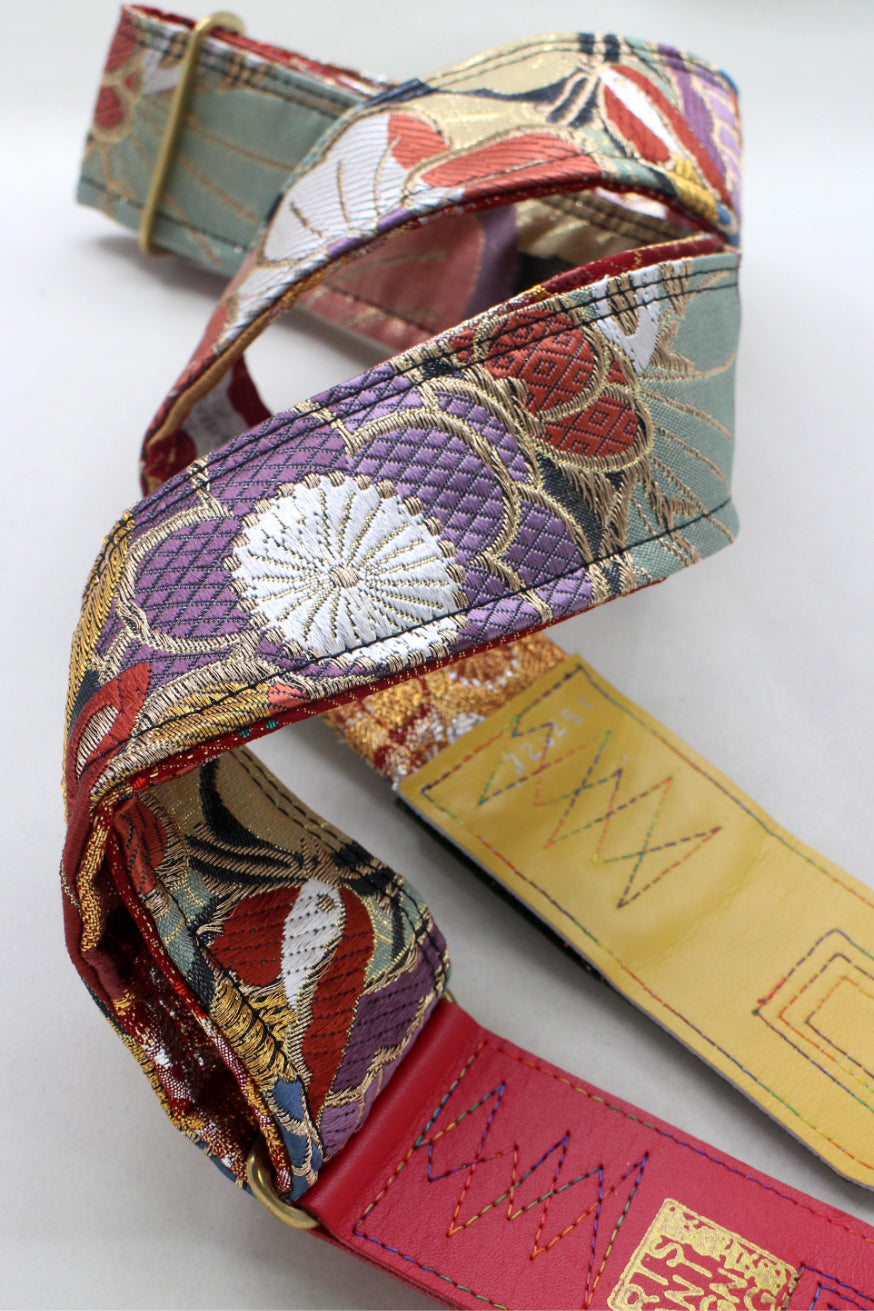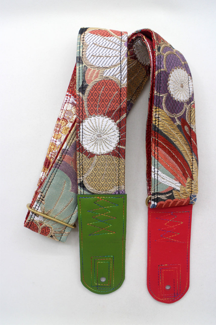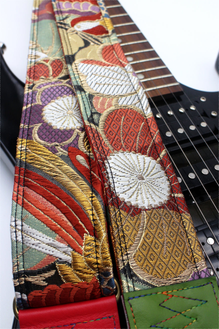 Unique and beautiful guitar strap [SC725251] - hand made in Japan from recycled silk woven kimono obi, leather and brass