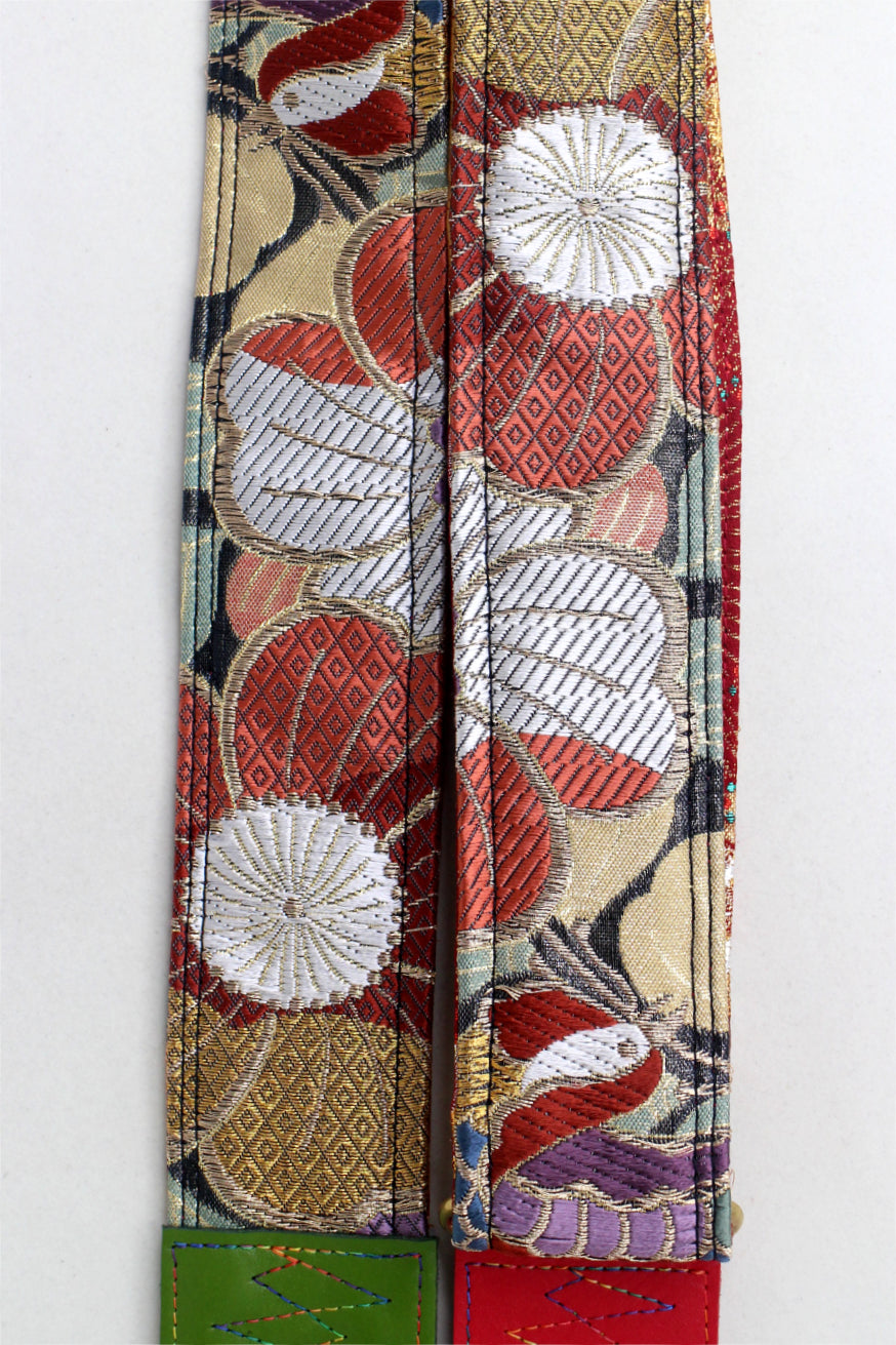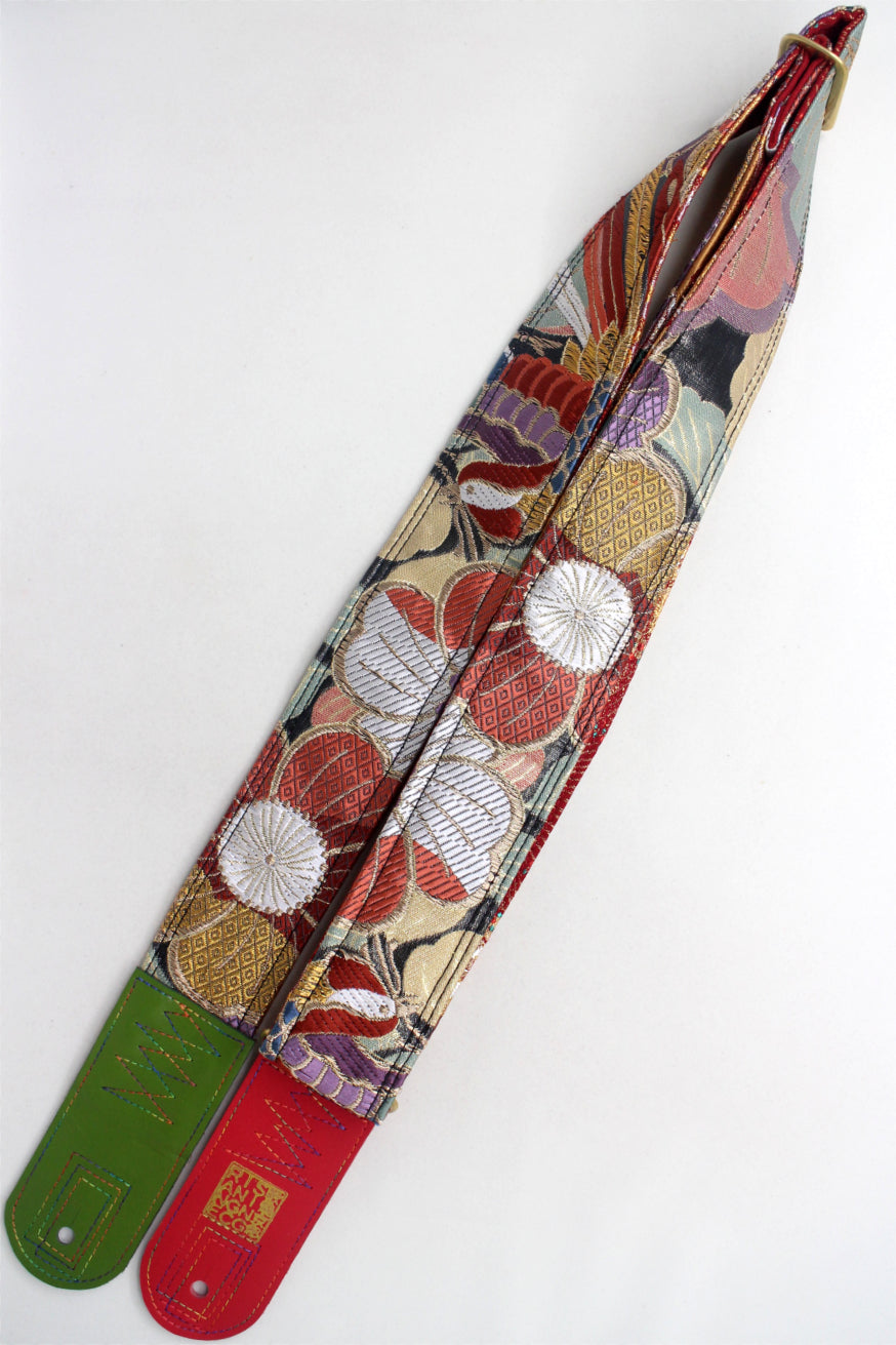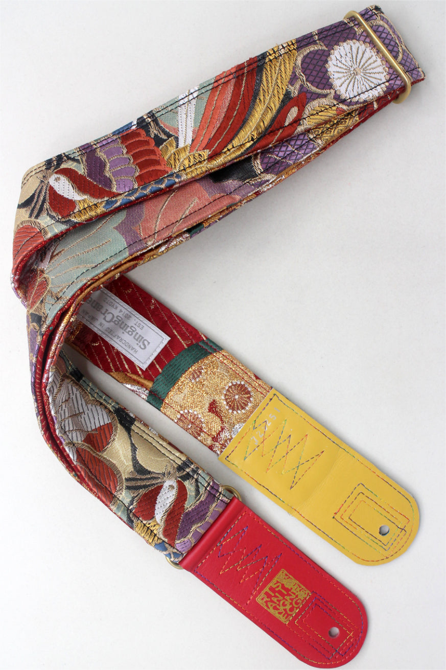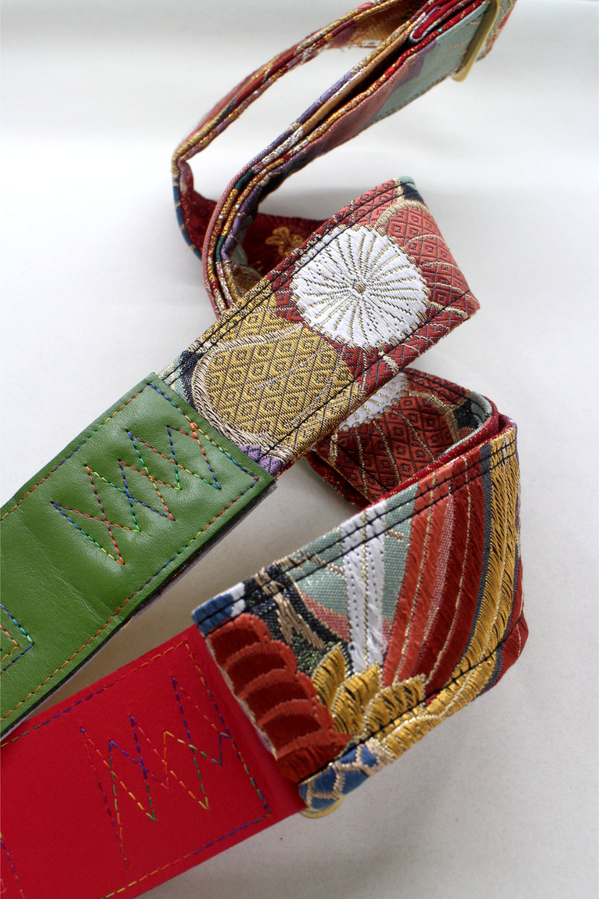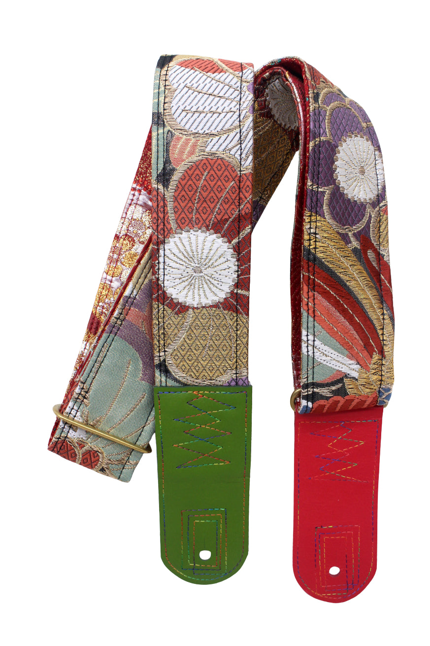 Unique and beautiful guitar strap [SC725251] - hand made in Japan from recycled silk woven kimono obi, leather and brass