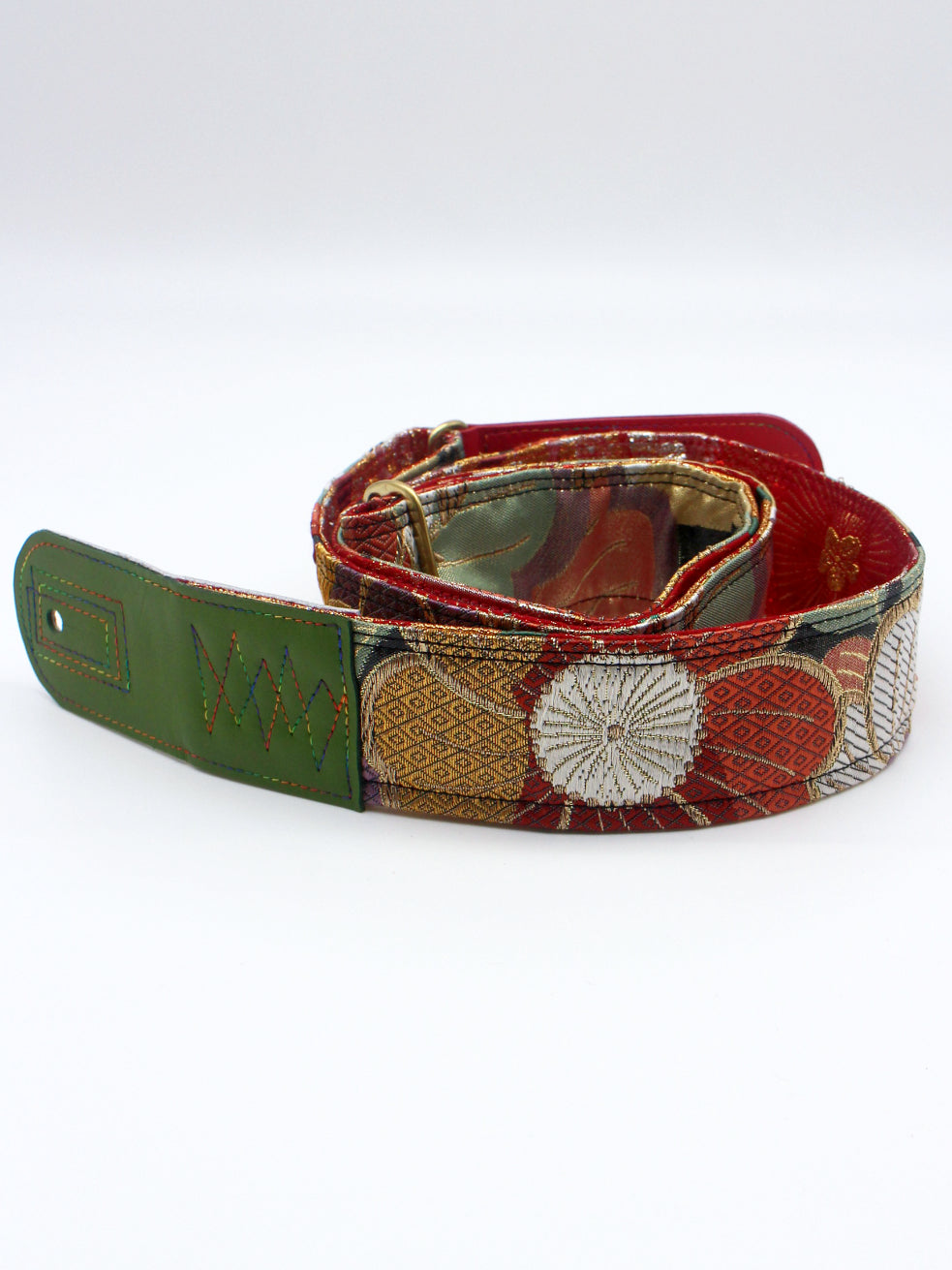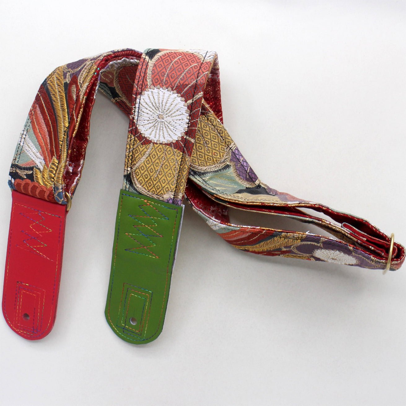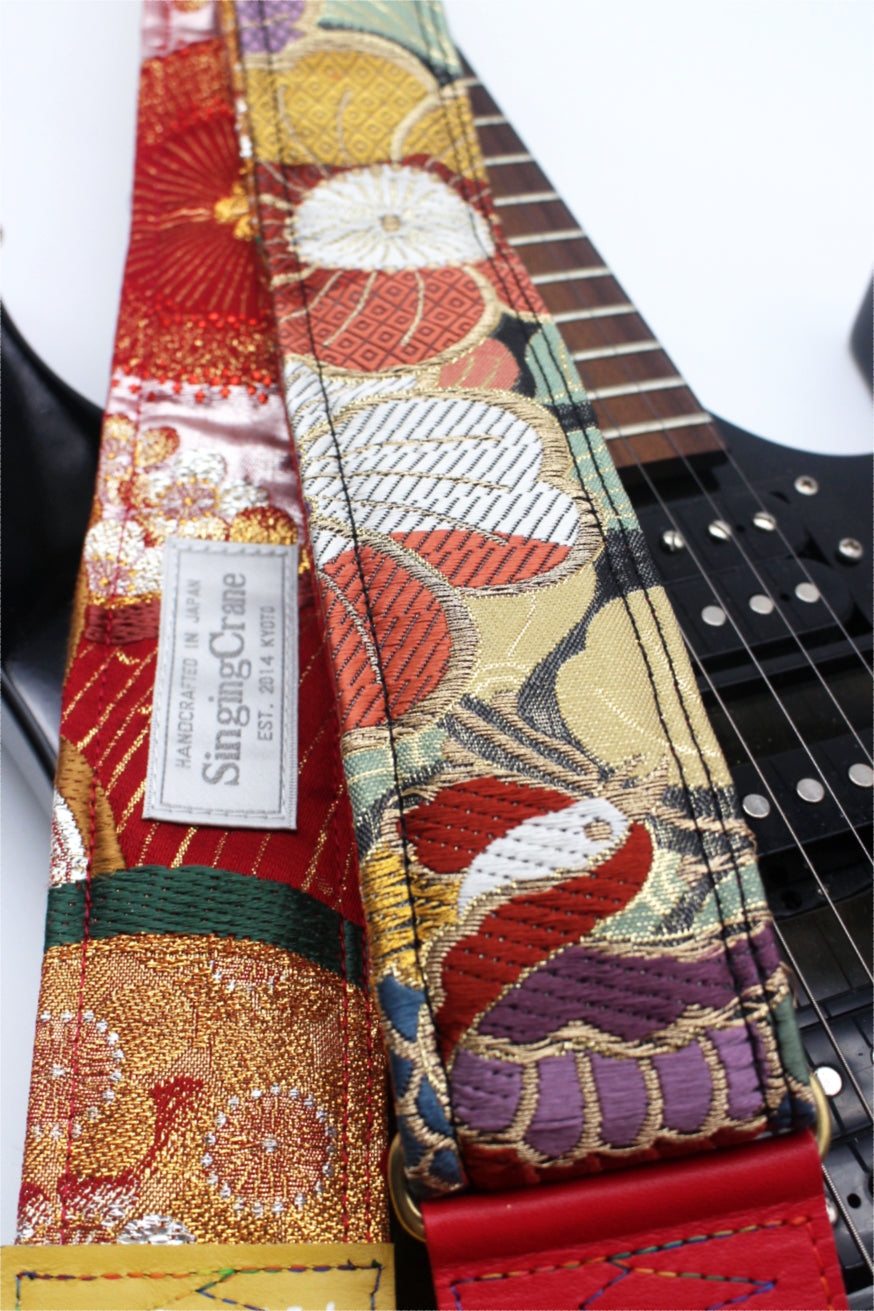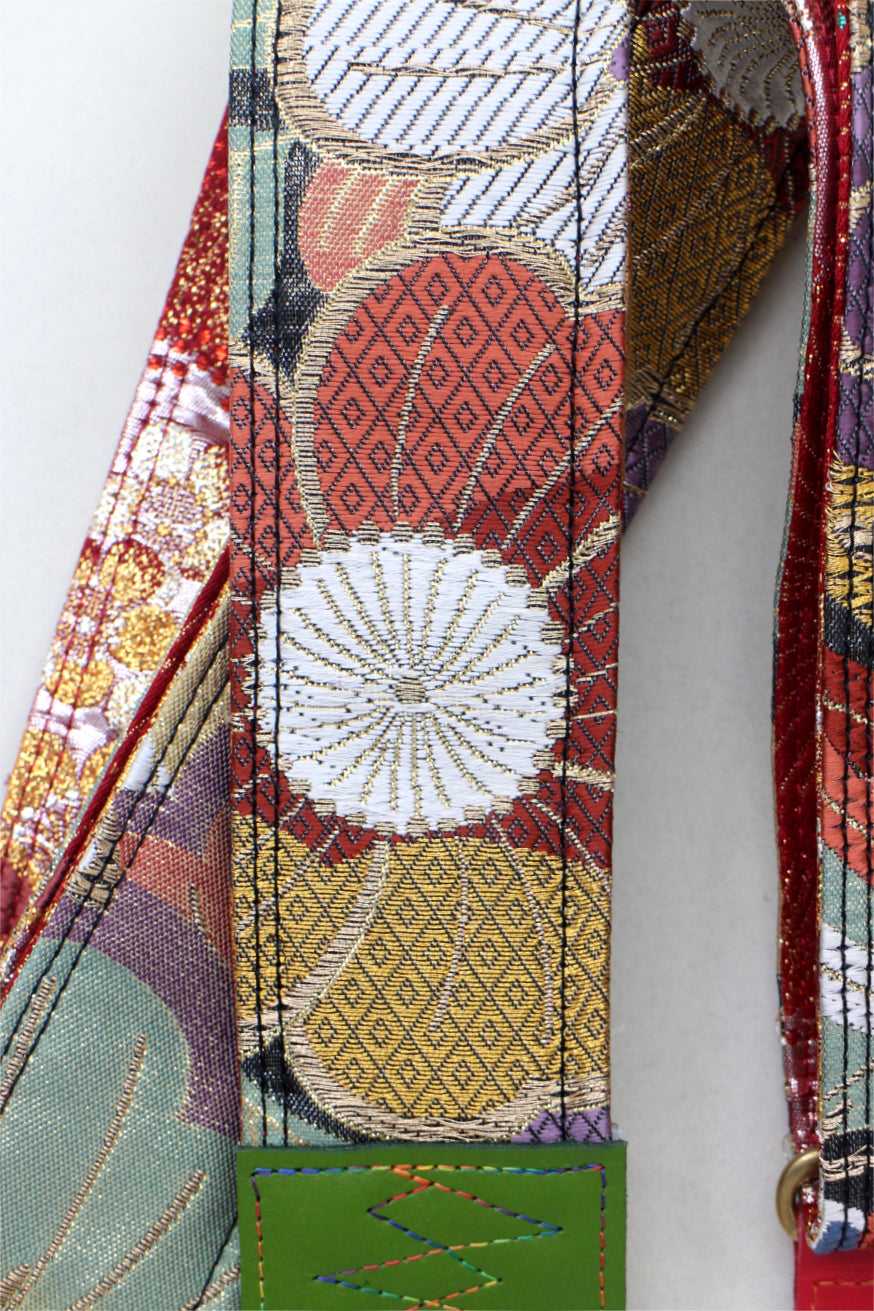 Unique and beautiful guitar strap [SC725251] - hand made in Japan from recycled silk woven kimono obi, leather and brass