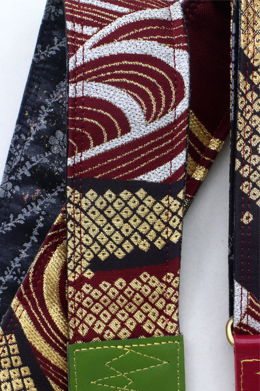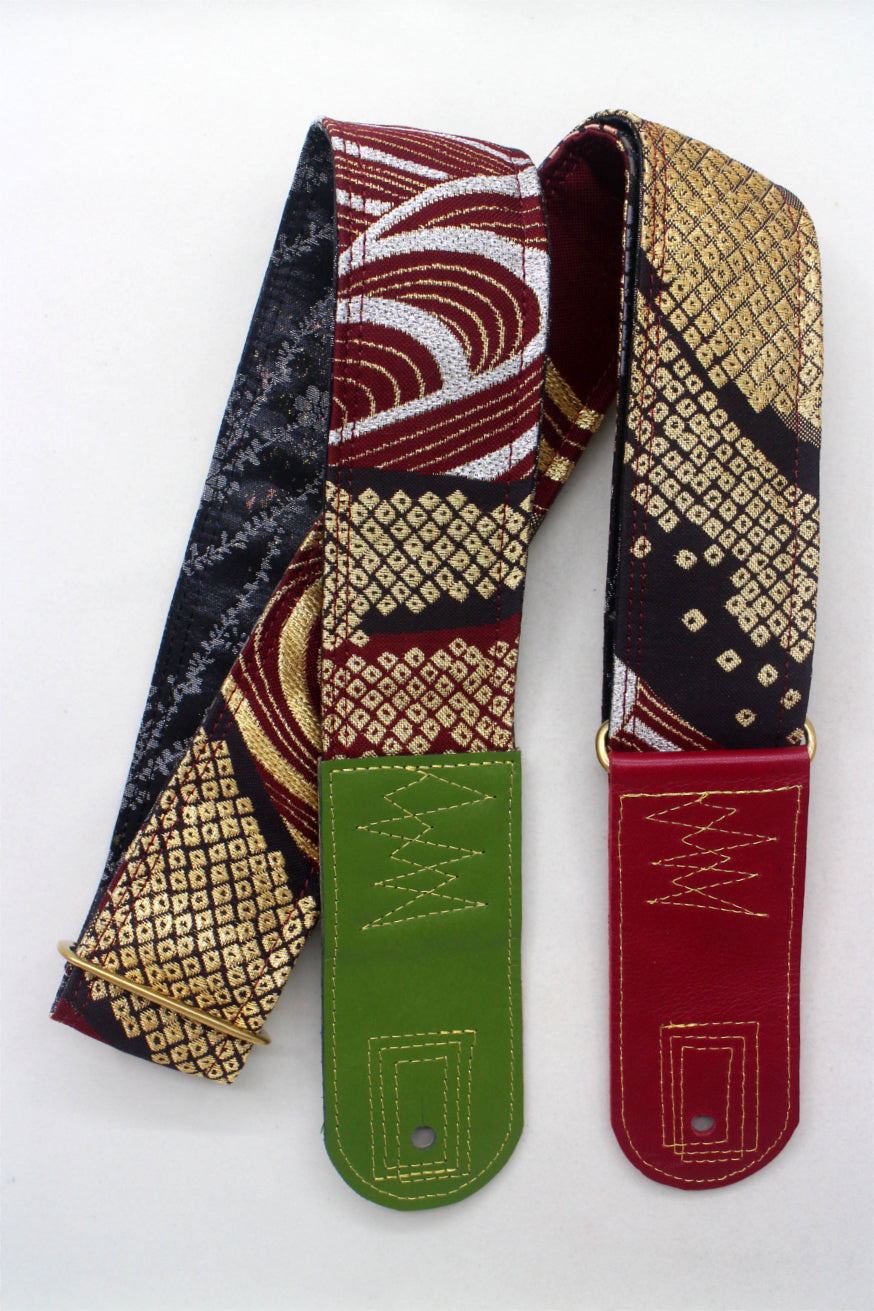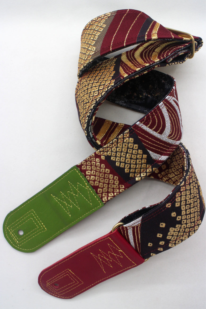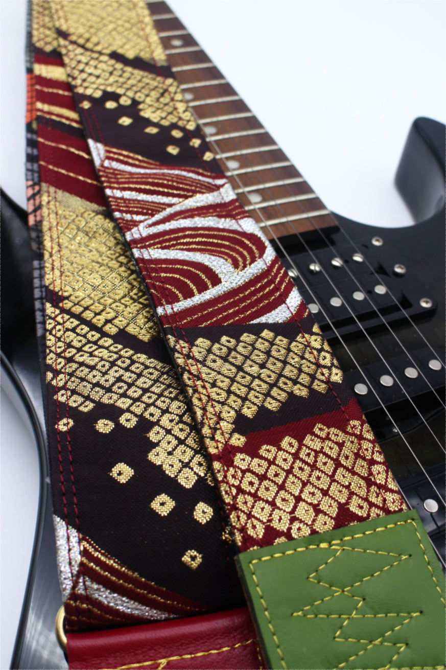 Unique and beautiful guitar strap [SC725272] - hand made in Japan from recycled silk woven kimono obi, leather and brass