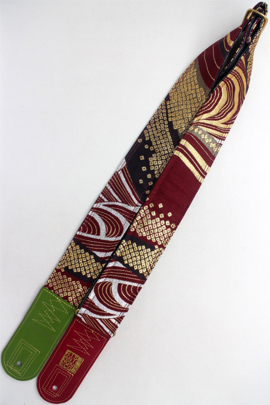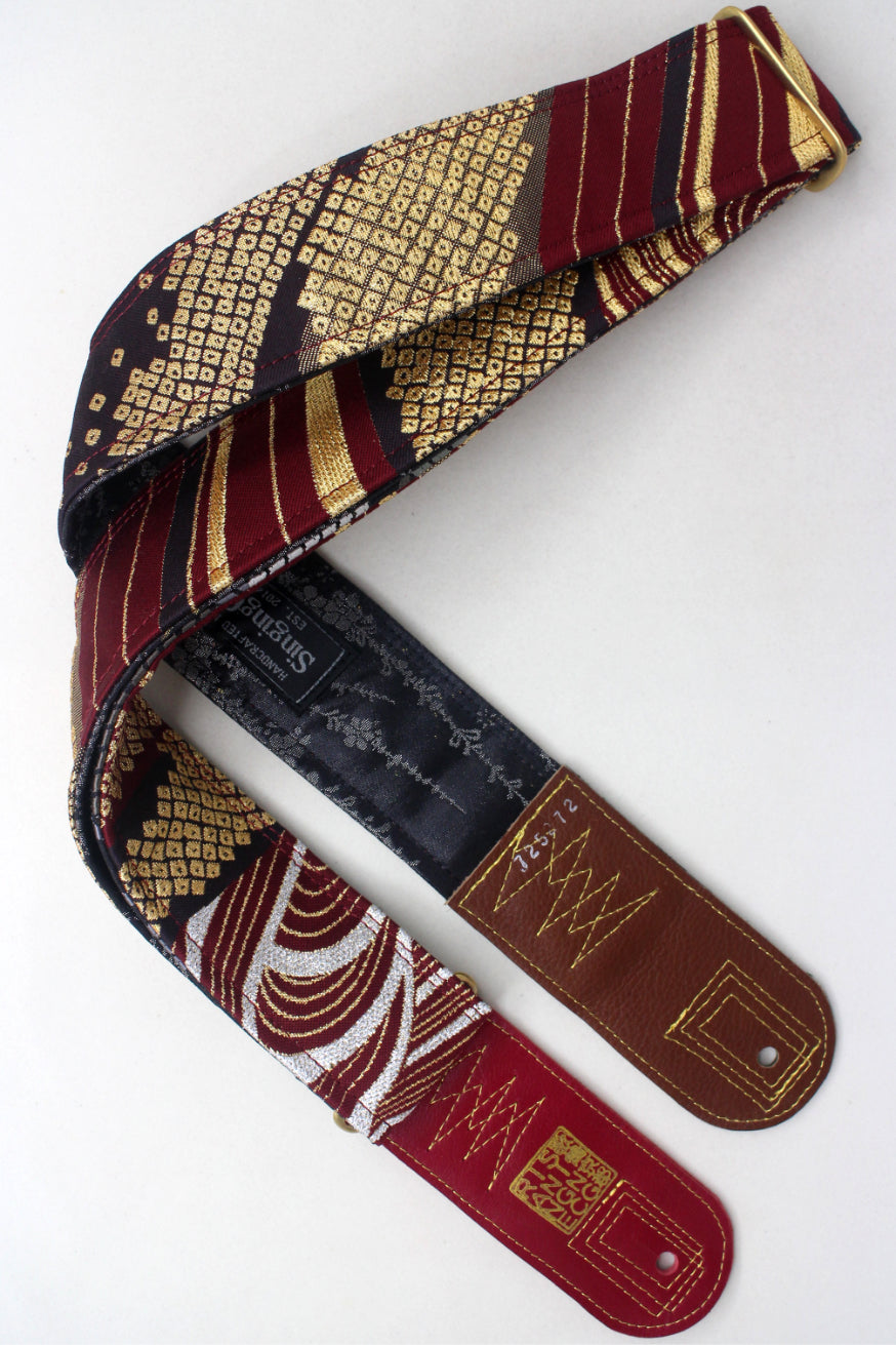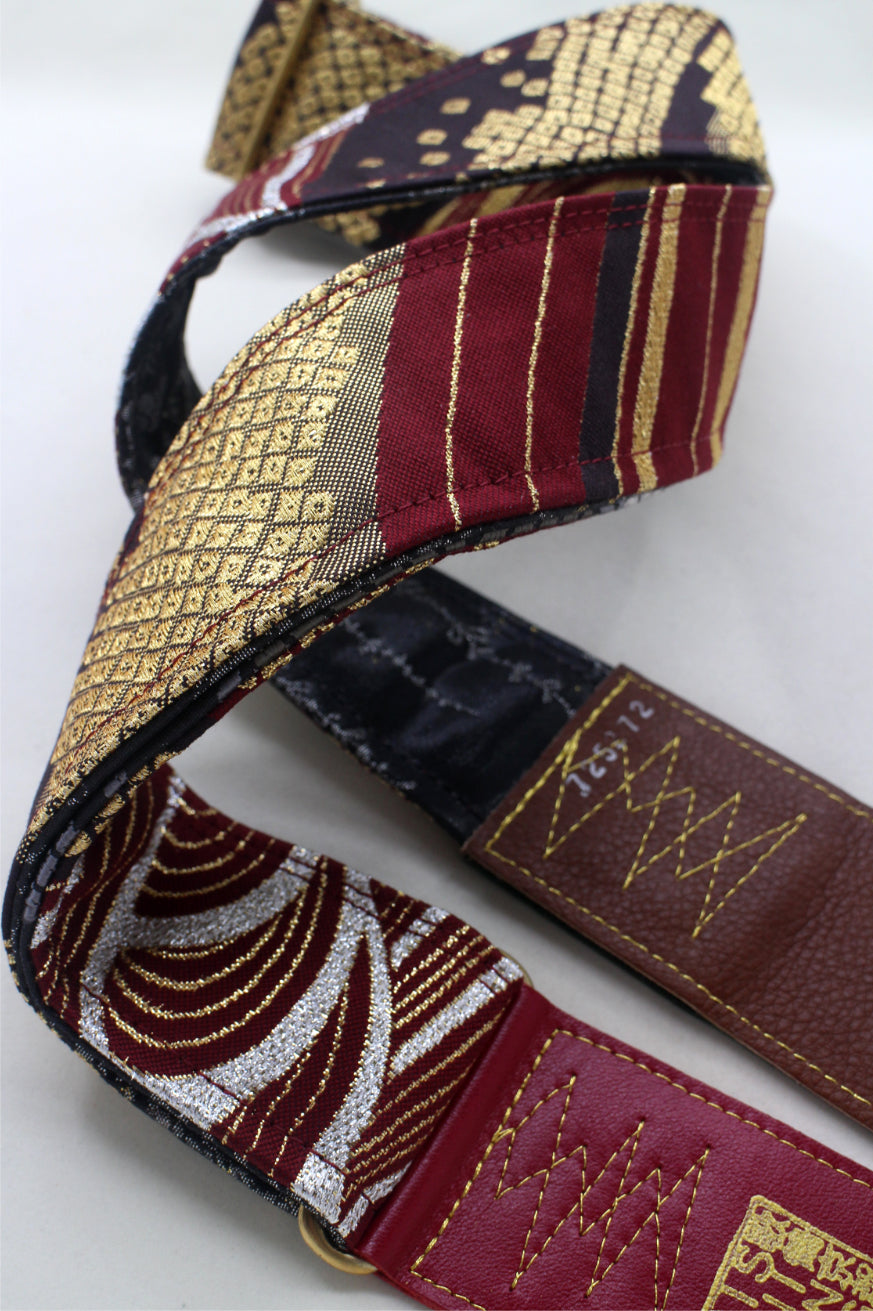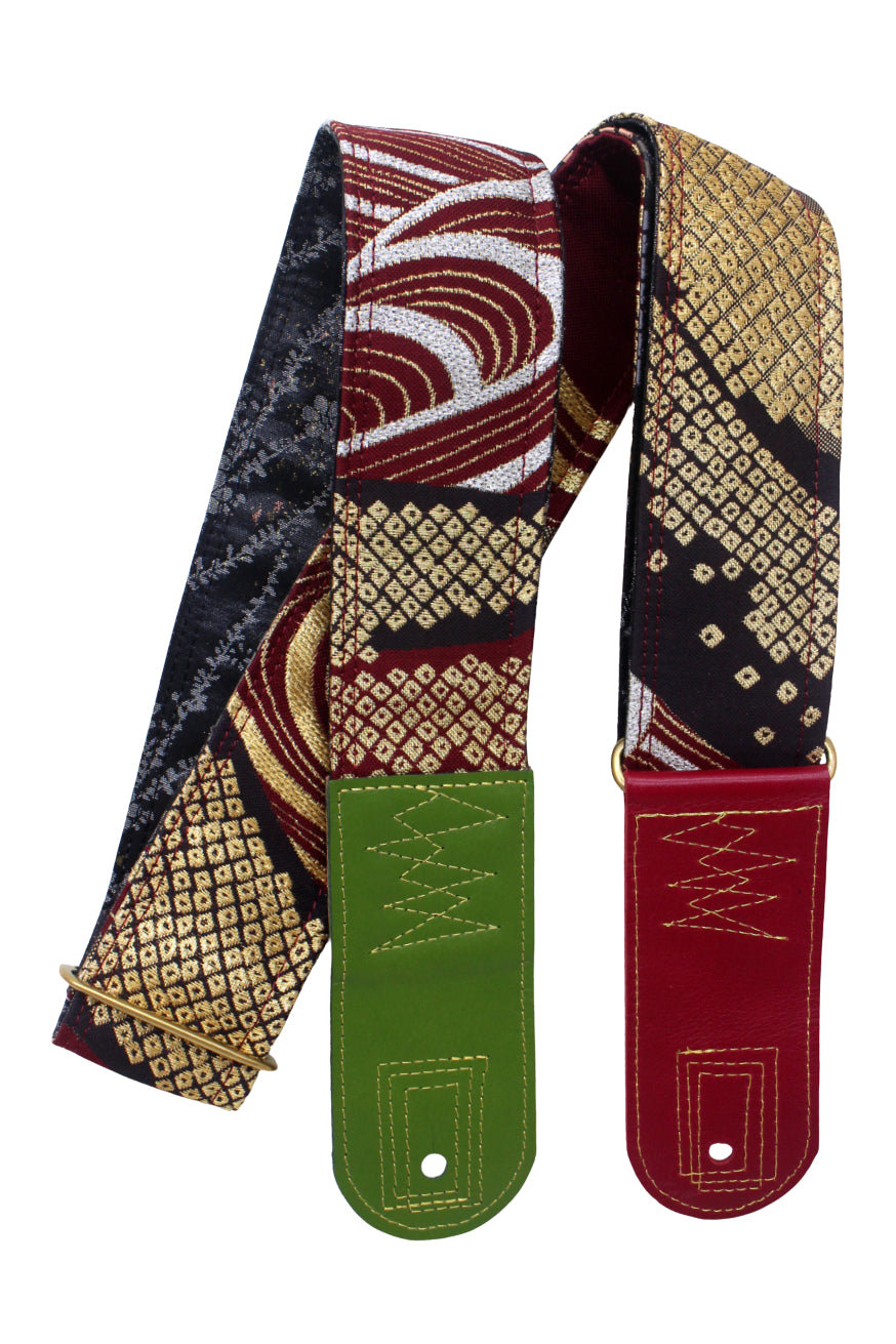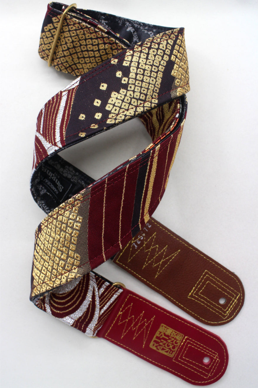 Unique and beautiful guitar strap [SC725272] - hand made in Japan from recycled silk woven kimono obi, leather and brass