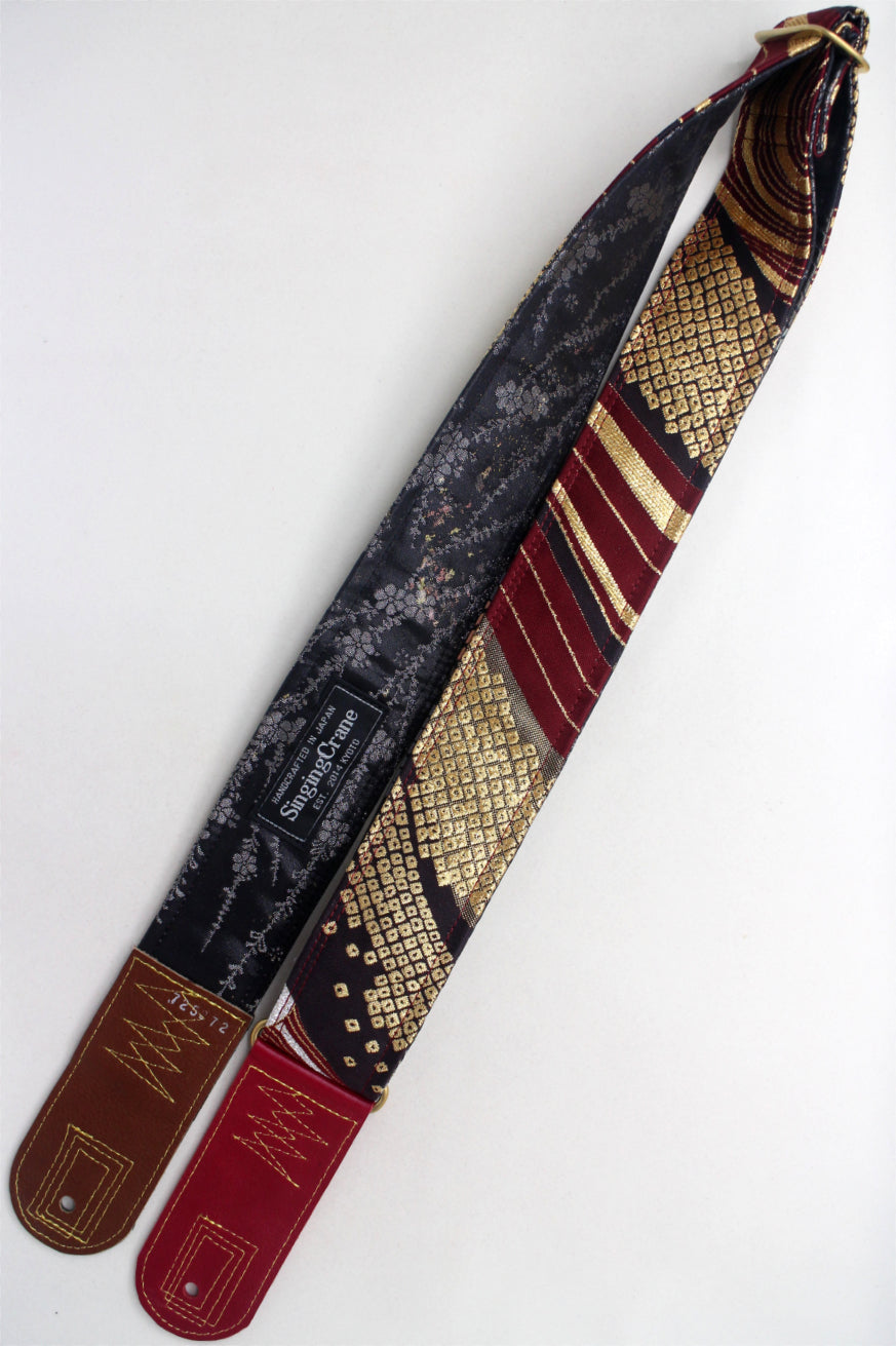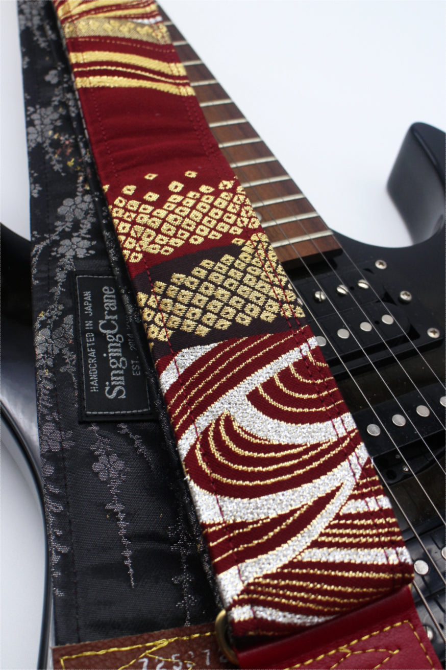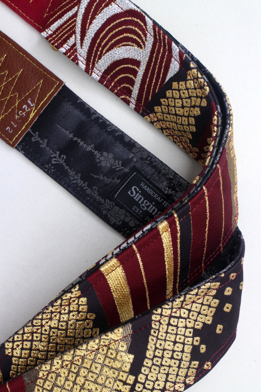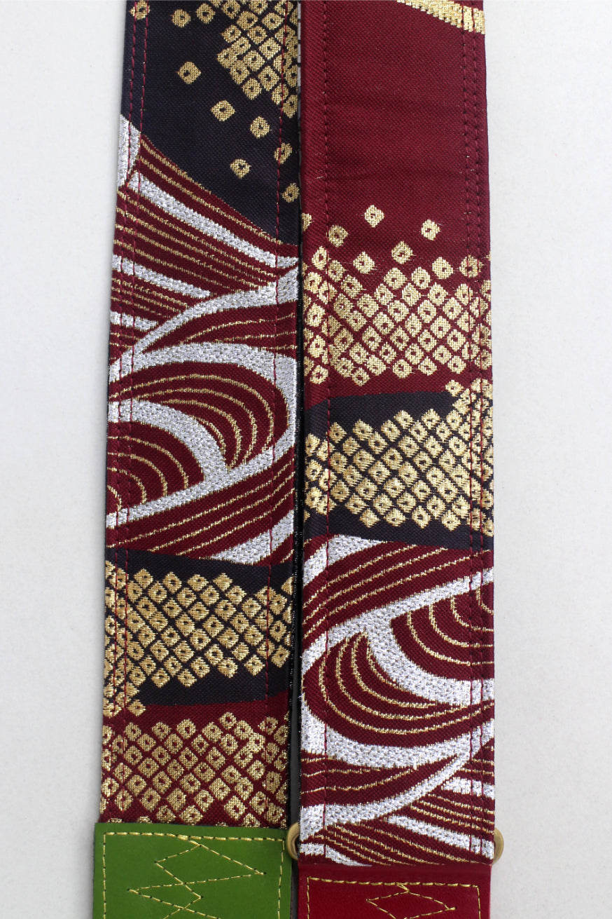 Unique and beautiful guitar strap [SC725272] - hand made in Japan from recycled silk woven kimono obi, leather and brass