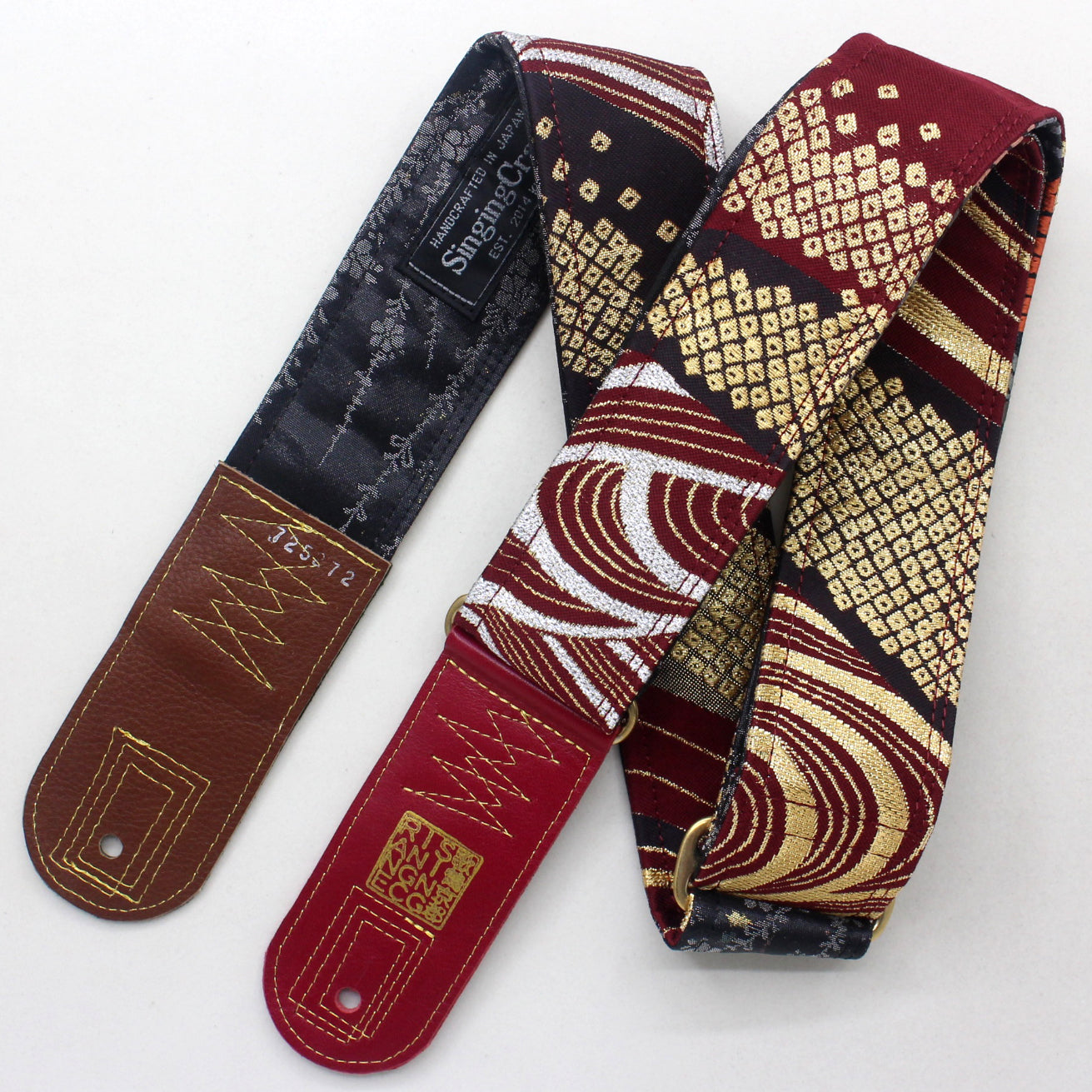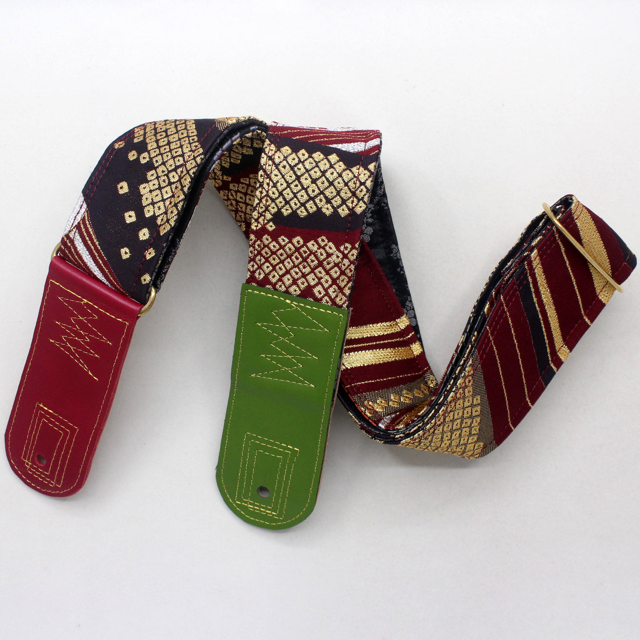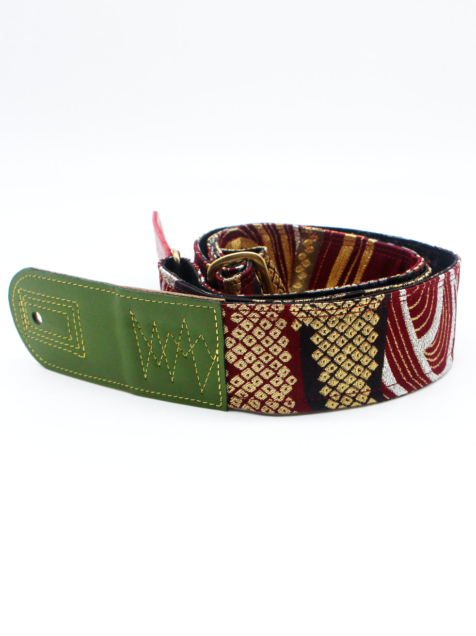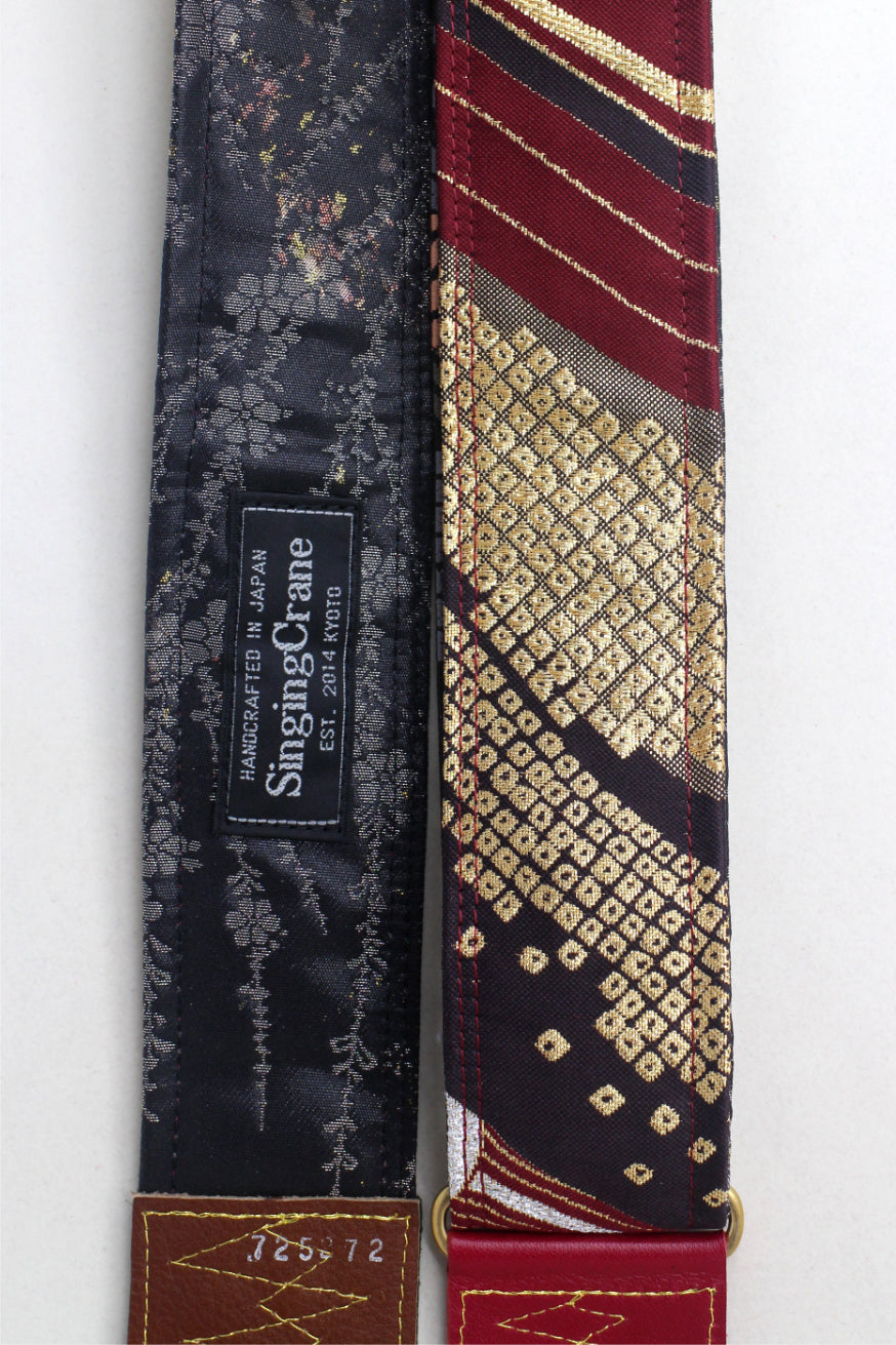Unique and beautiful guitar strap [SC725272] - hand made in Japan from recycled silk woven kimono obi, leather and brass
