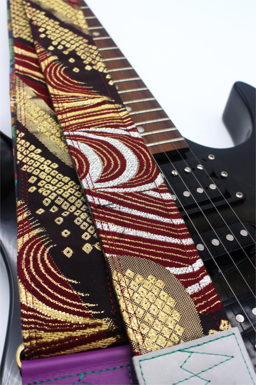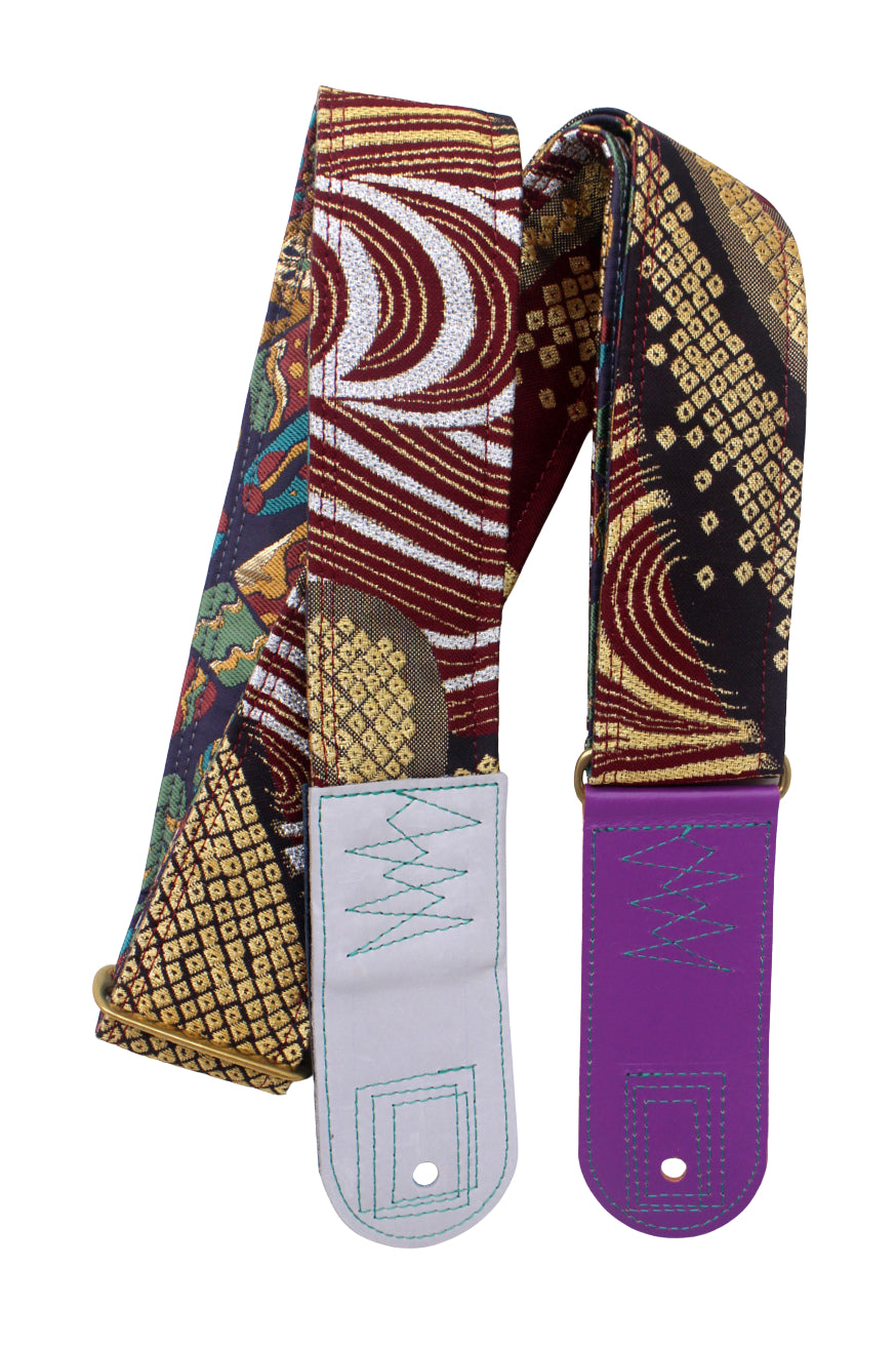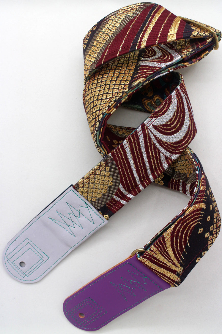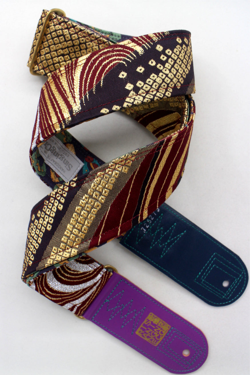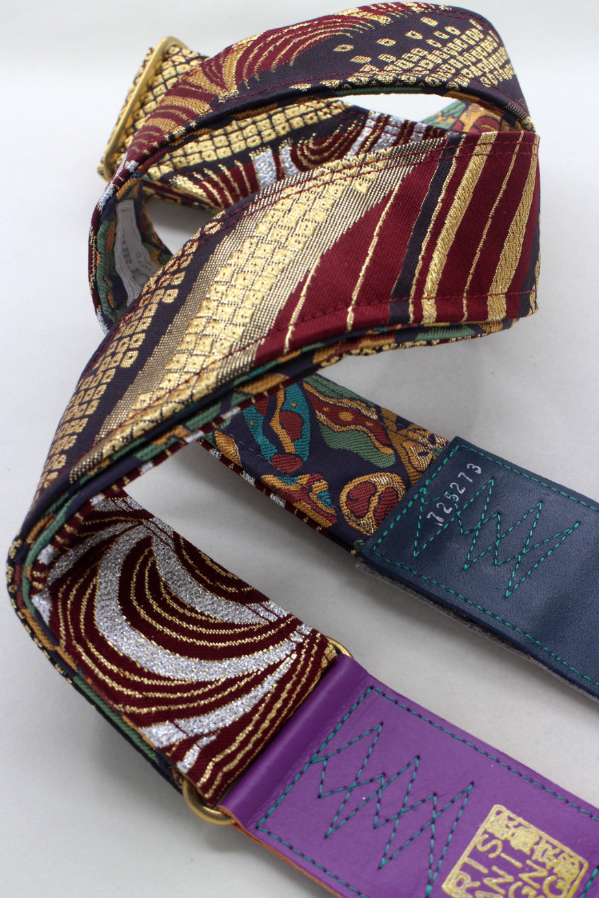 Unique and beautiful guitar strap [SC725273] - hand made in Japan from recycled silk woven kimono obi, leather and brass