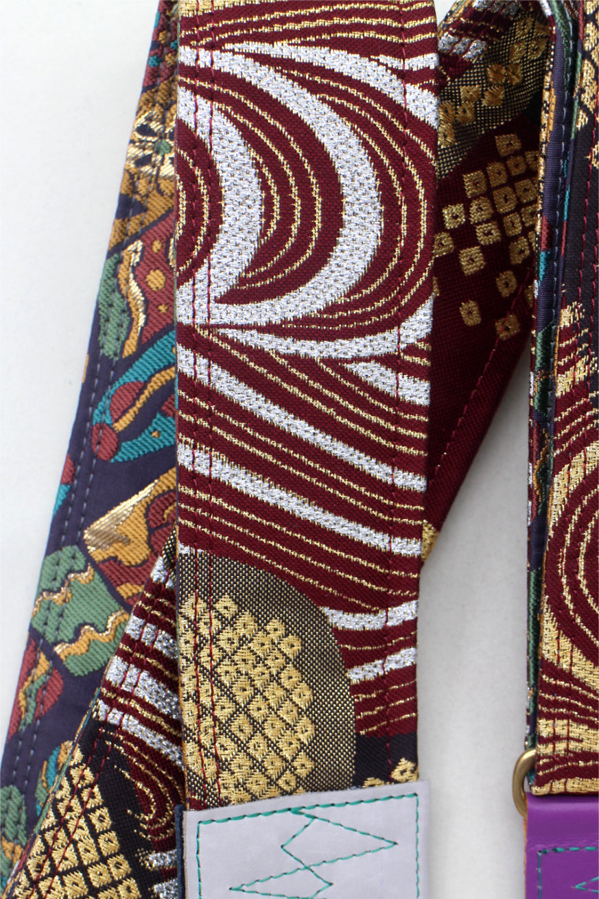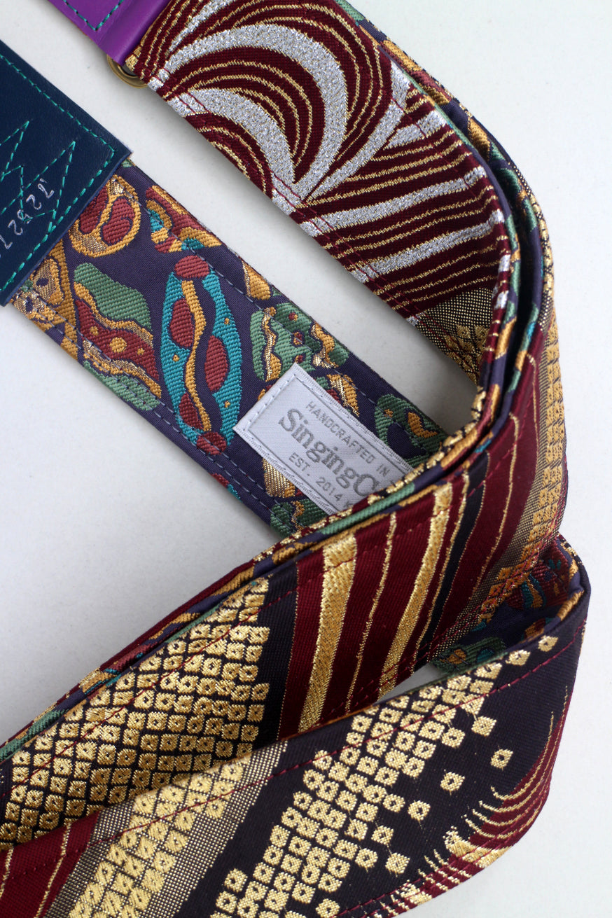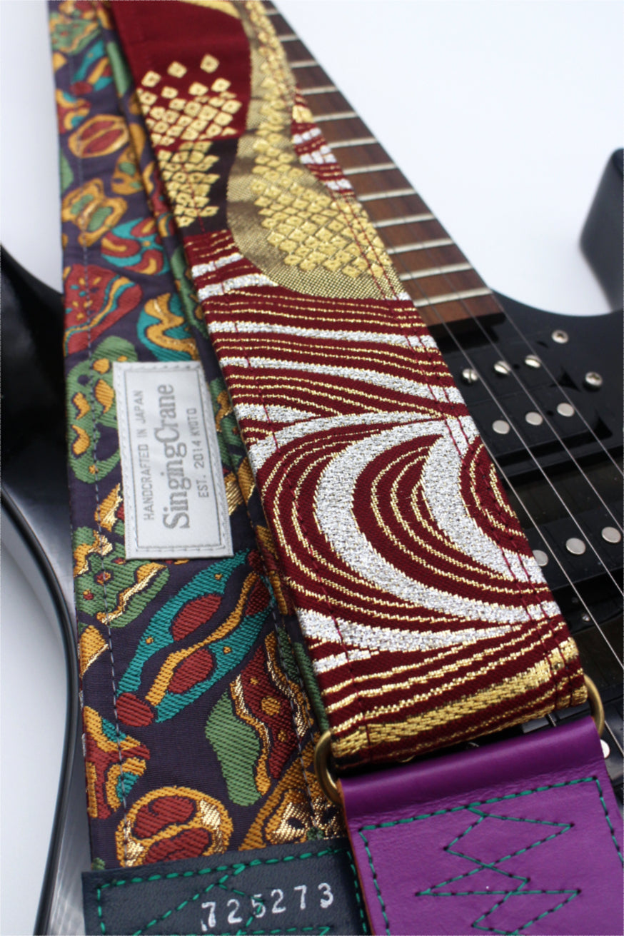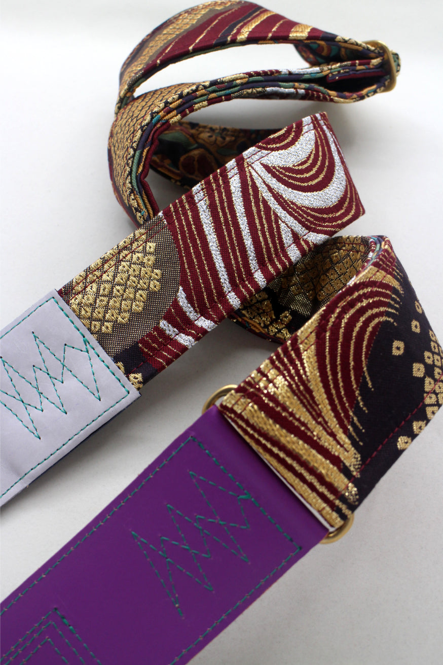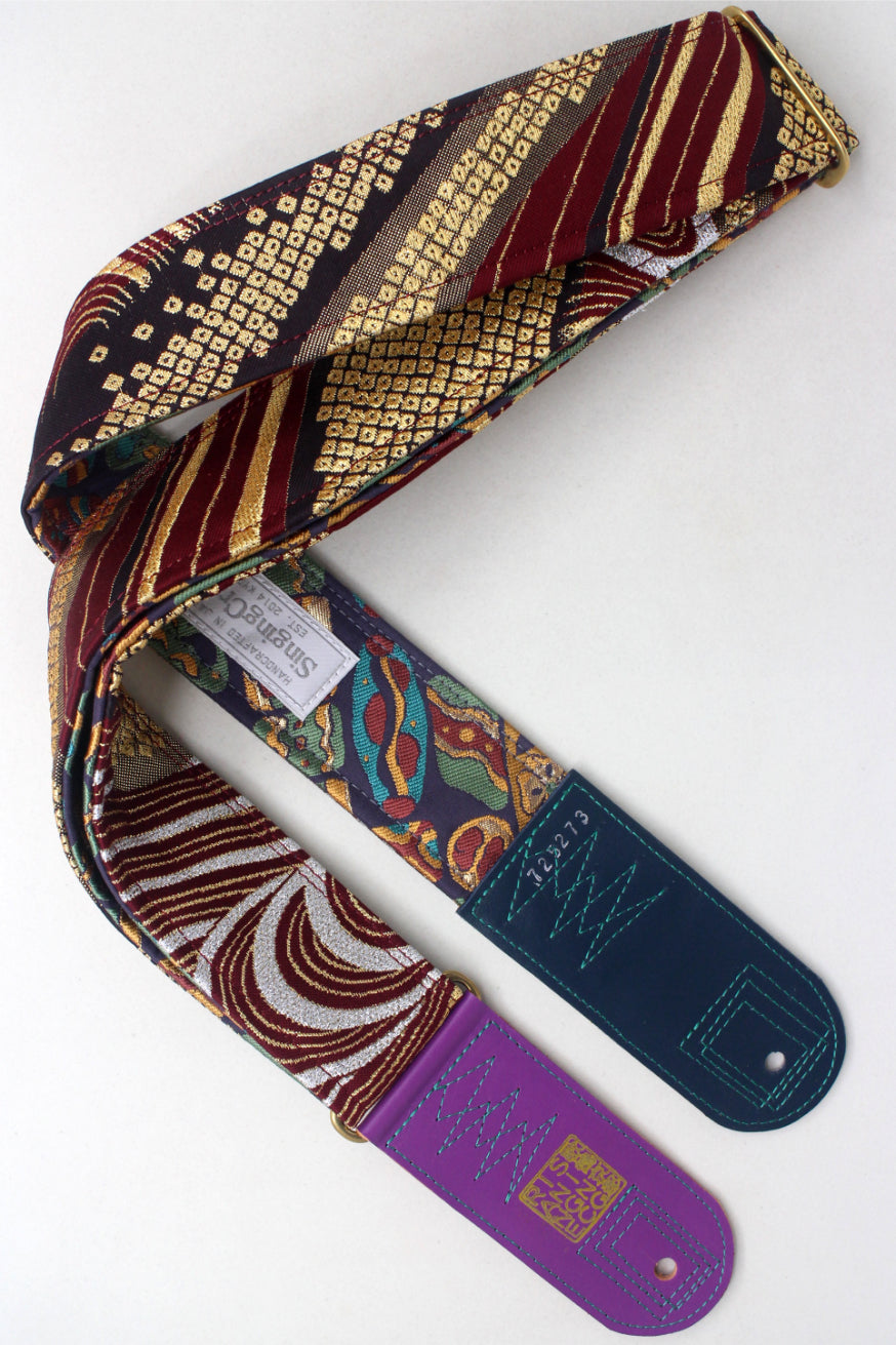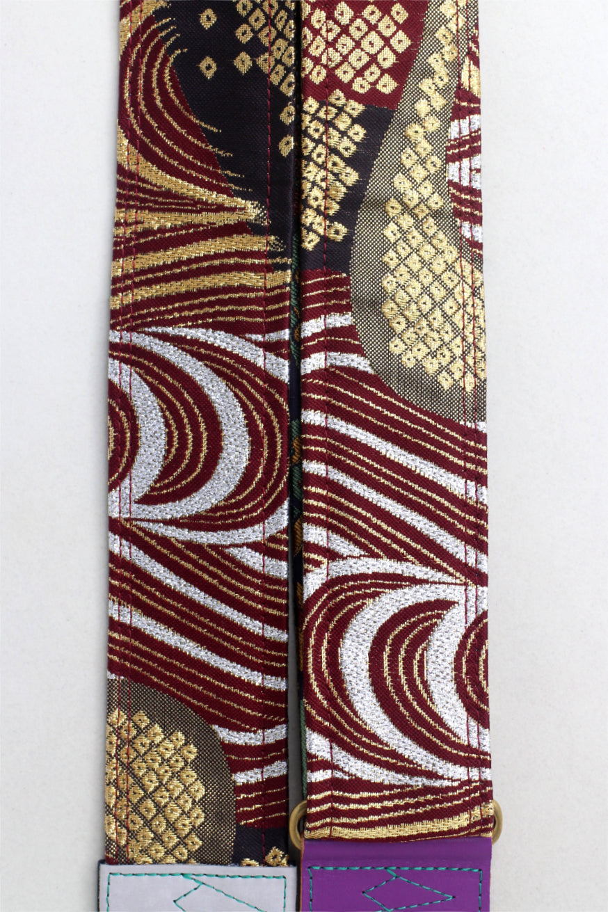 Unique and beautiful guitar strap [SC725273] - hand made in Japan from recycled silk woven kimono obi, leather and brass