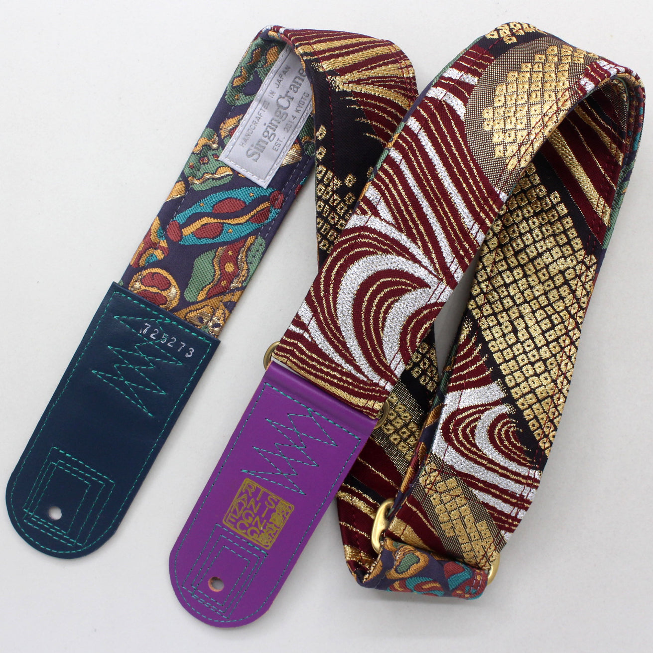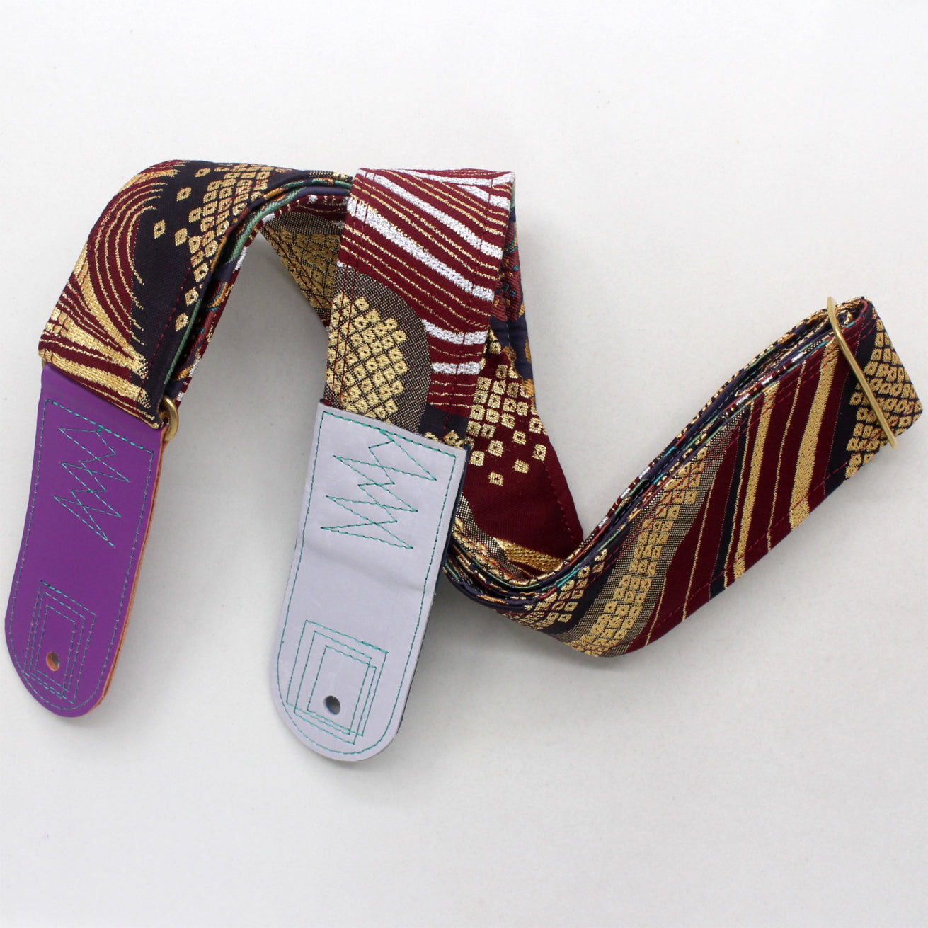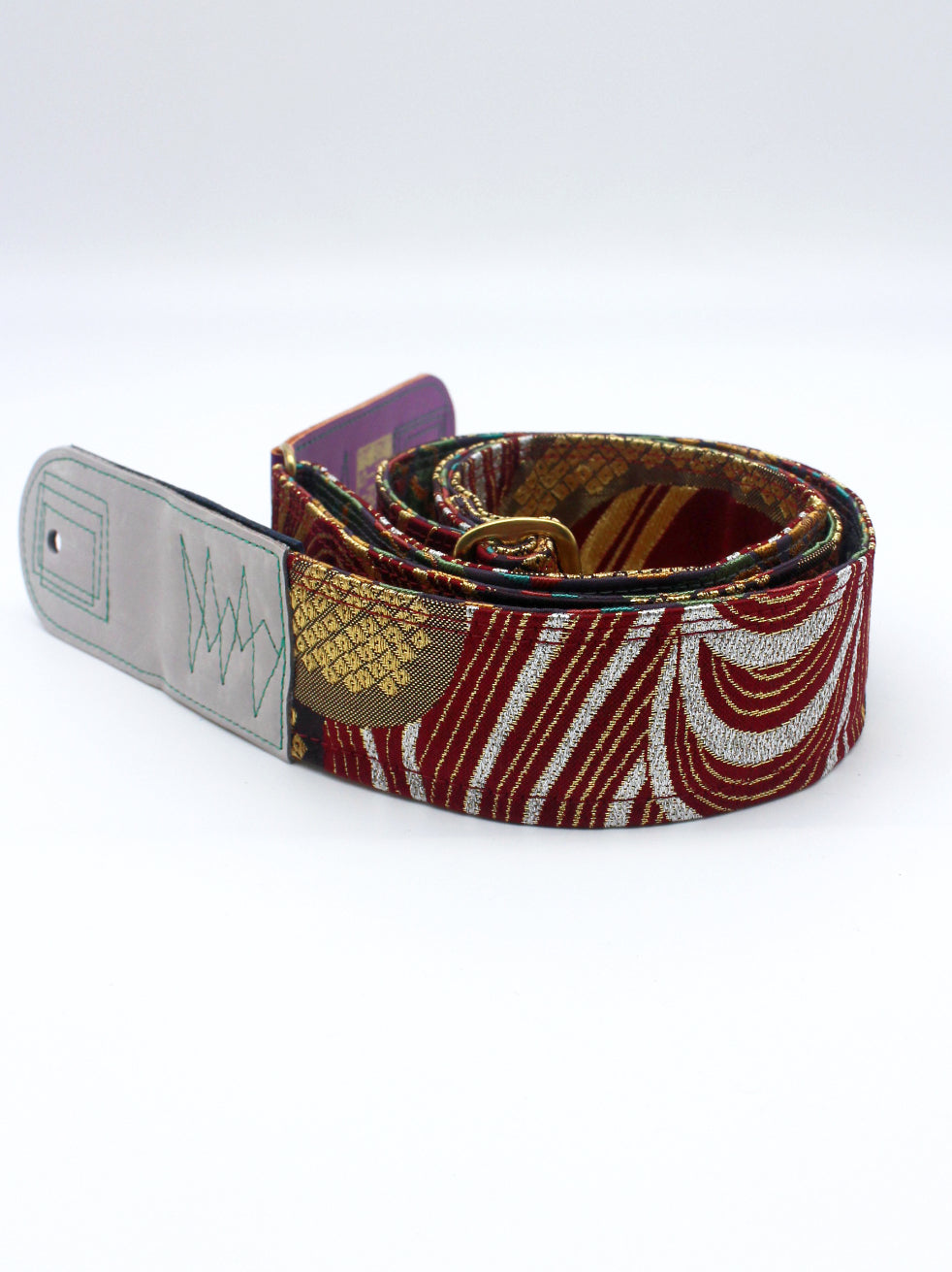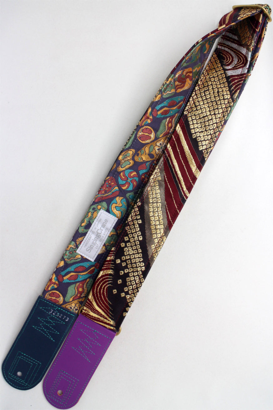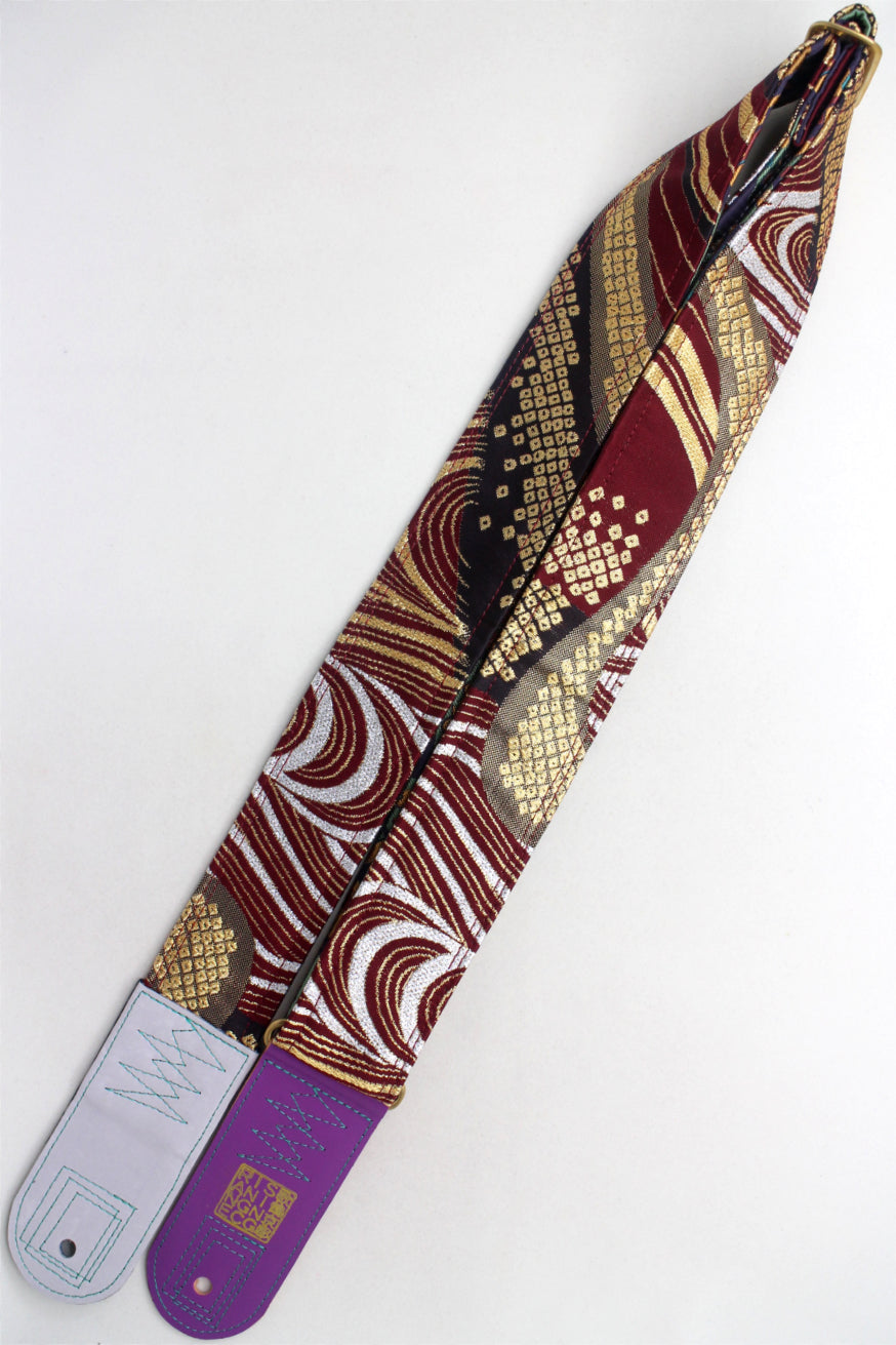 Unique and beautiful guitar strap [SC725273] - hand made in Japan from recycled silk woven kimono obi, leather and brass