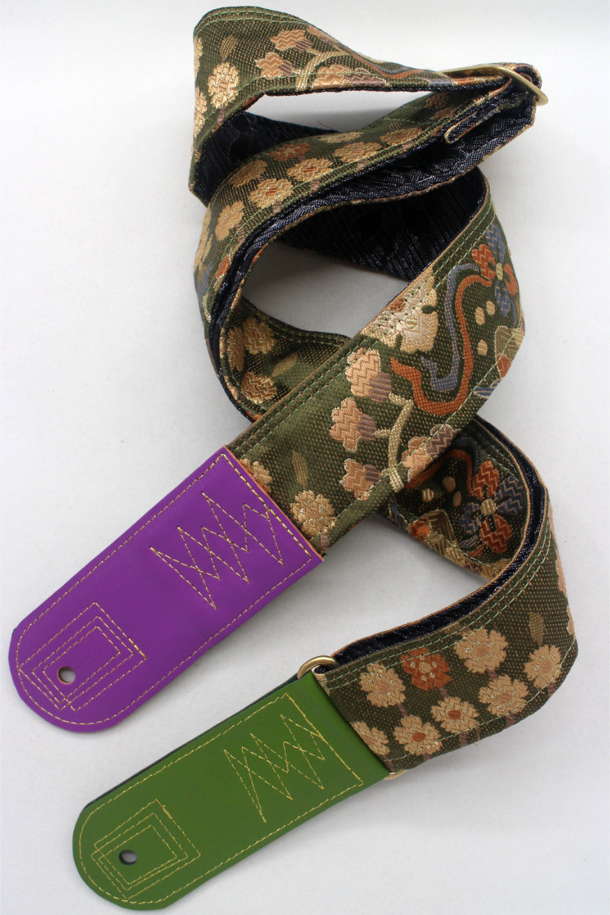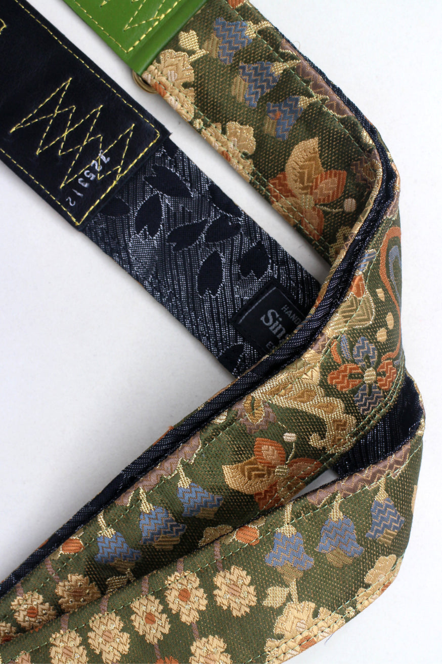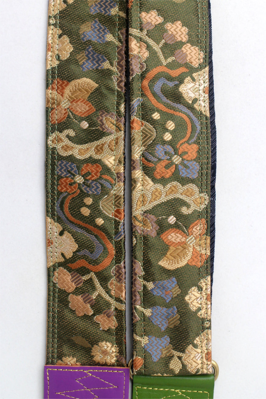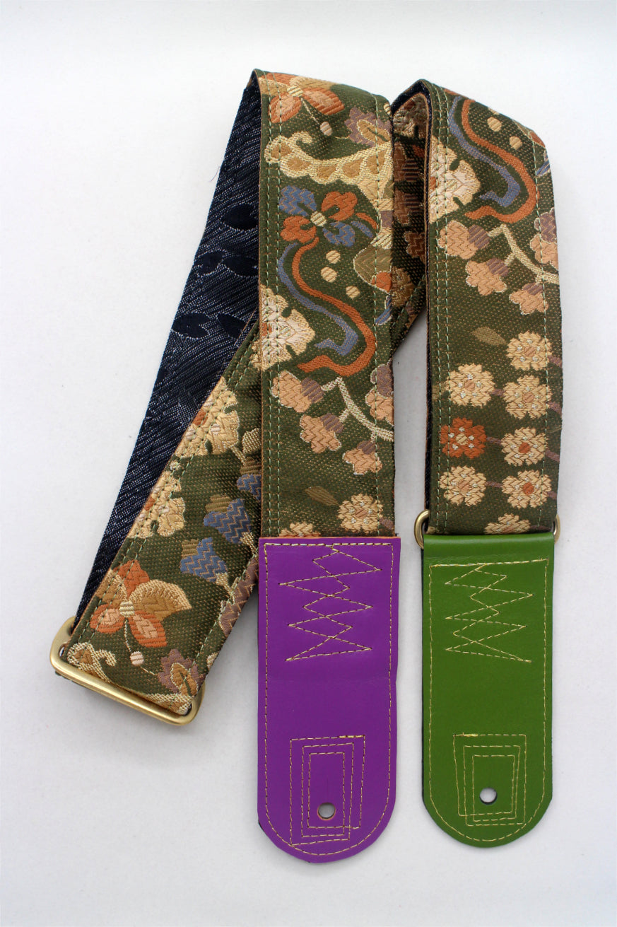 Unique and beautiful guitar strap [SC725312] - hand made in Japan from recycled silk woven kimono obi, leather and brass