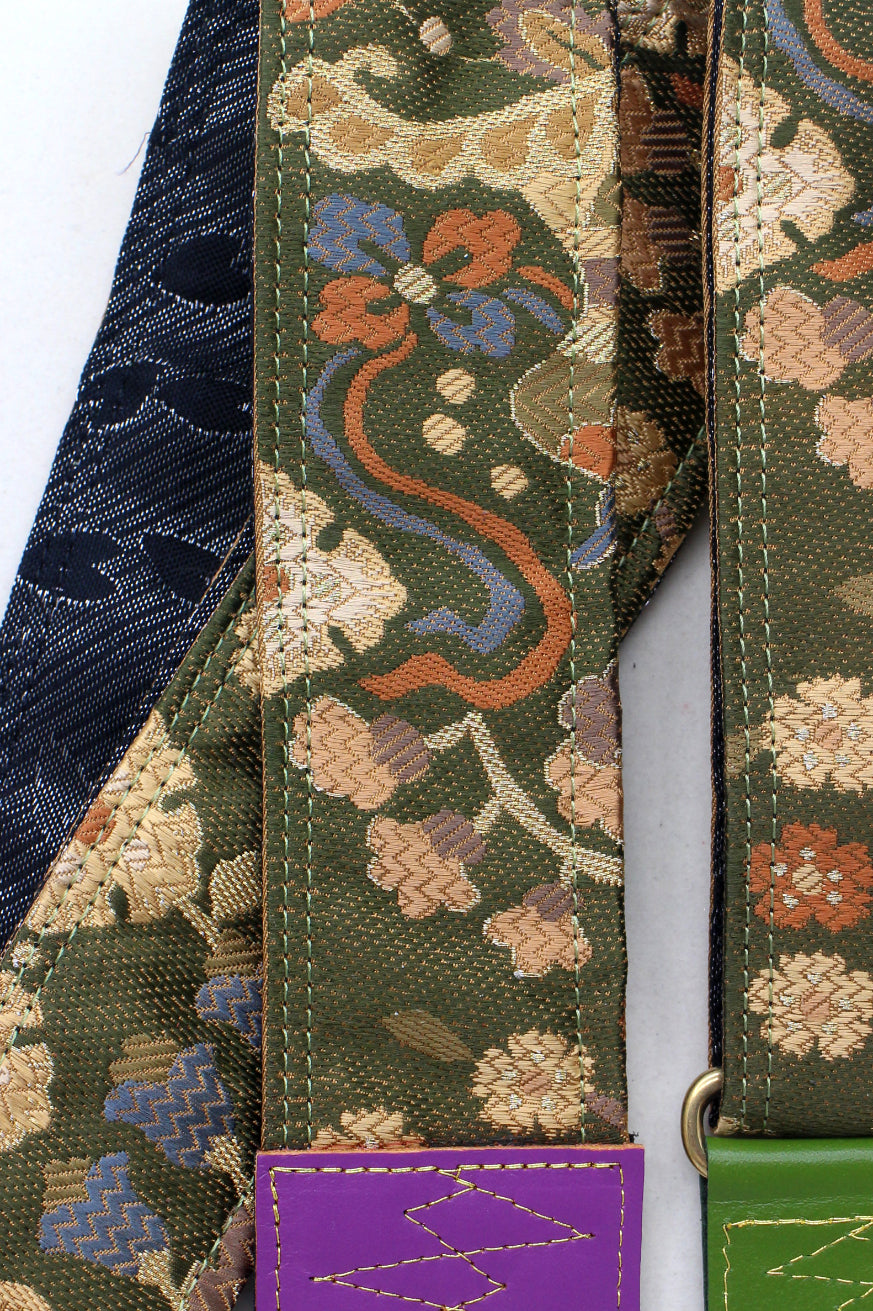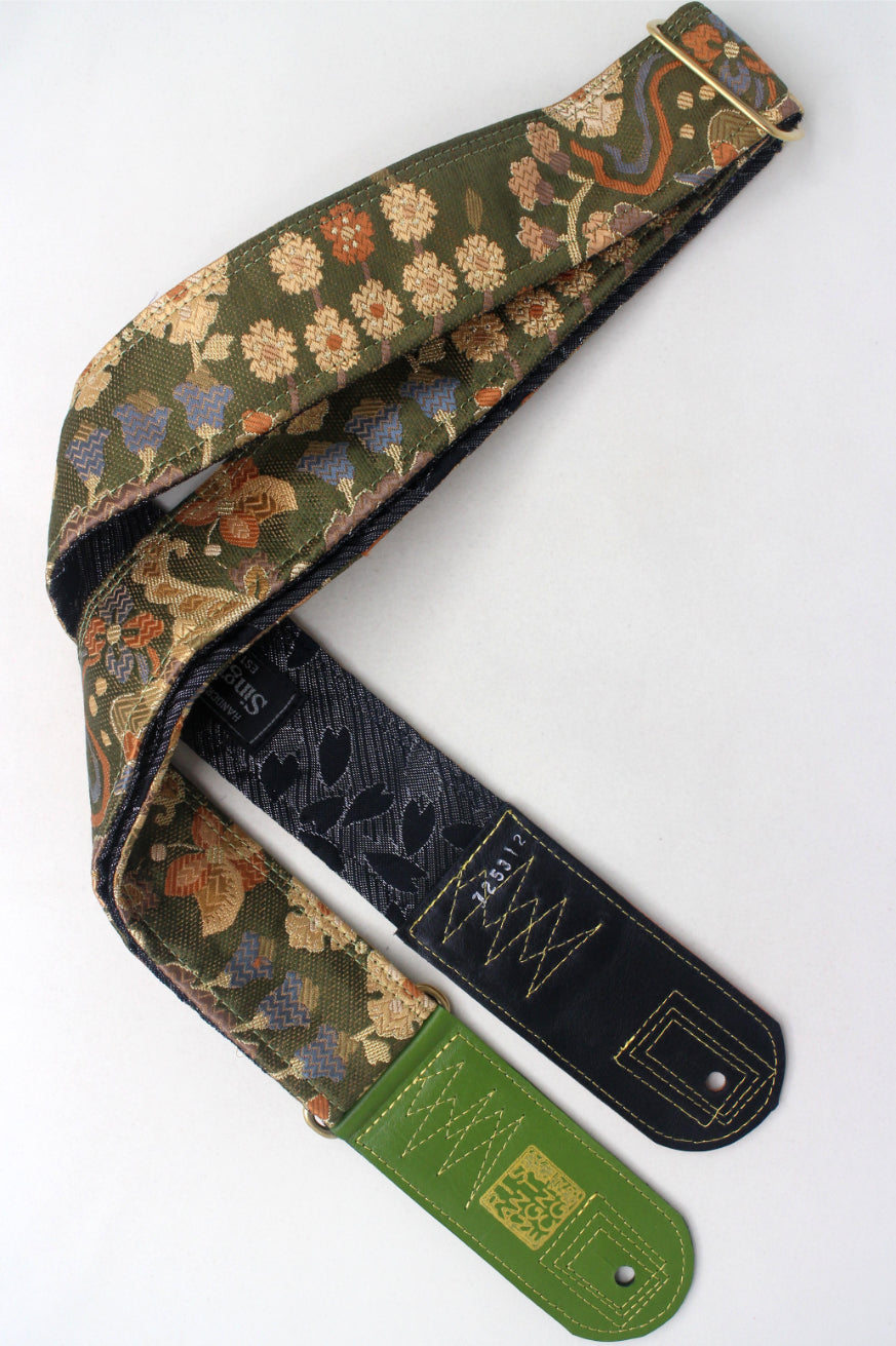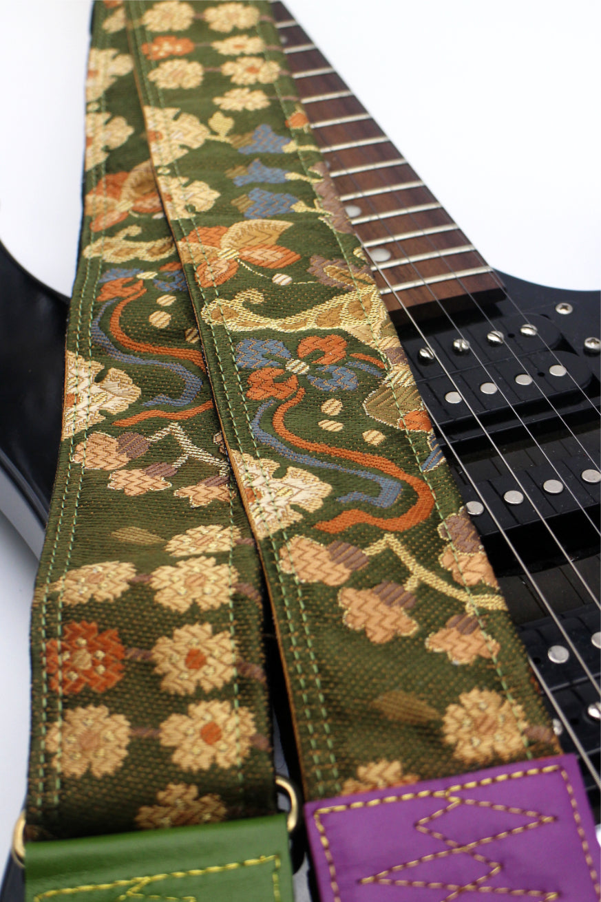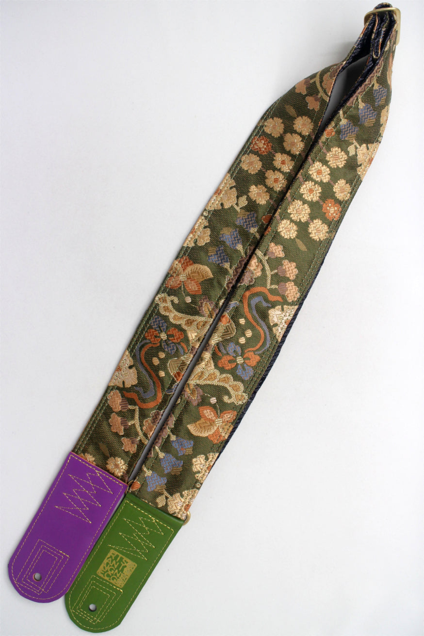 Unique and beautiful guitar strap [SC725312] - hand made in Japan from recycled silk woven kimono obi, leather and brass