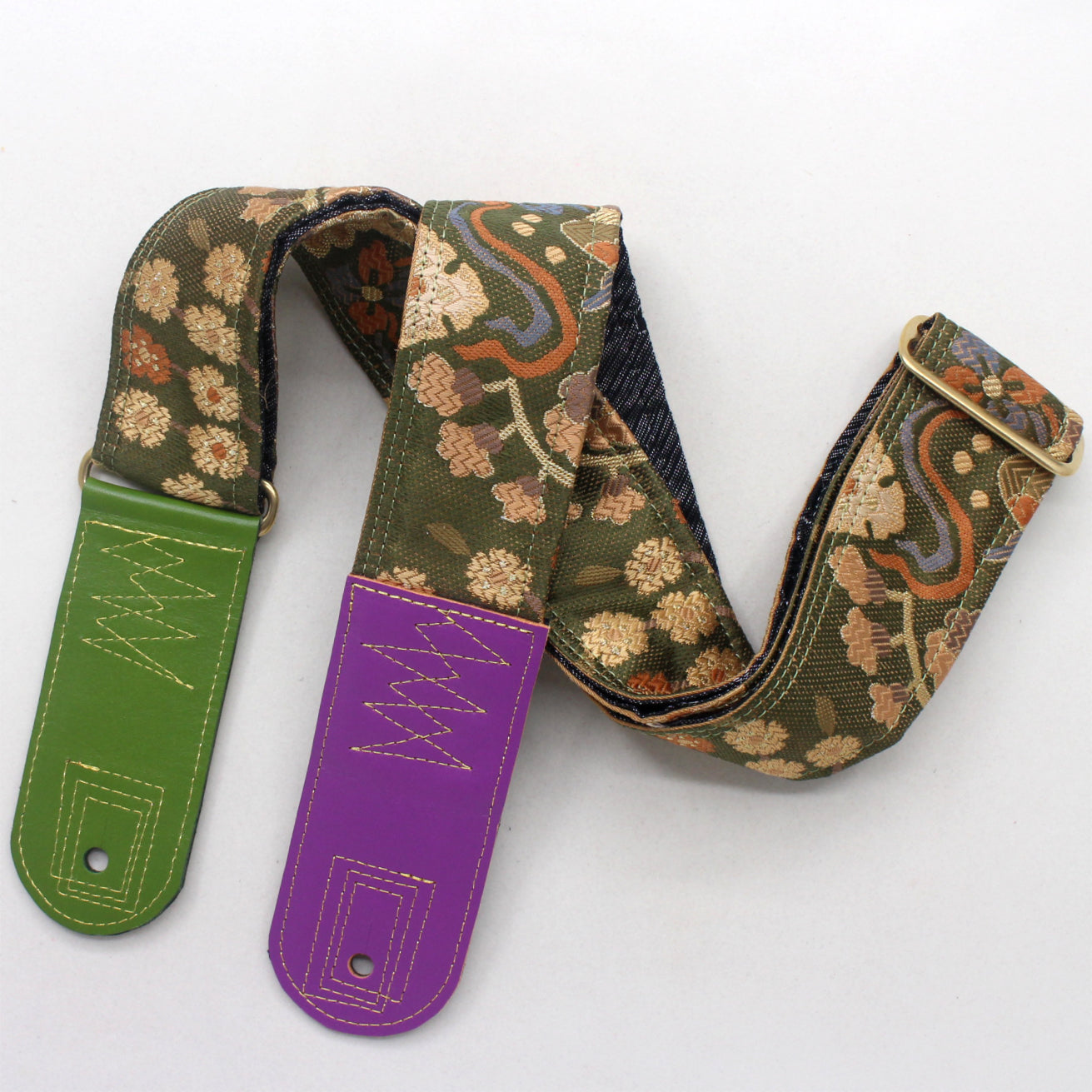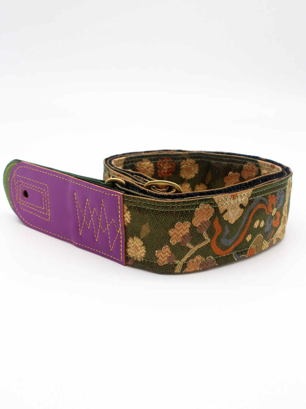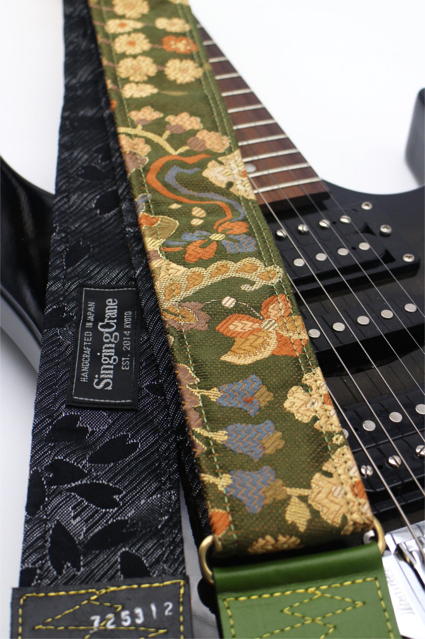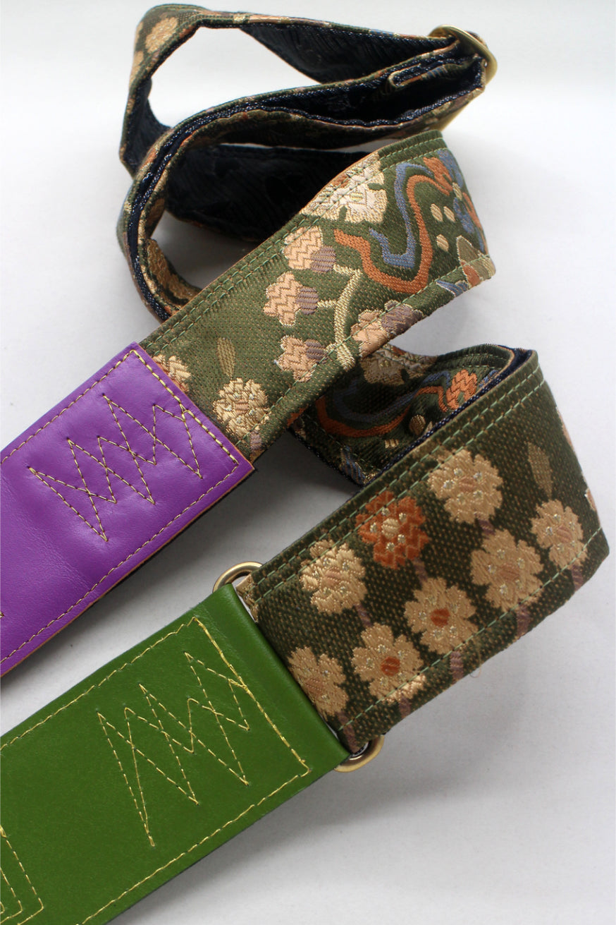 Unique and beautiful guitar strap [SC725312] - hand made in Japan from recycled silk woven kimono obi, leather and brass