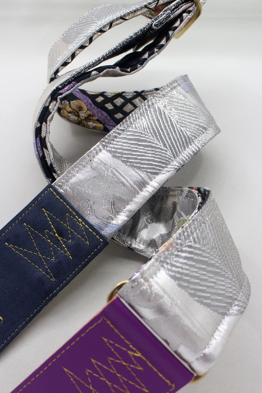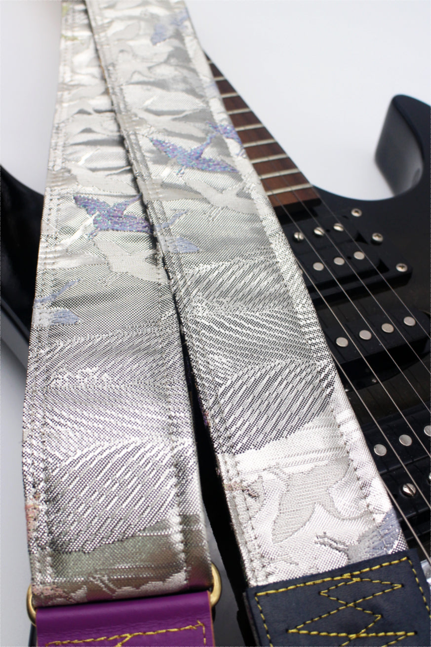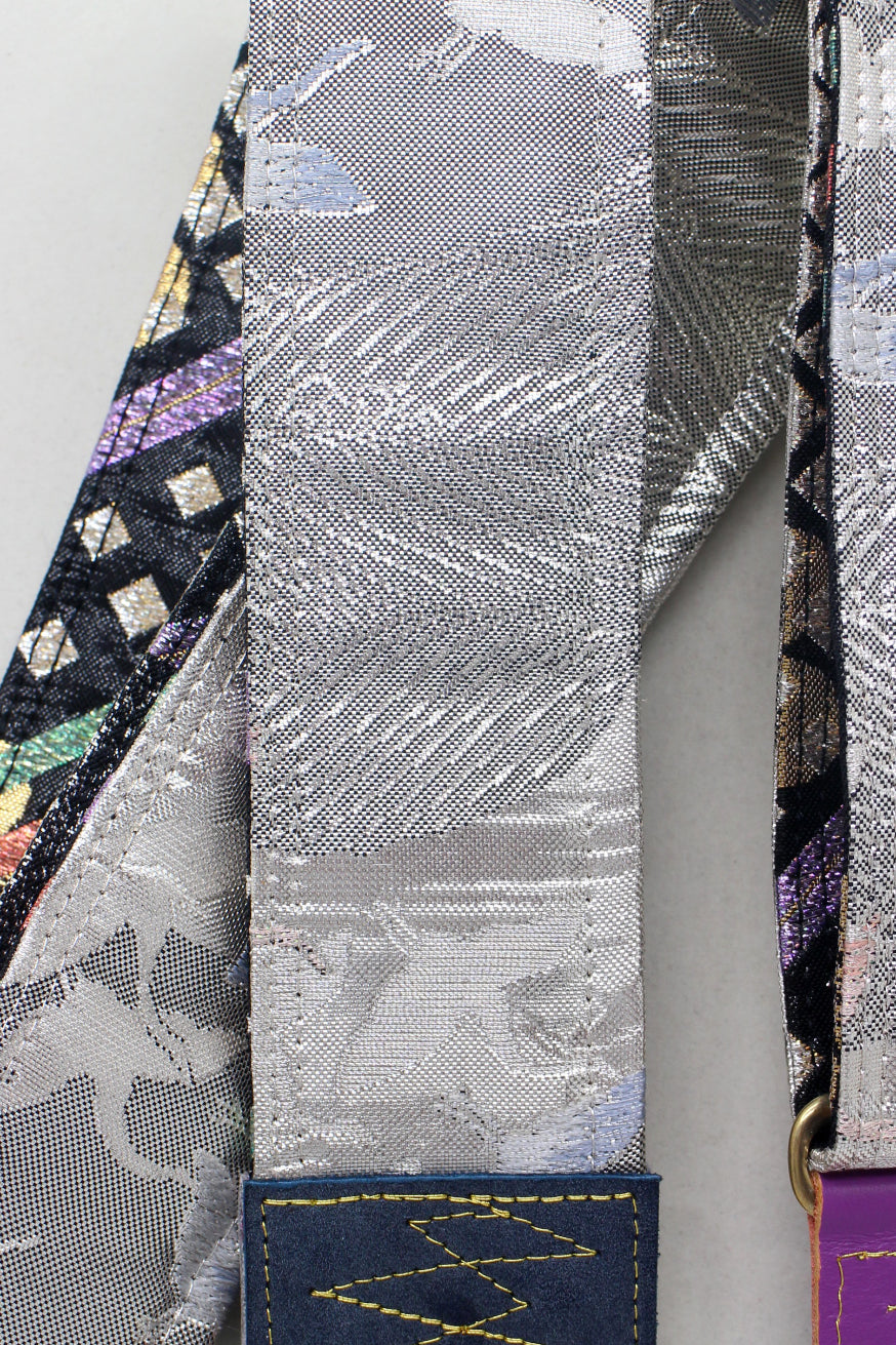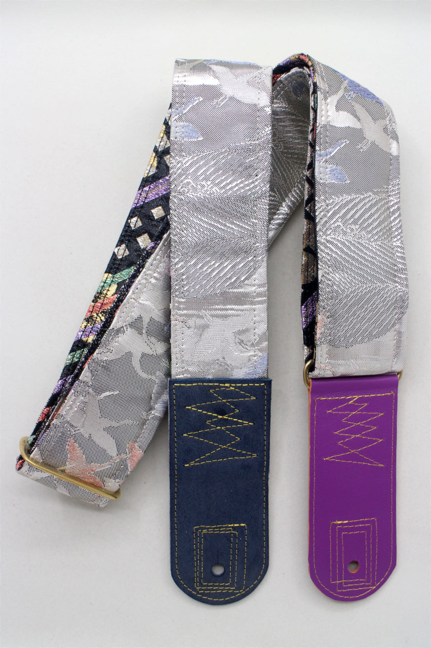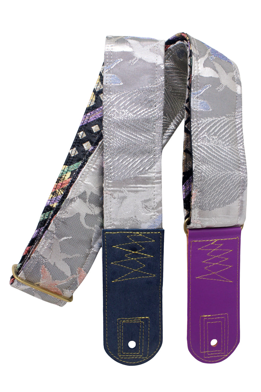 Unique and beautiful guitar strap [SC725333] - hand made in Japan from recycled silk woven kimono obi, leather and brass