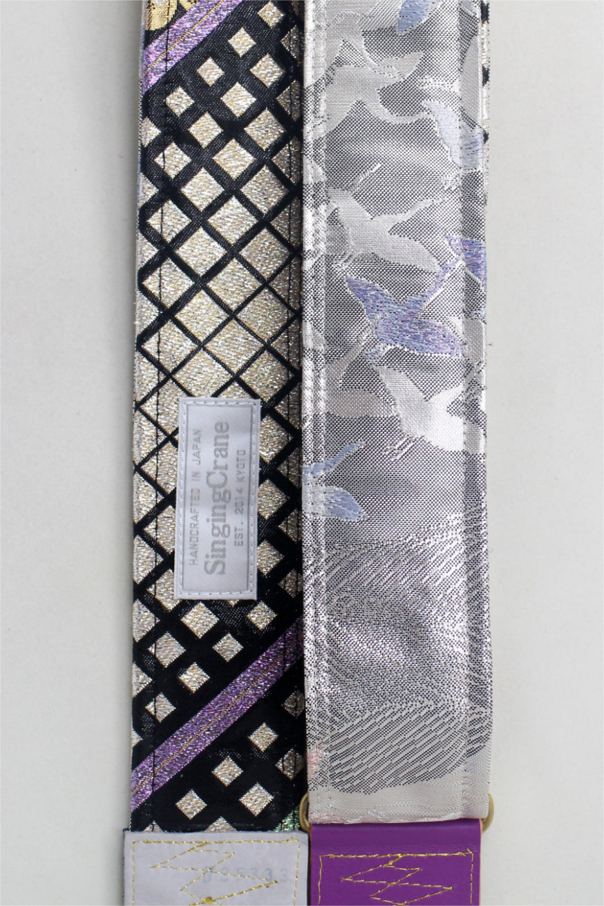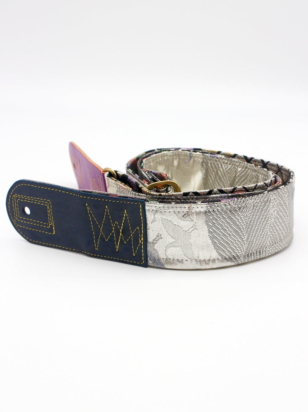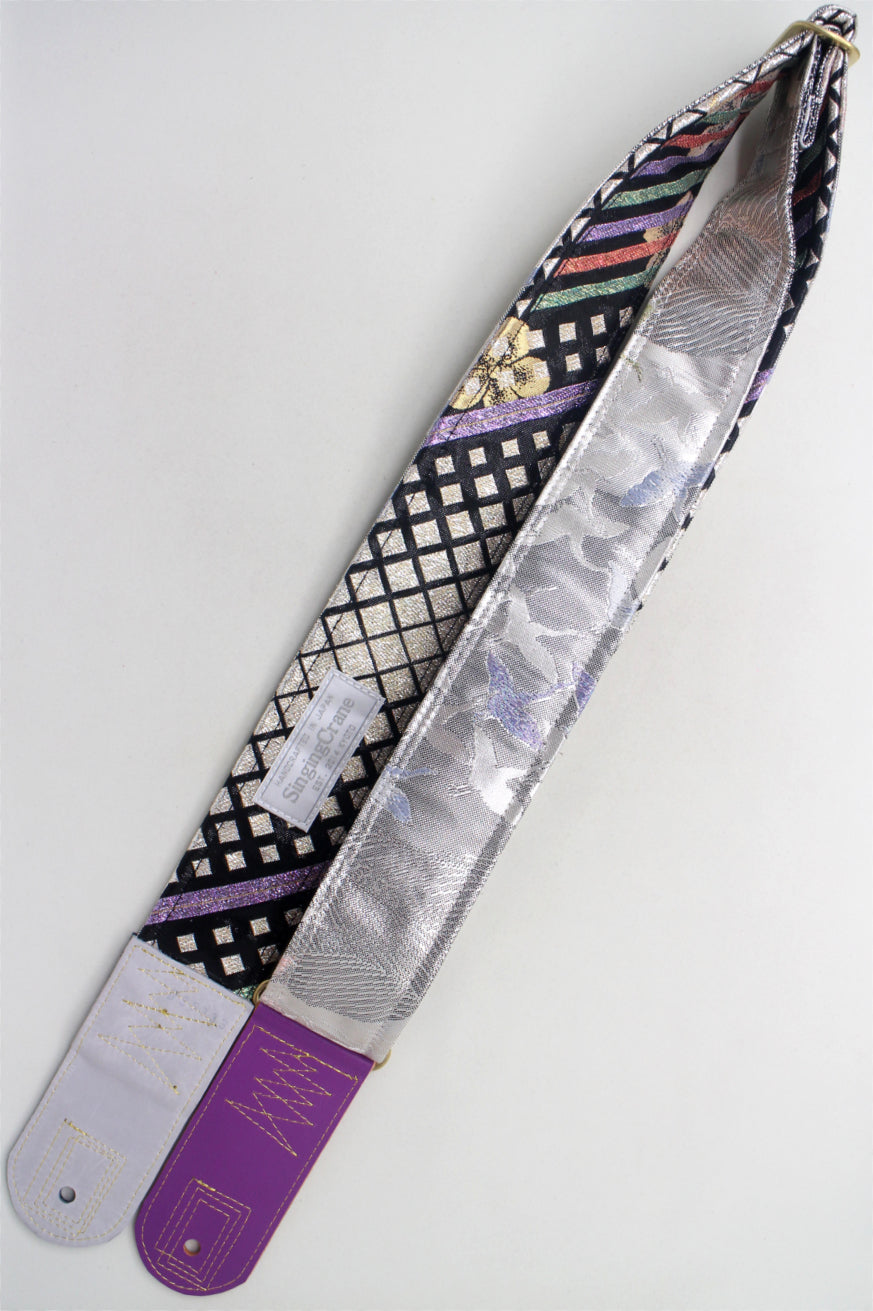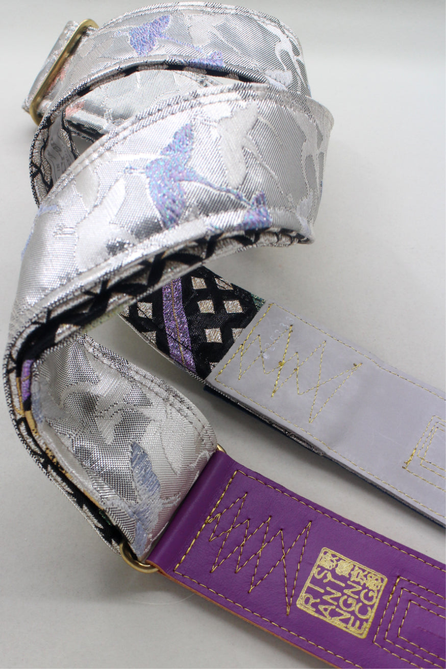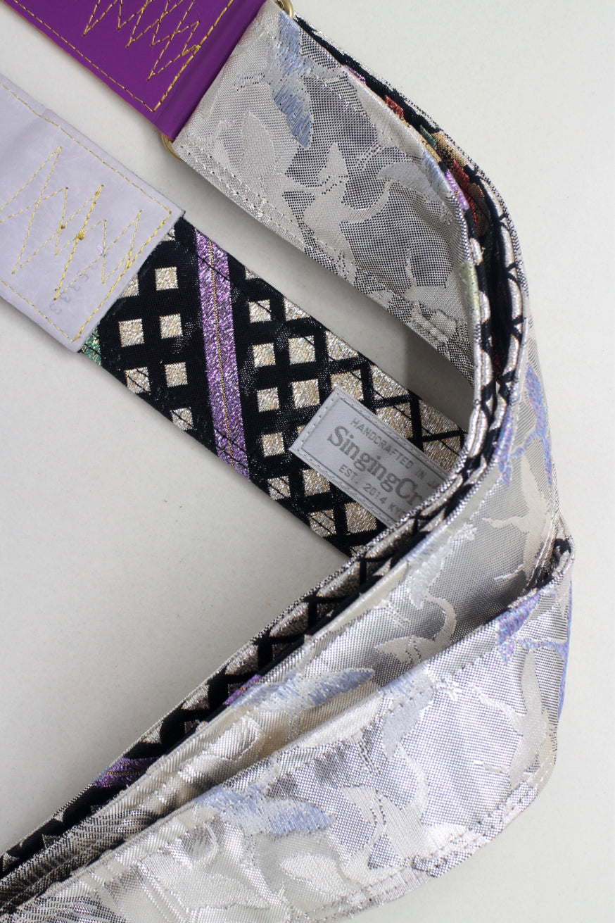 Unique and beautiful guitar strap [SC725333] - hand made in Japan from recycled silk woven kimono obi, leather and brass