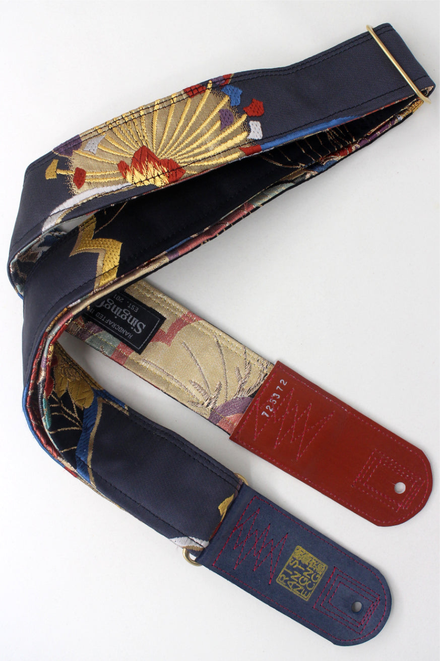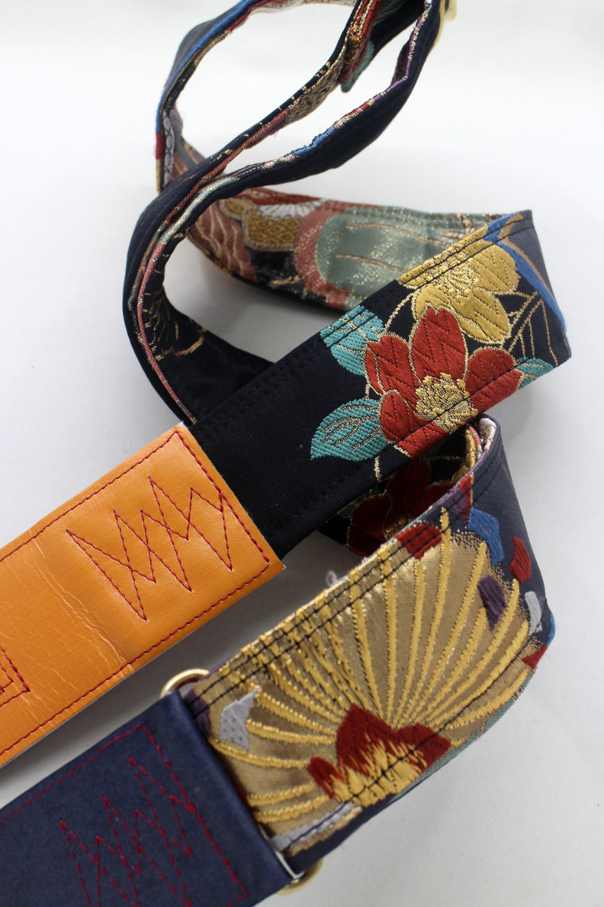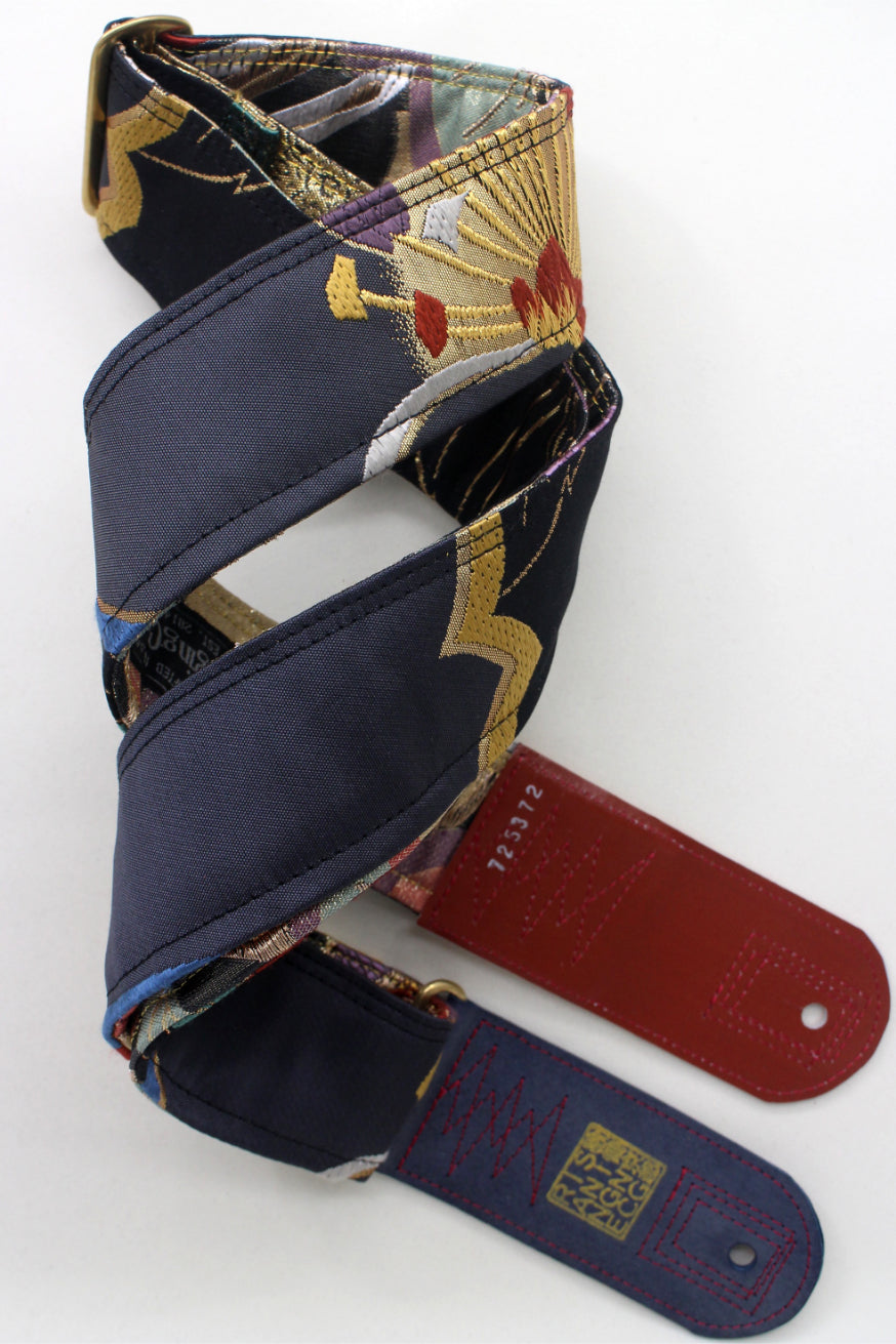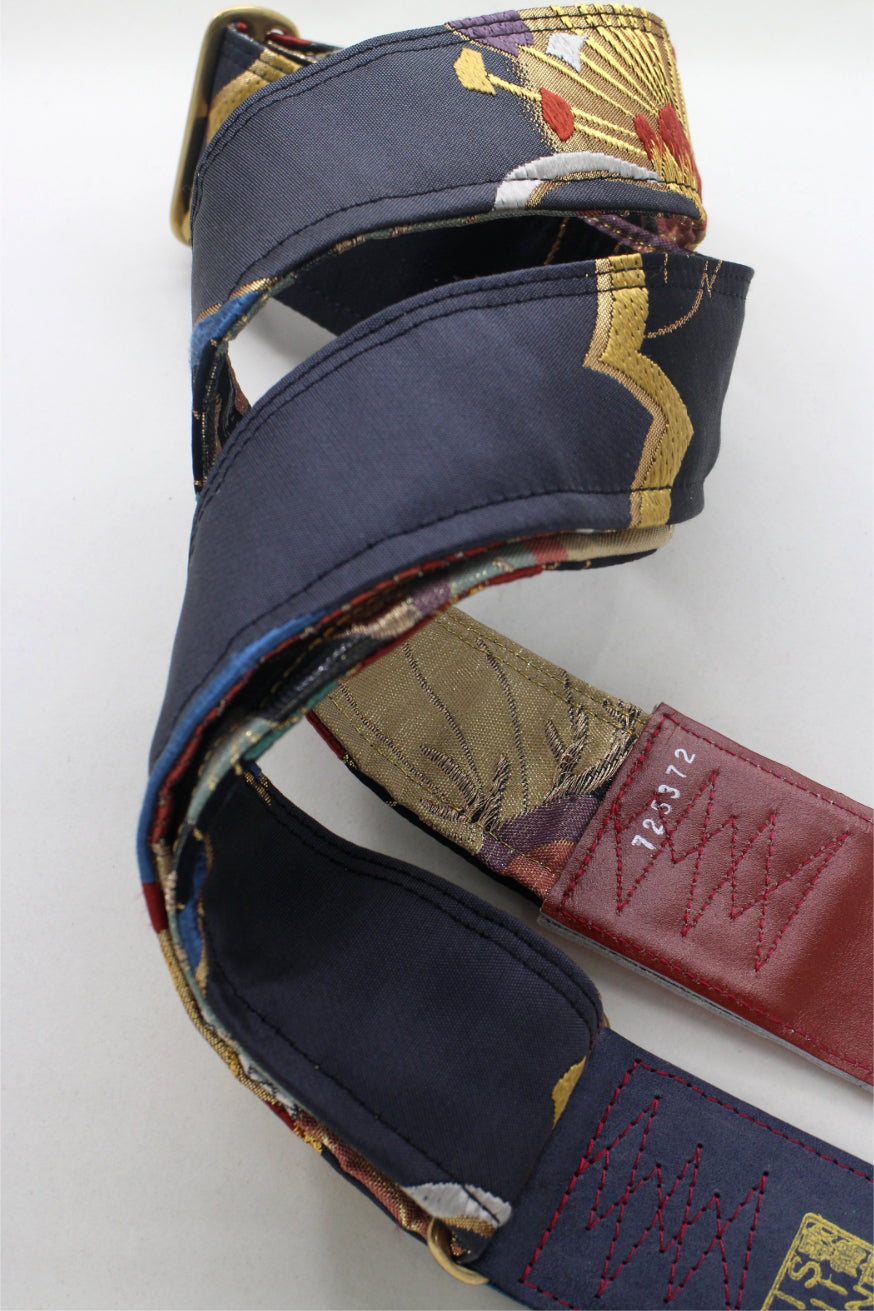 Unique and beautiful guitar strap [SC725372] - hand made in Japan from recycled silk woven kimono obi, leather and brass