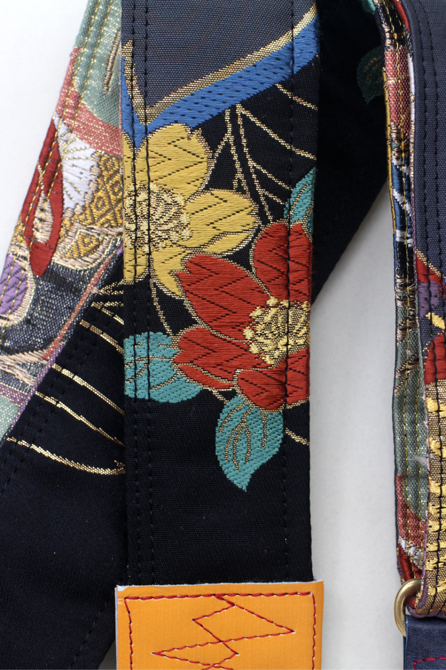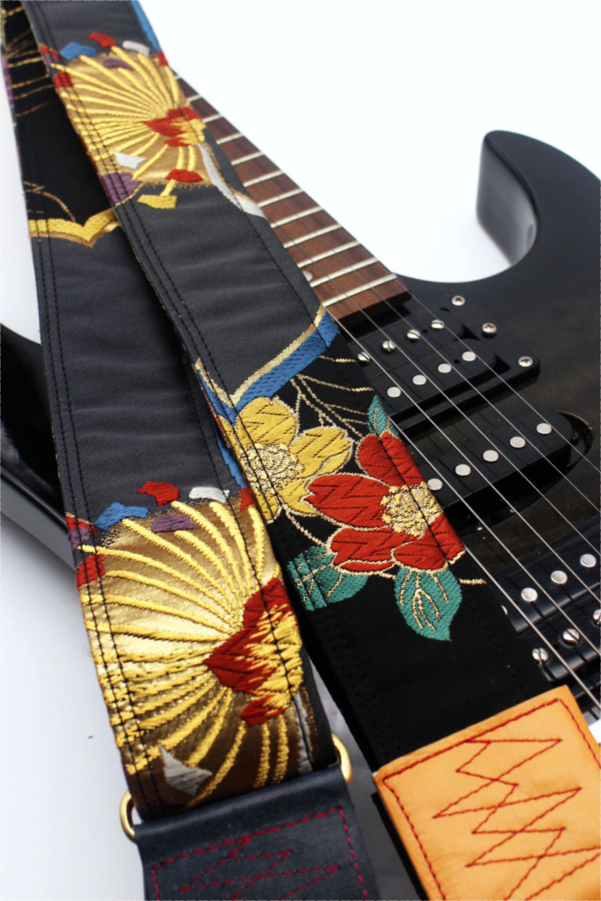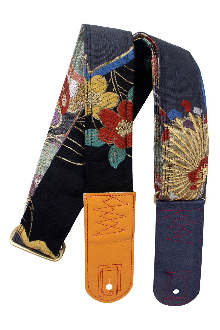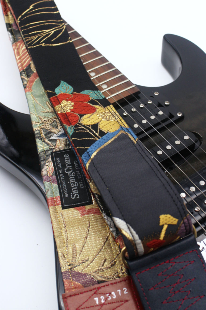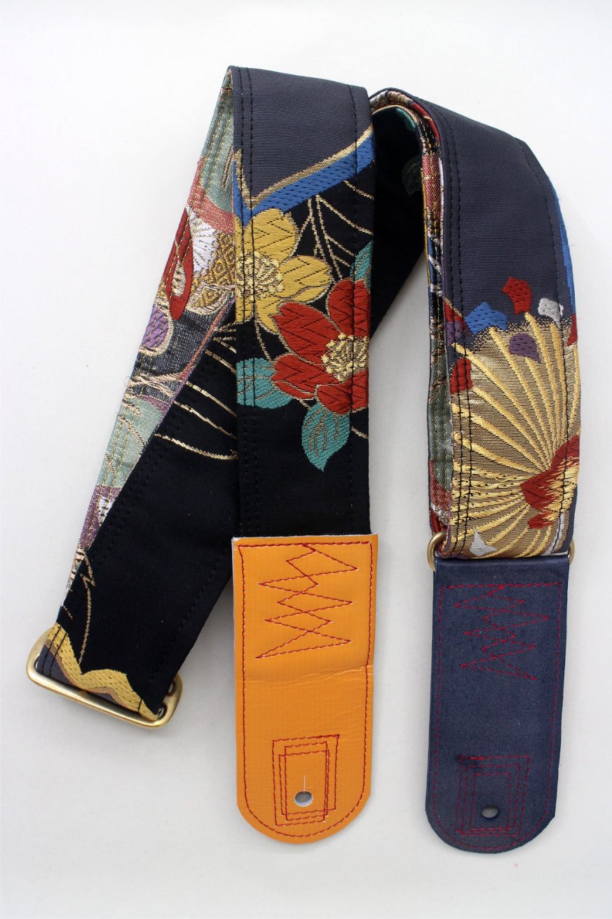 Unique and beautiful guitar strap [SC725372] - hand made in Japan from recycled silk woven kimono obi, leather and brass