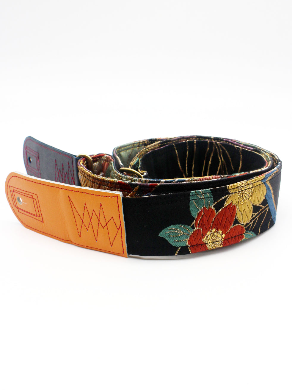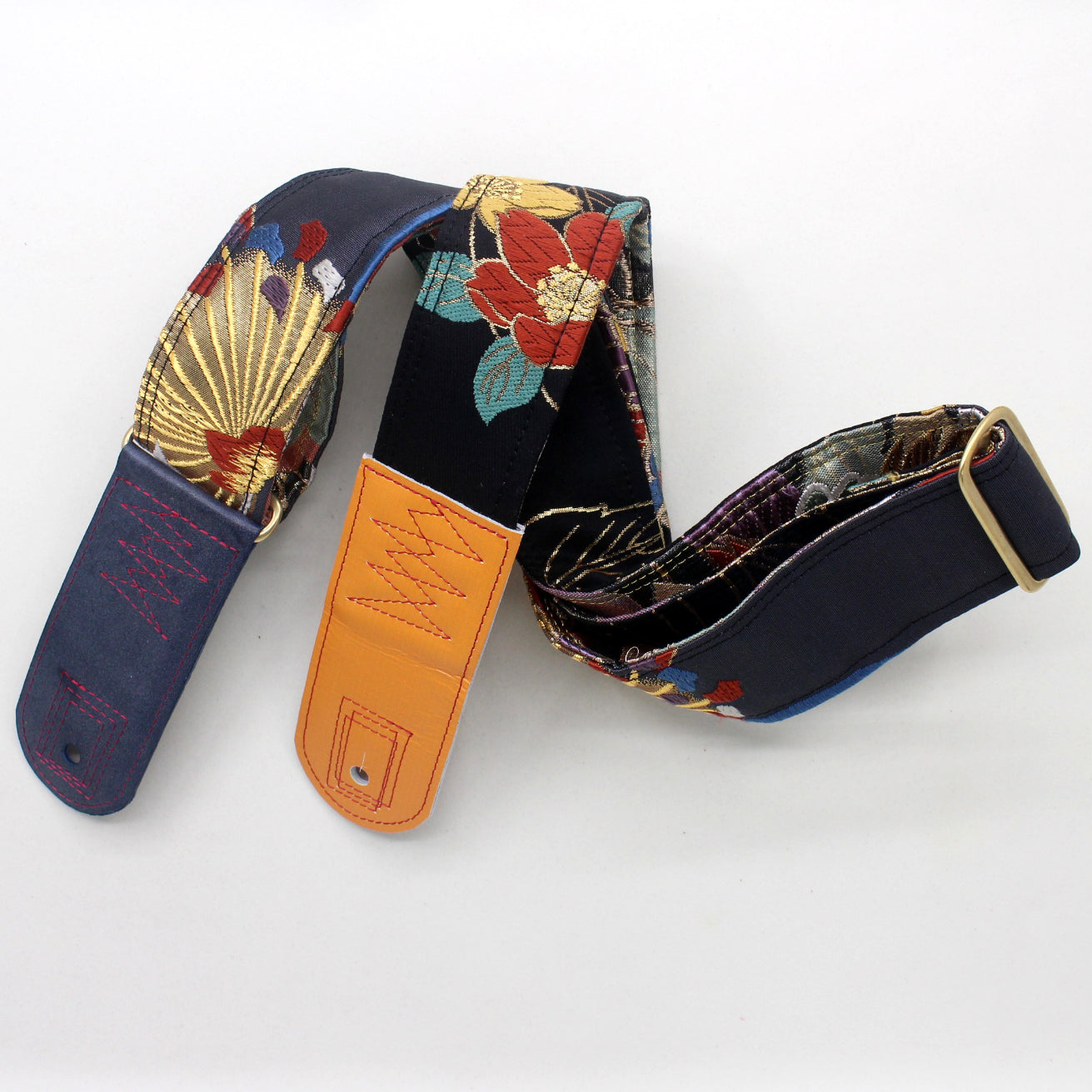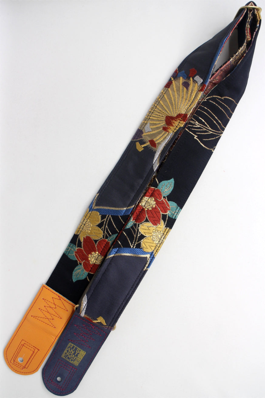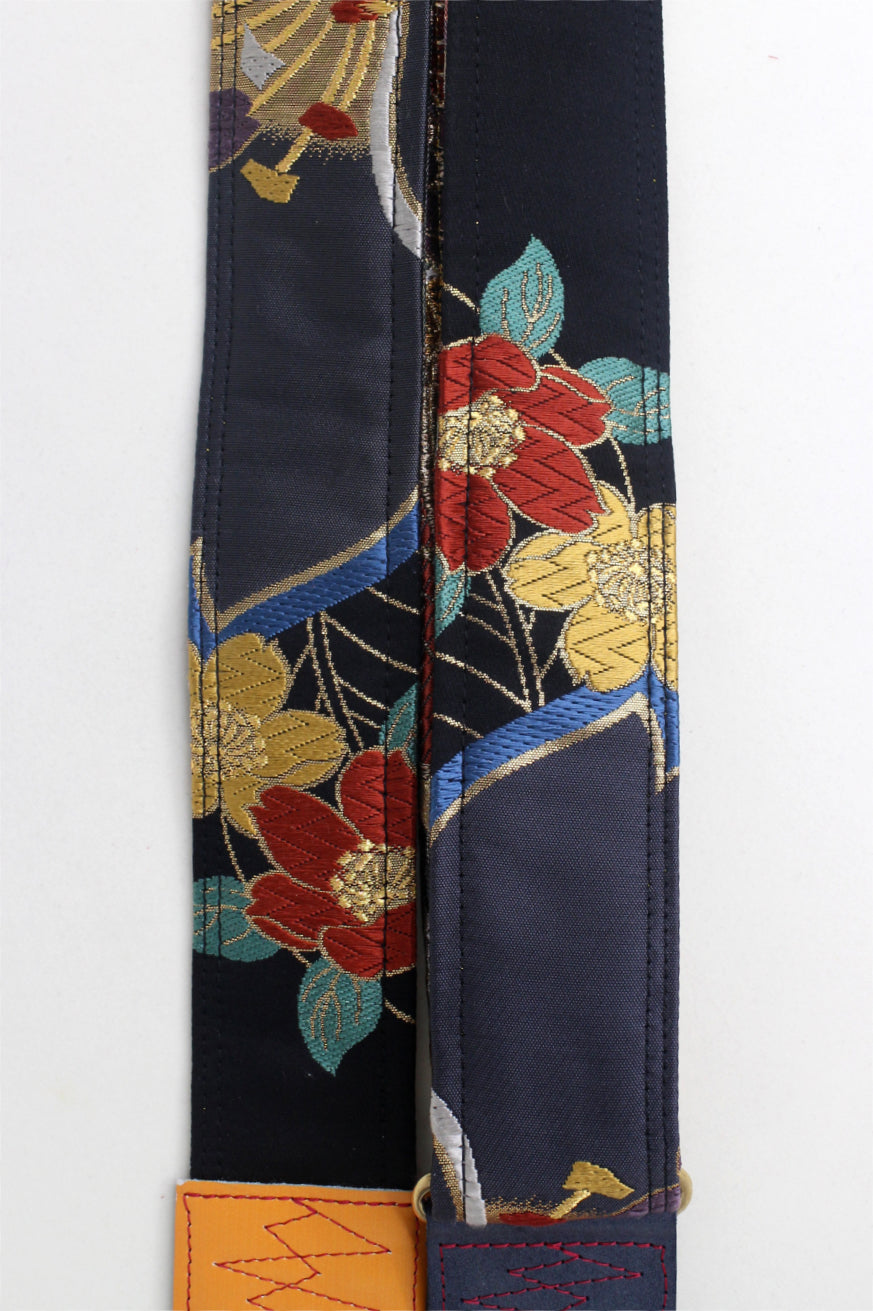 Unique and beautiful guitar strap [SC725372] - hand made in Japan from recycled silk woven kimono obi, leather and brass