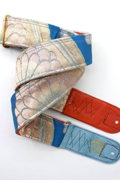 Unique and beautiful guitar strap [SC819022] - hand made in Japan from vintage silk kimono, leather and brass
